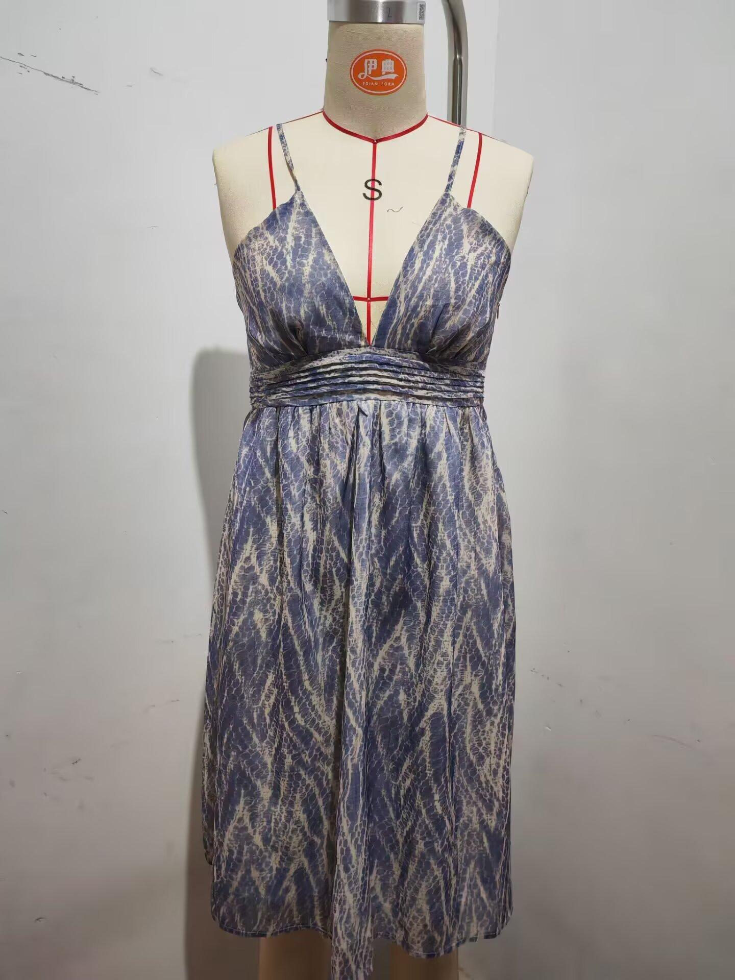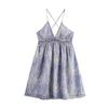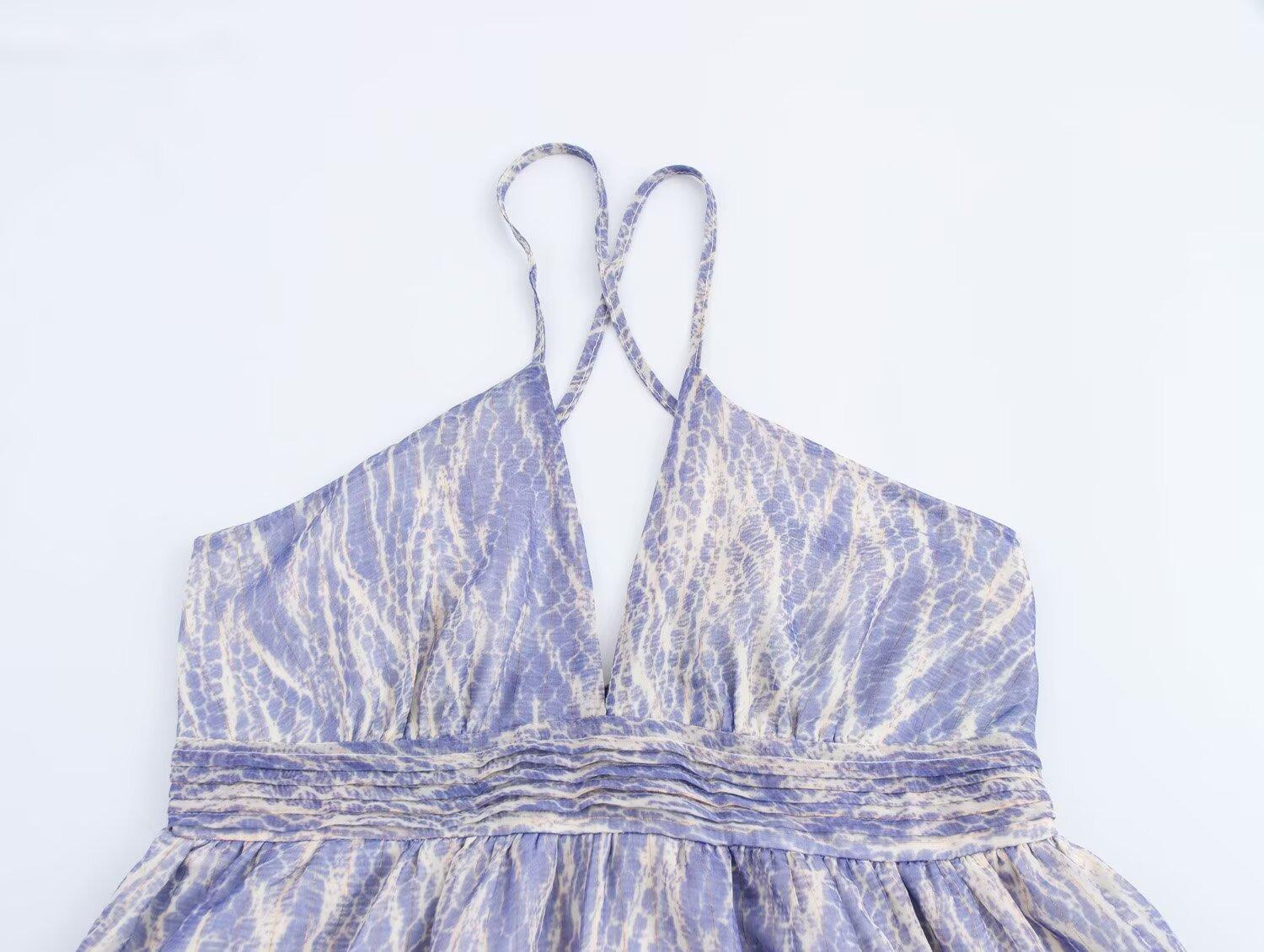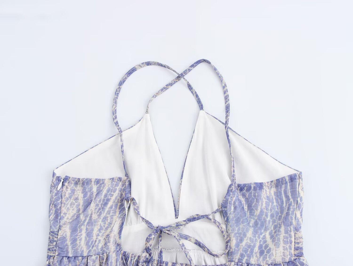 Moda Transfronteriza Europea y Americana 2025 Primavera y Verano Nuevo Vestido Europeo y Americano Sexy con Espalda Descubierta, Cuello en V y Tirantes de Gasa Estampado