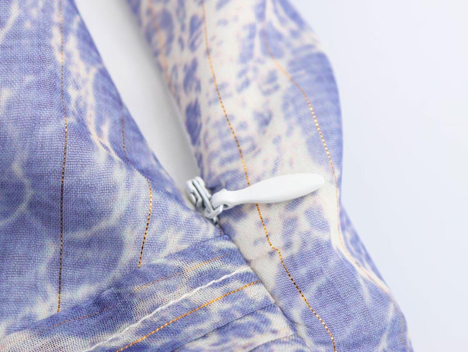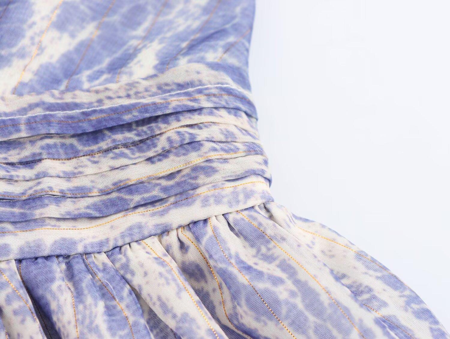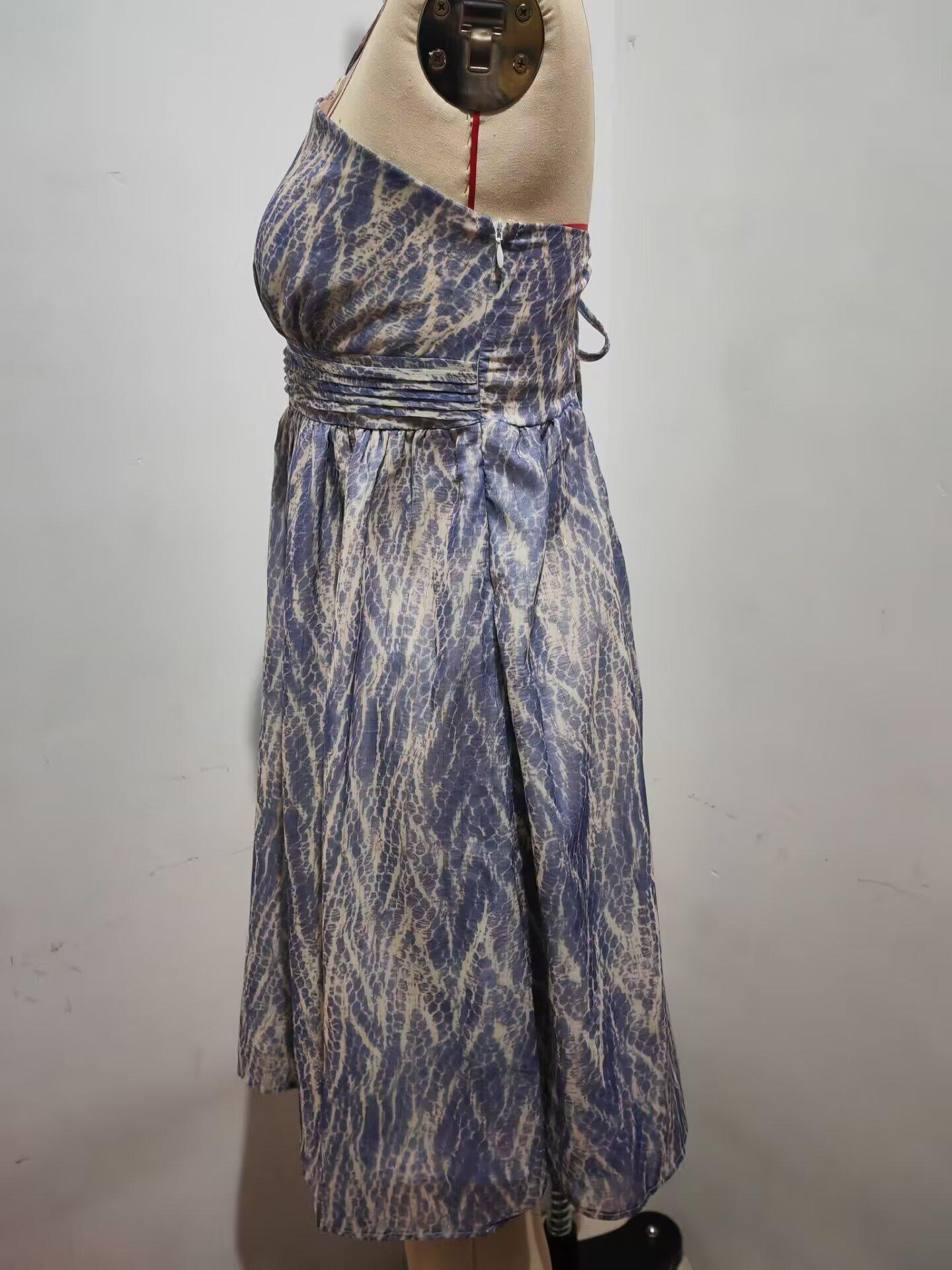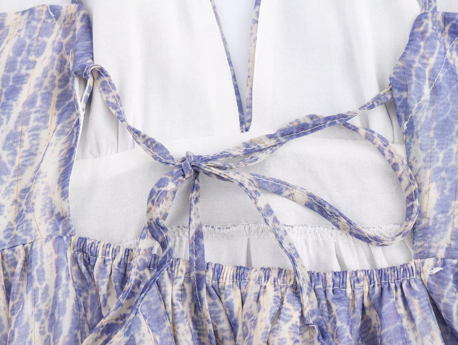 Moda Transfronteriza Europea y Americana 2025 Primavera y Verano Nuevo Vestido Europeo y Americano Sexy con Espalda Descubierta, Cuello en V y Tirantes de Gasa Estampado
