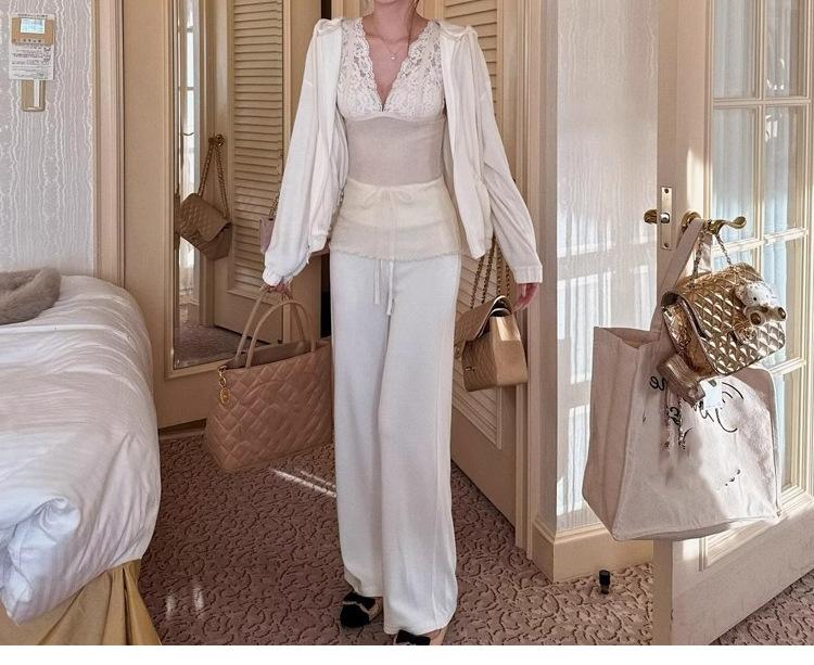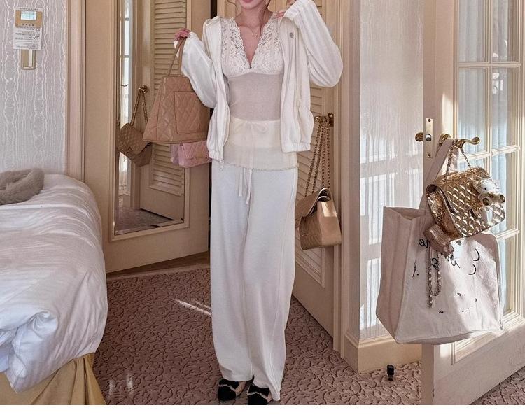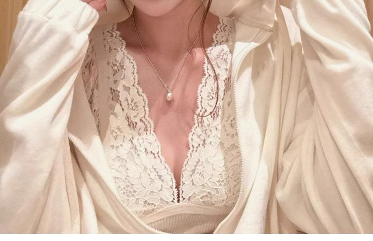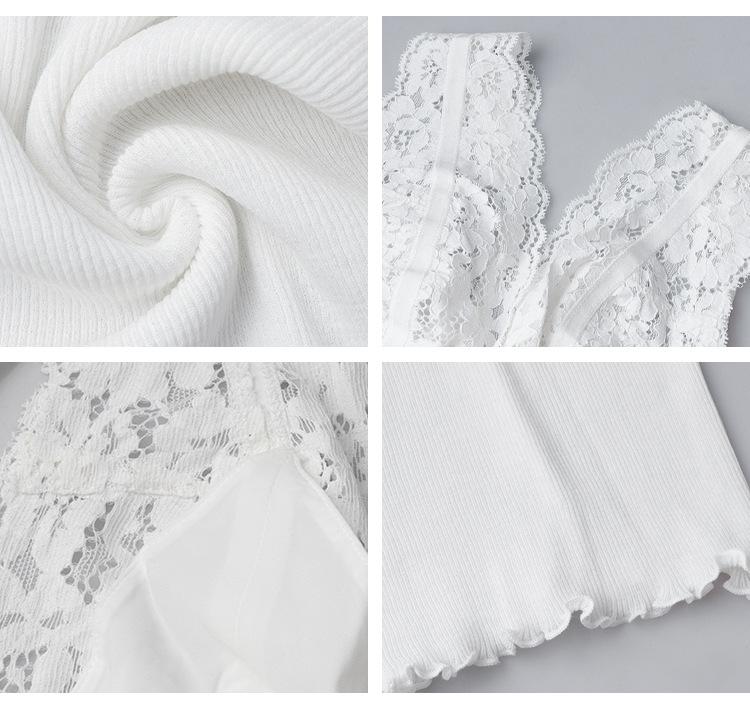 Ropa Privada de Comerciante Único Tirante Tejido con Encaje Profundo en V