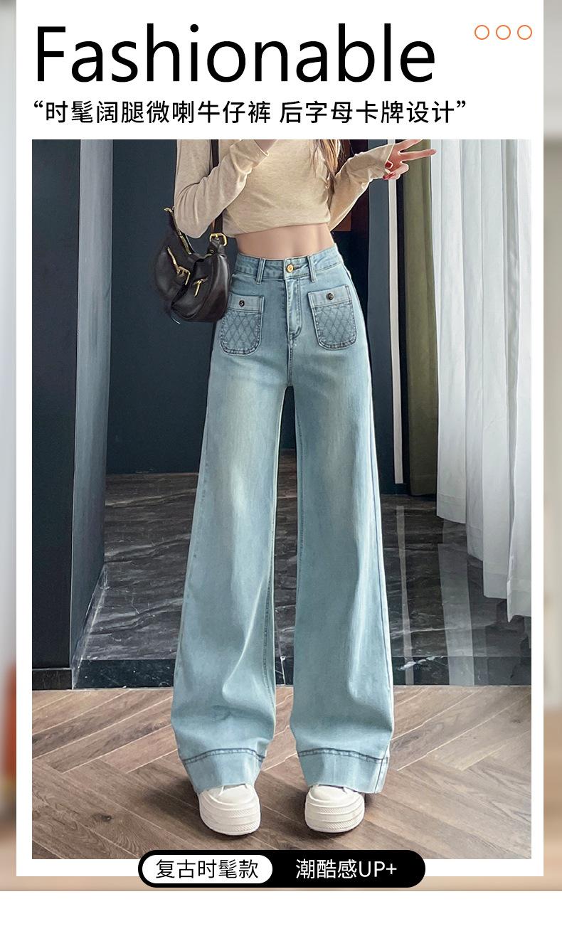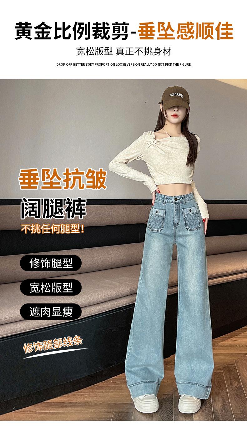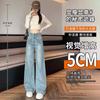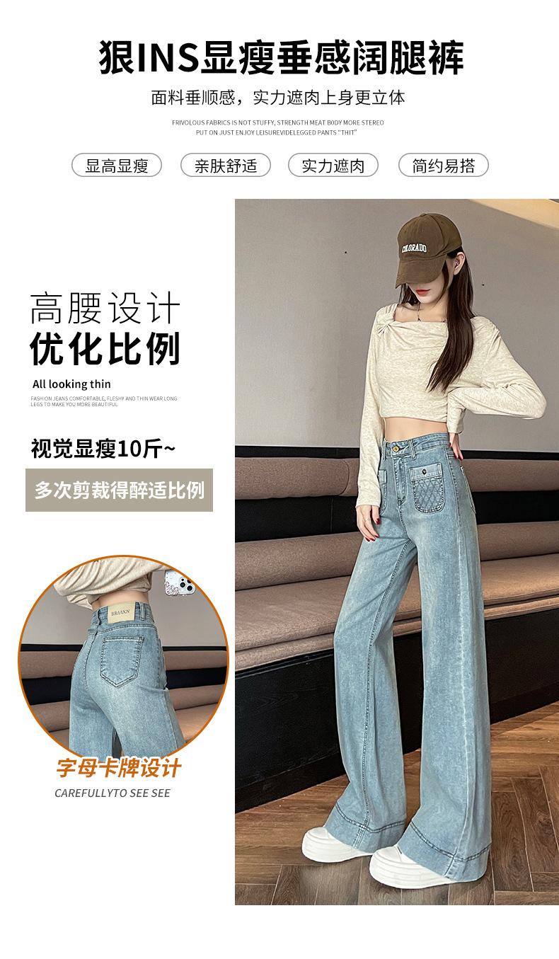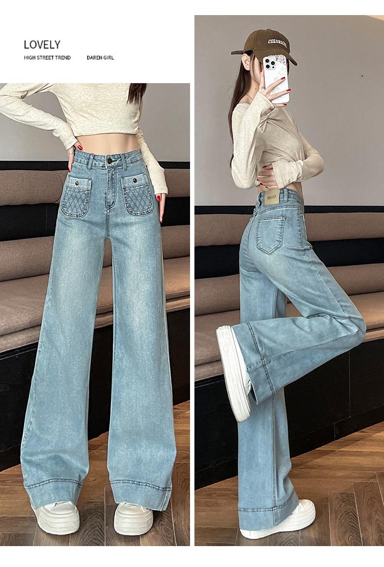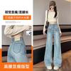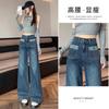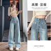 Pantalones vaqueros de pierna ancha de color claro para mujer, primavera y otoño de 2025, nuevos pantalones rectos sueltos y adelgazantes de cintura alta.