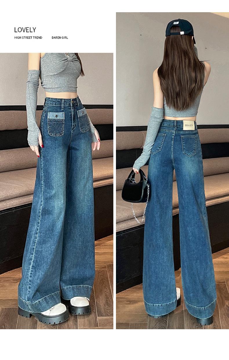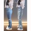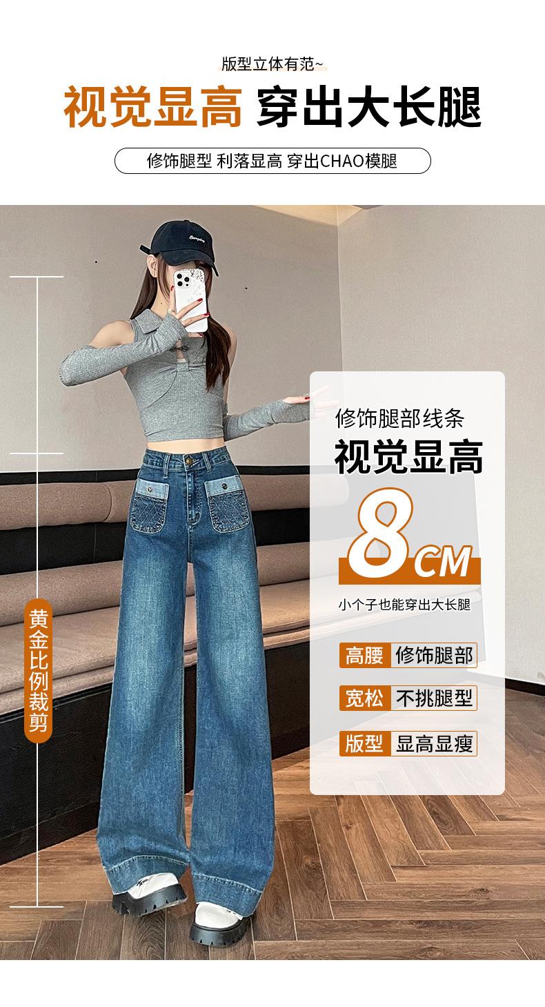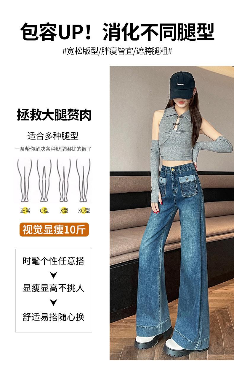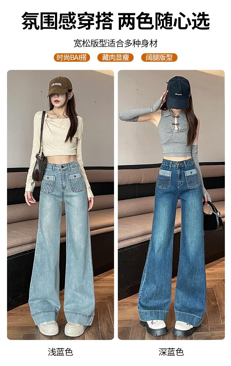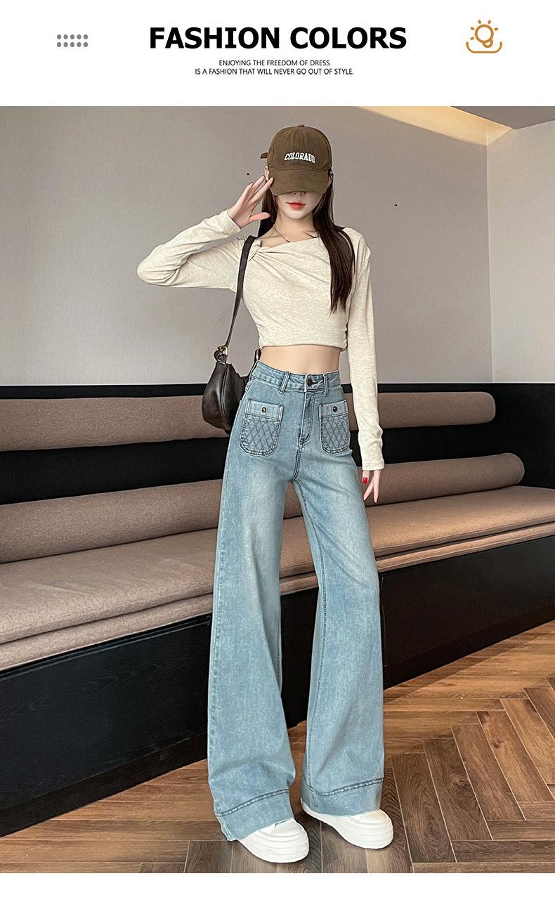 Pantalones vaqueros de pierna ancha de color claro para mujer, primavera y otoño de 2025, nuevos pantalones rectos sueltos y adelgazantes de cintura alta.