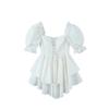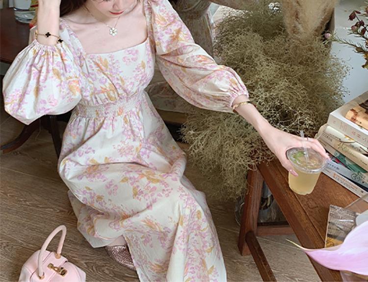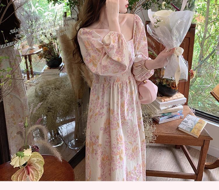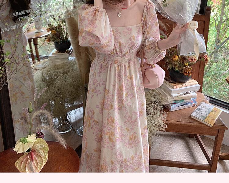 Falda Cuello Cuadrado Look Adelgazante Falda Larga/Vestido Dulce con Cuello en V Listo para Moda Elegante, Esbelta y de Cuento de Hadas Elegante