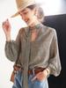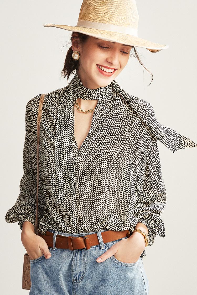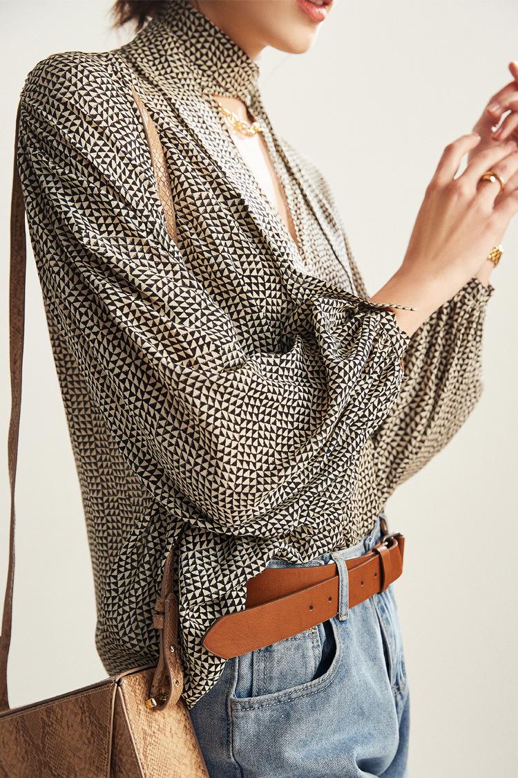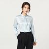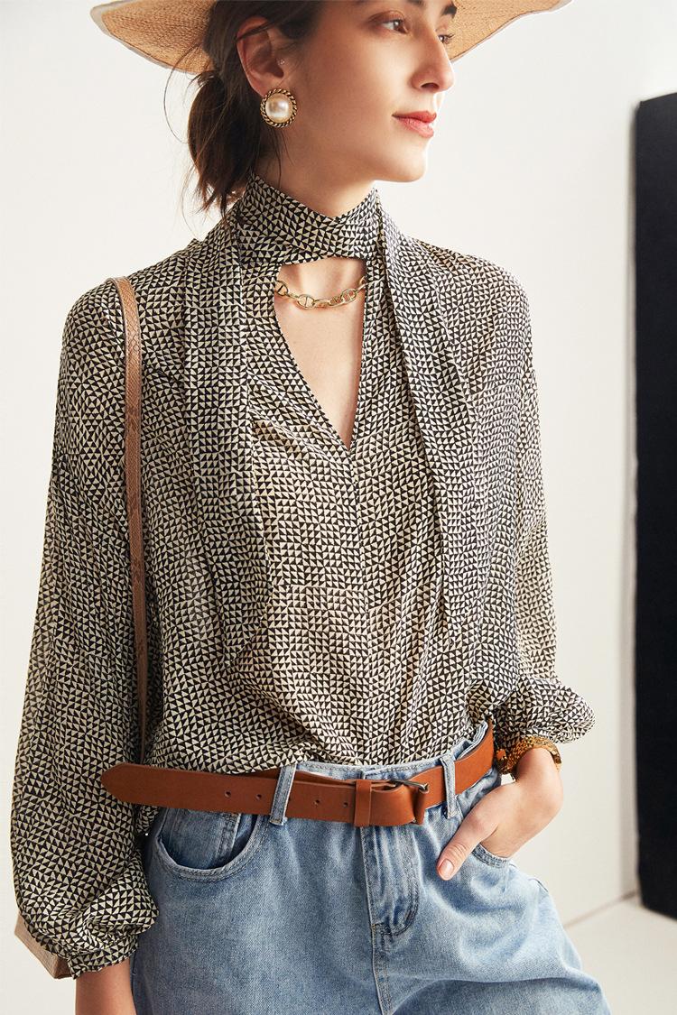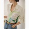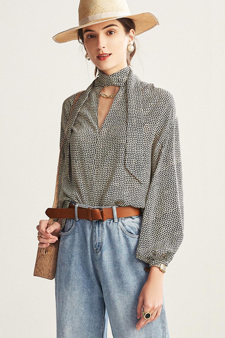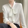 Camisa de seda para mujer, camisa de seda morera pesada, primavera y verano 2025, nueva, de moda, ligera, madura, diseño de cinta, sentido de la manga larga.