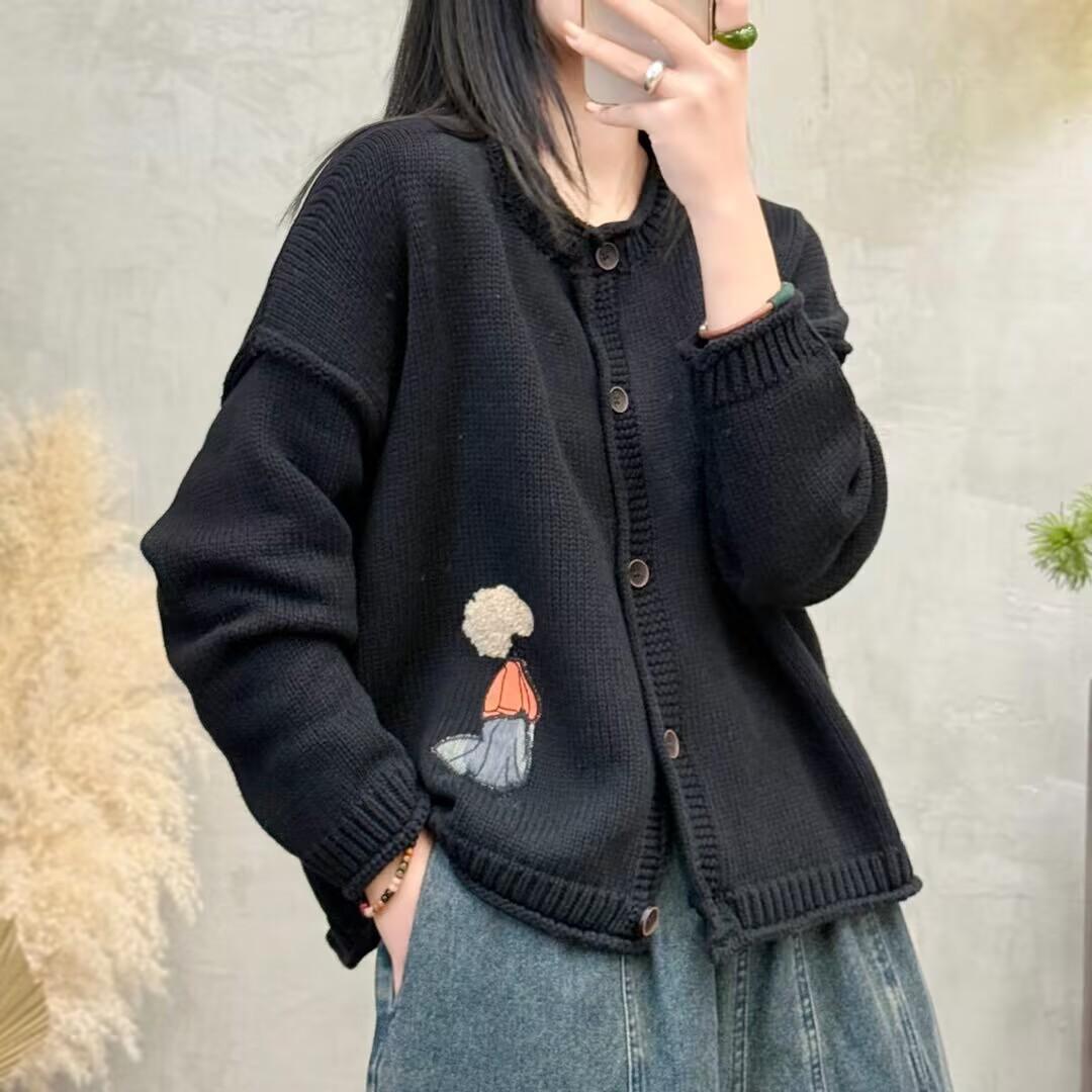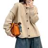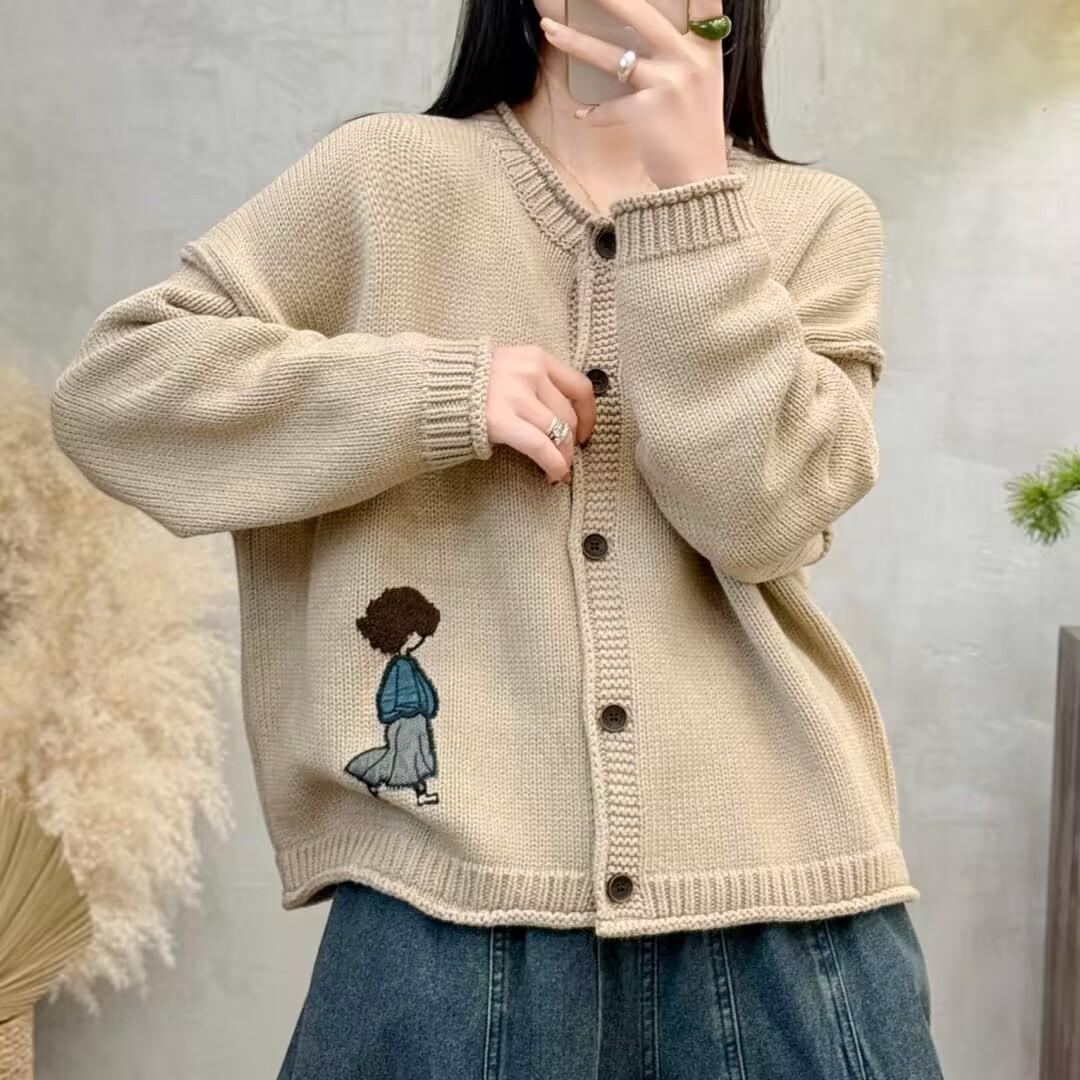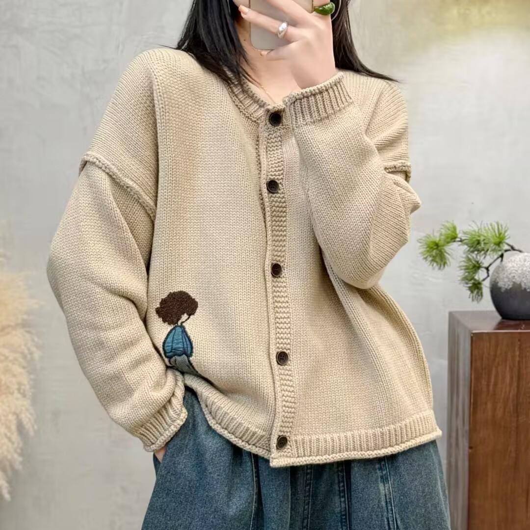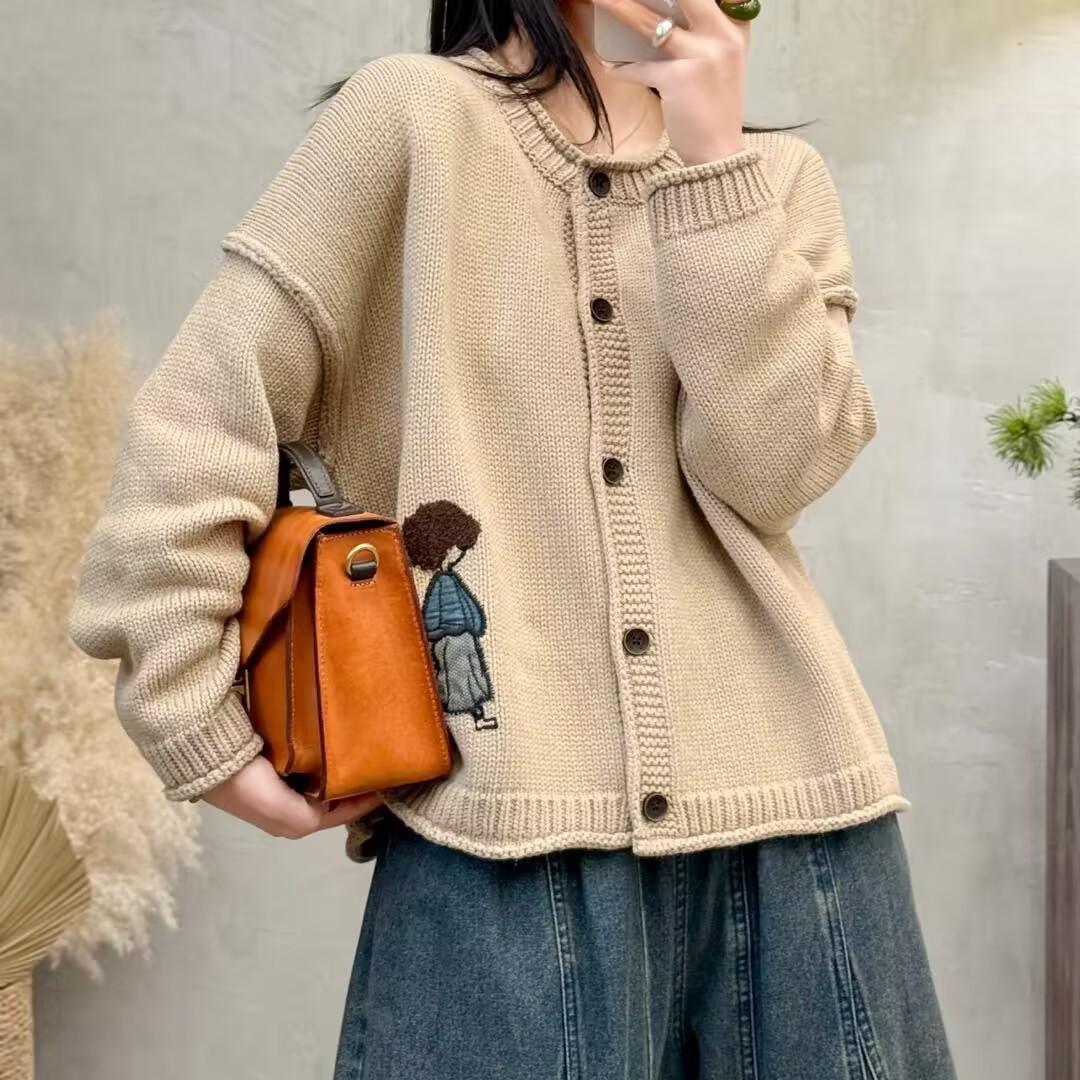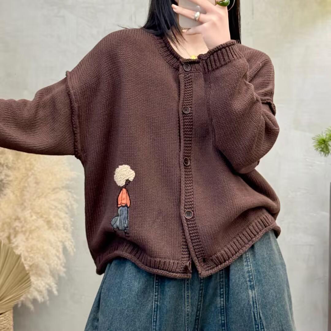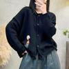 Cárdigan de Algodón Suéter Tejido para Mujer Moda Primavera 2025 Simple Estilo Coreano Holgado Perezoso Estampado Rizo Casual Top
