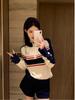 Suéter de punto a rayas con media cremallera y costuras contrastantes estilo coreano vintage de otoño 2024, top sexy de moda de nicho para chicas sexys