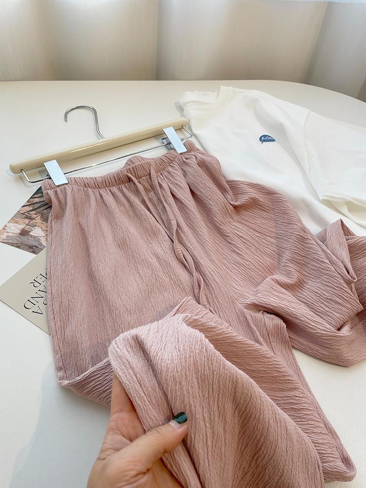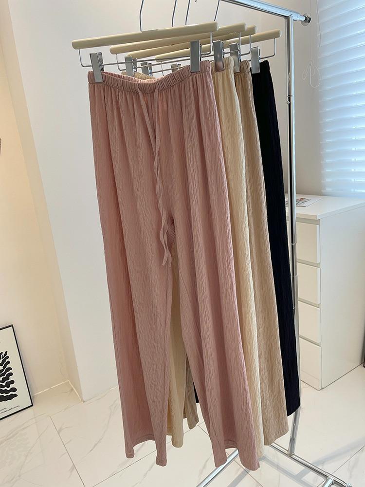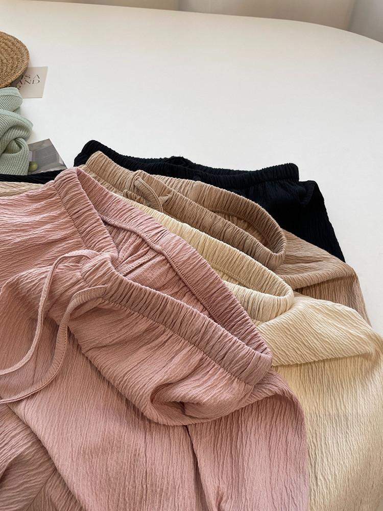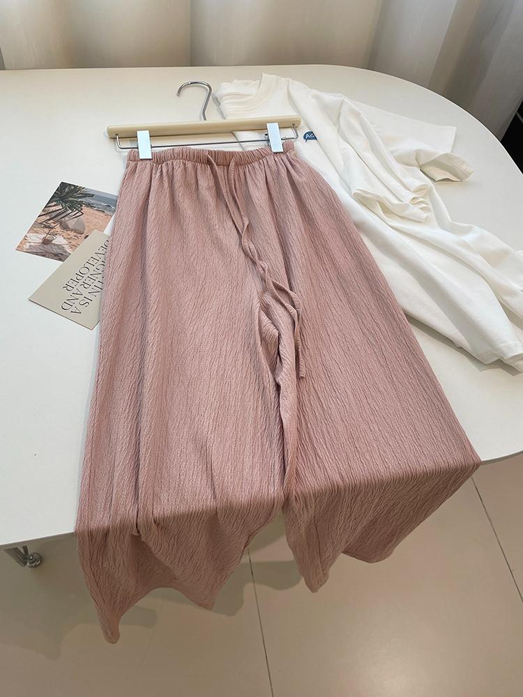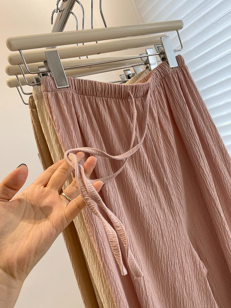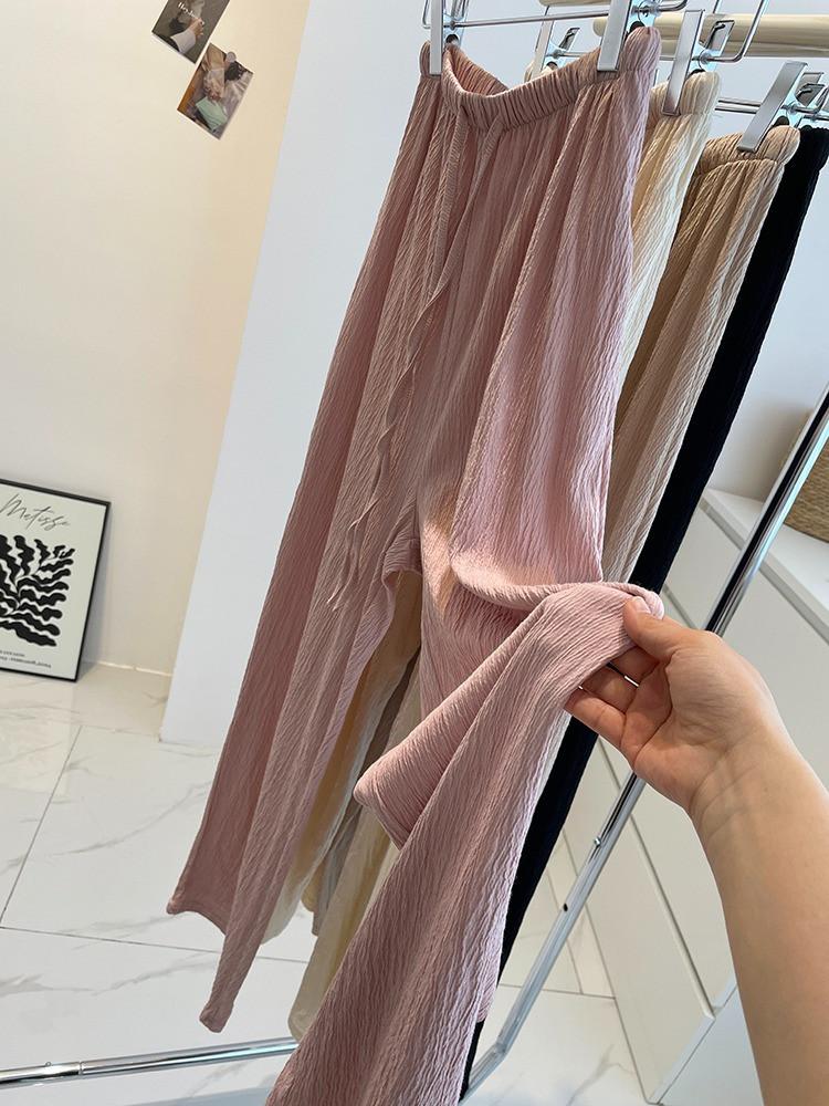 2025 Nuevo Diseño Drapeado Holgado de Cintura Alta Casual de Gama Alta Rosa Pantalones de Pierna Ancha Estrecha Verano Estilo Delgado para Mujer