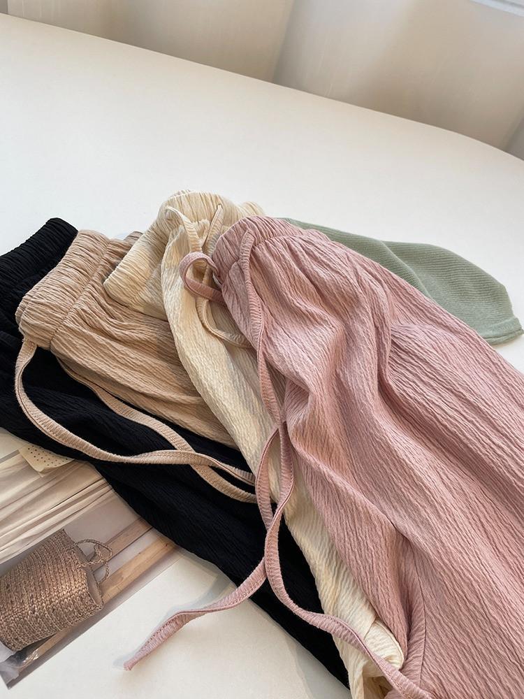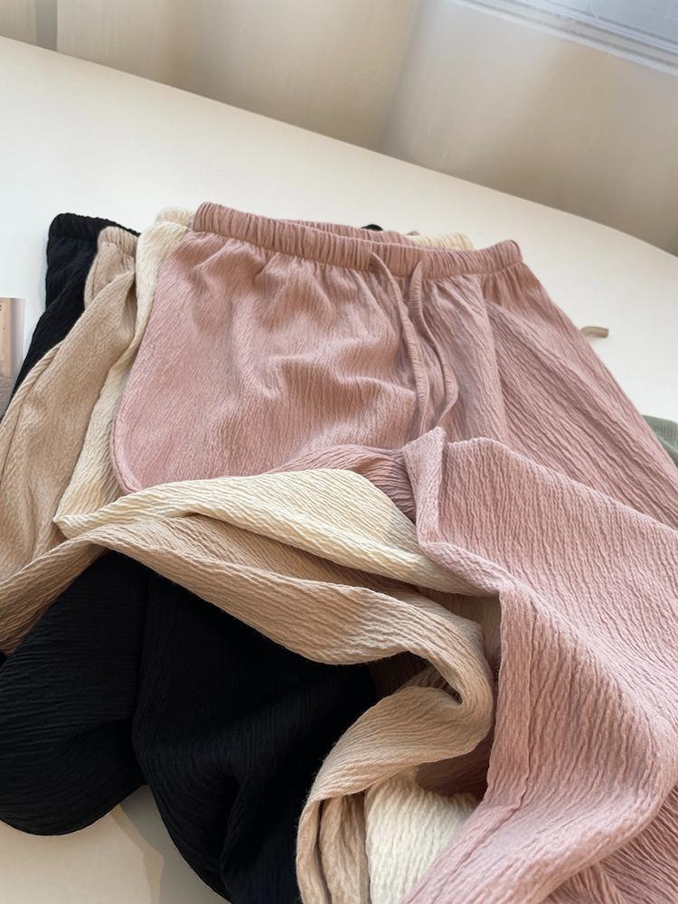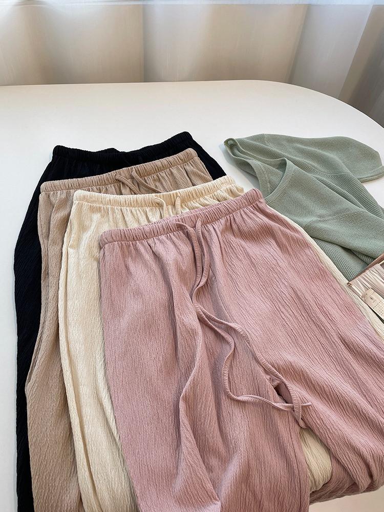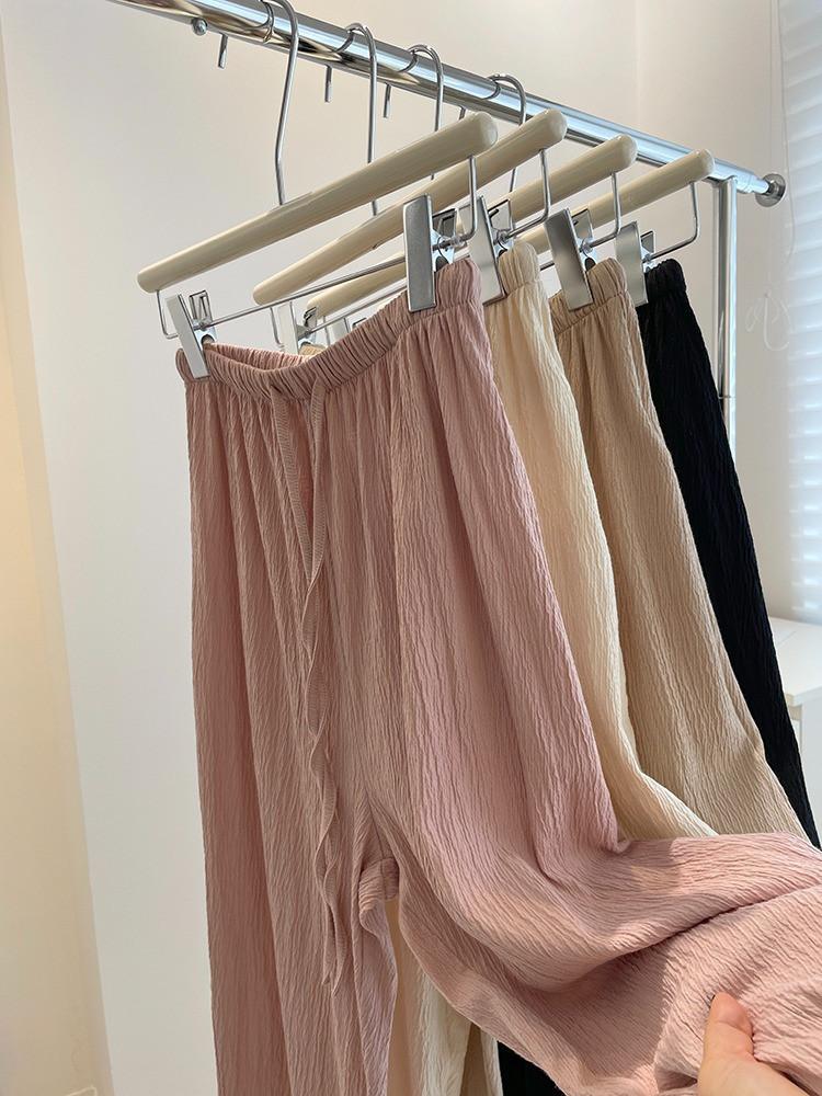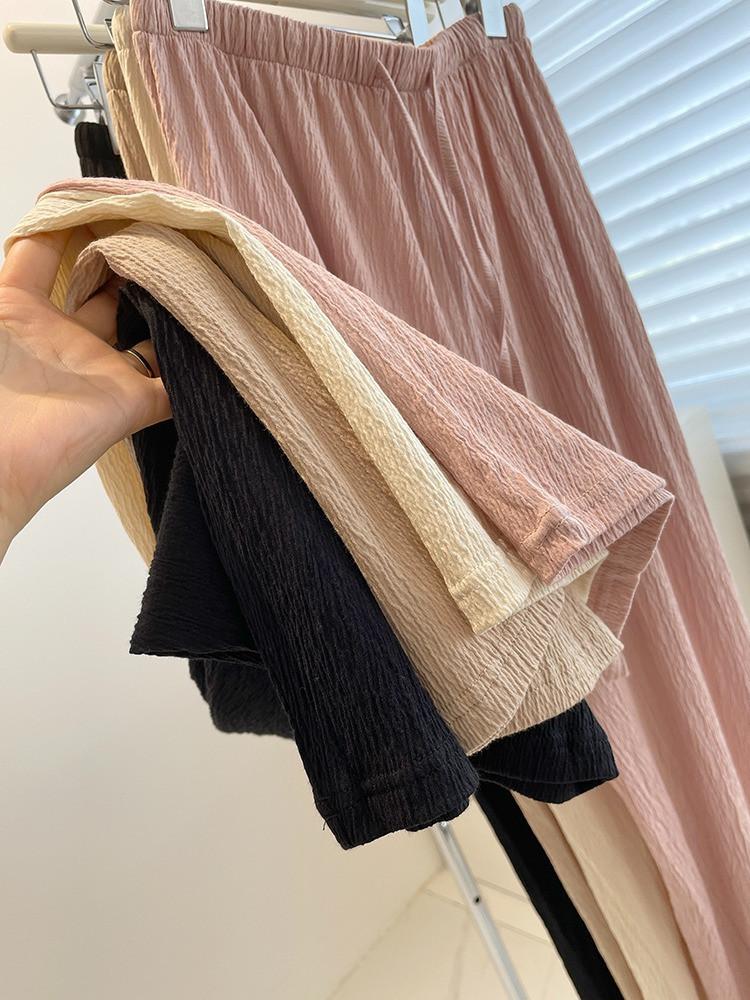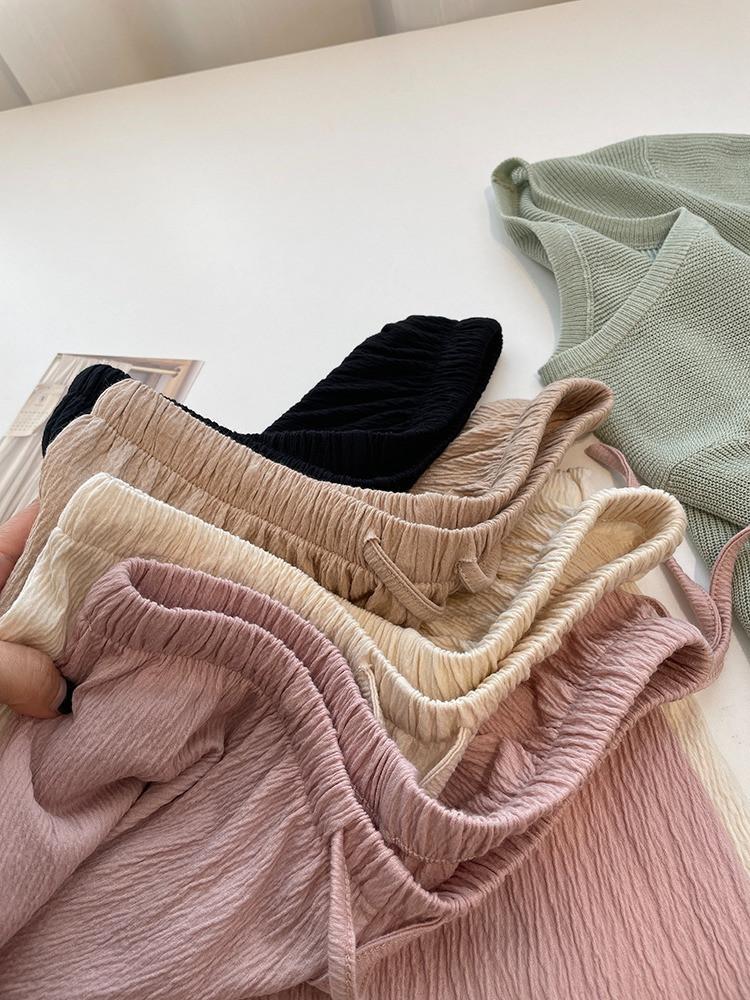 2025 Nuevo Diseño Drapeado Holgado de Cintura Alta Casual de Gama Alta Rosa Pantalones de Pierna Ancha Estrecha Verano Estilo Delgado para Mujer