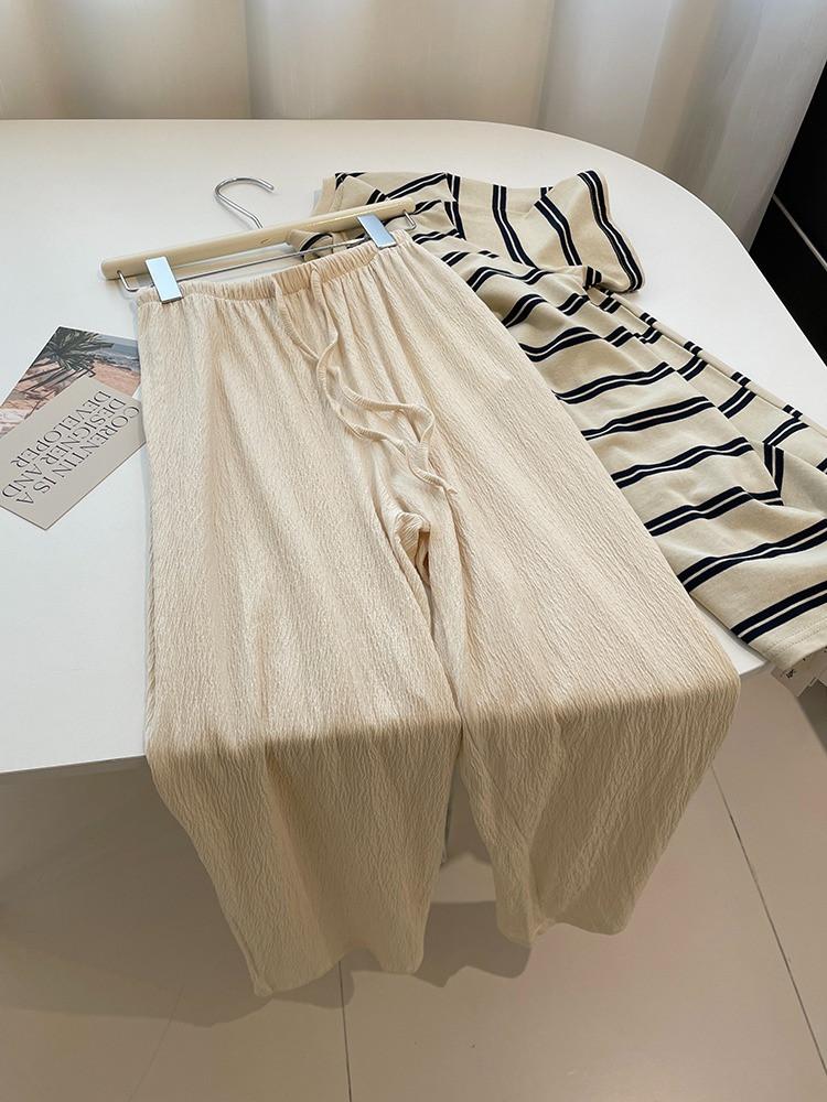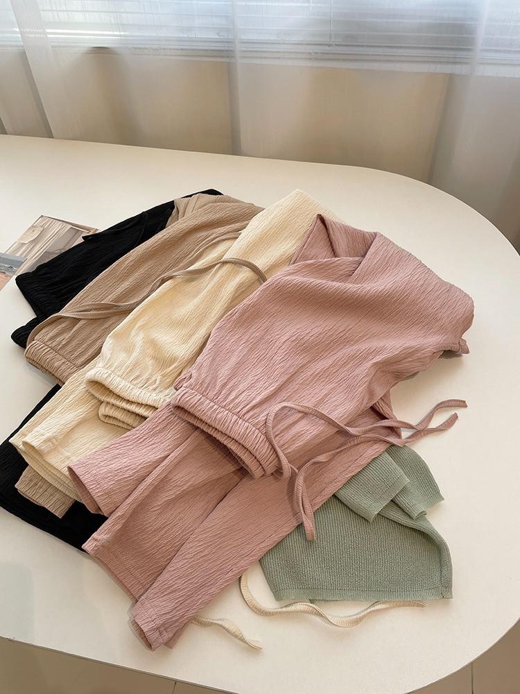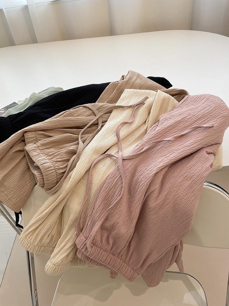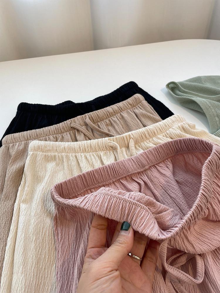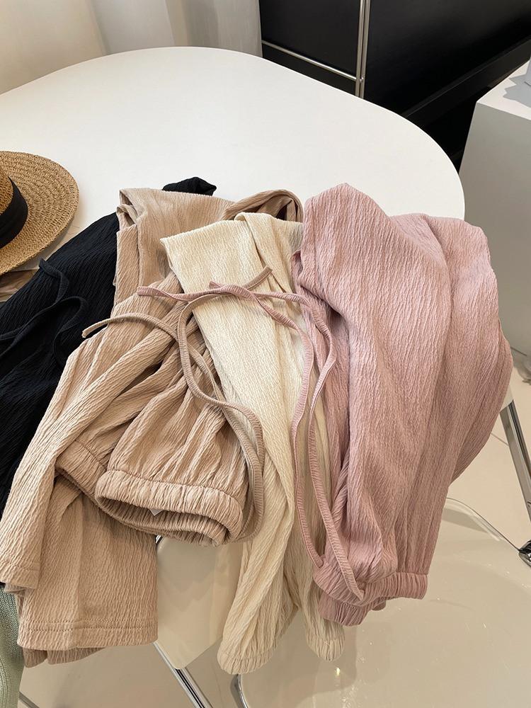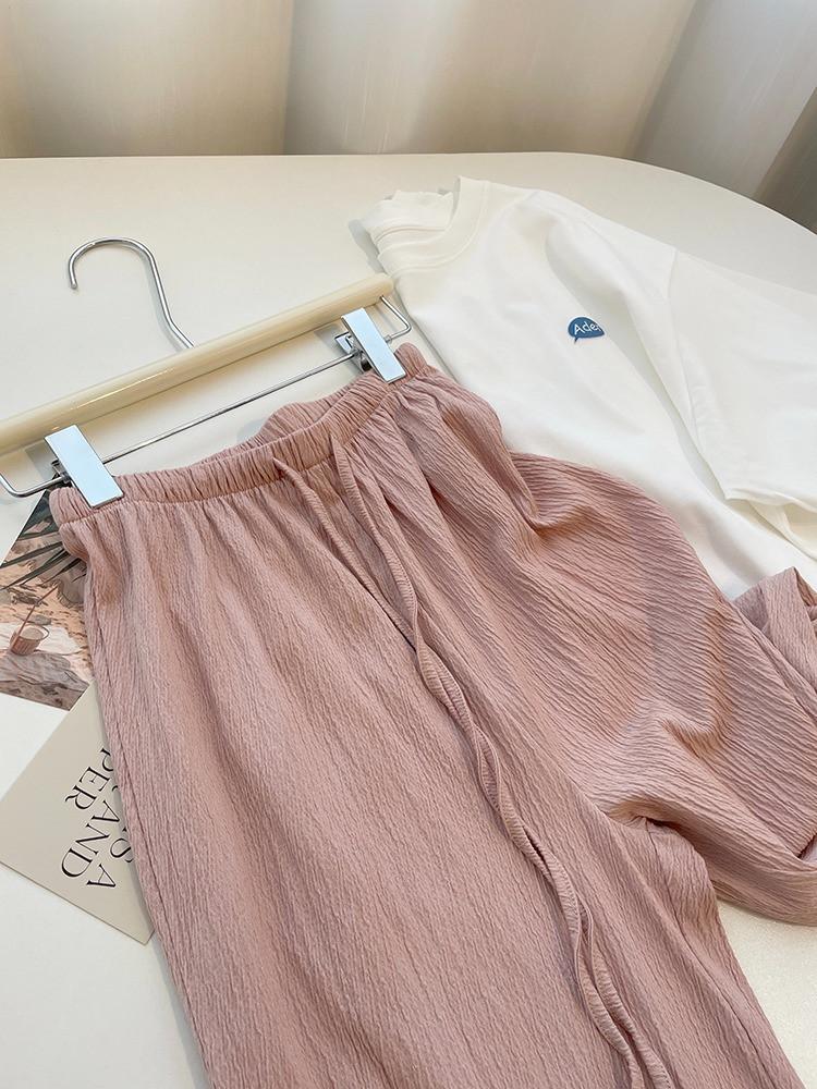 2025 Nuevo Diseño Drapeado Holgado de Cintura Alta Casual de Gama Alta Rosa Pantalones de Pierna Ancha Estrecha Verano Estilo Delgado para Mujer
