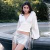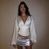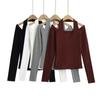 Camiseta de manga larga con escote en V profundo y sexy de las Spice Girls, primavera y verano 2025, nueva camiseta ajustada con cintura ajustada y hombros descubiertos.