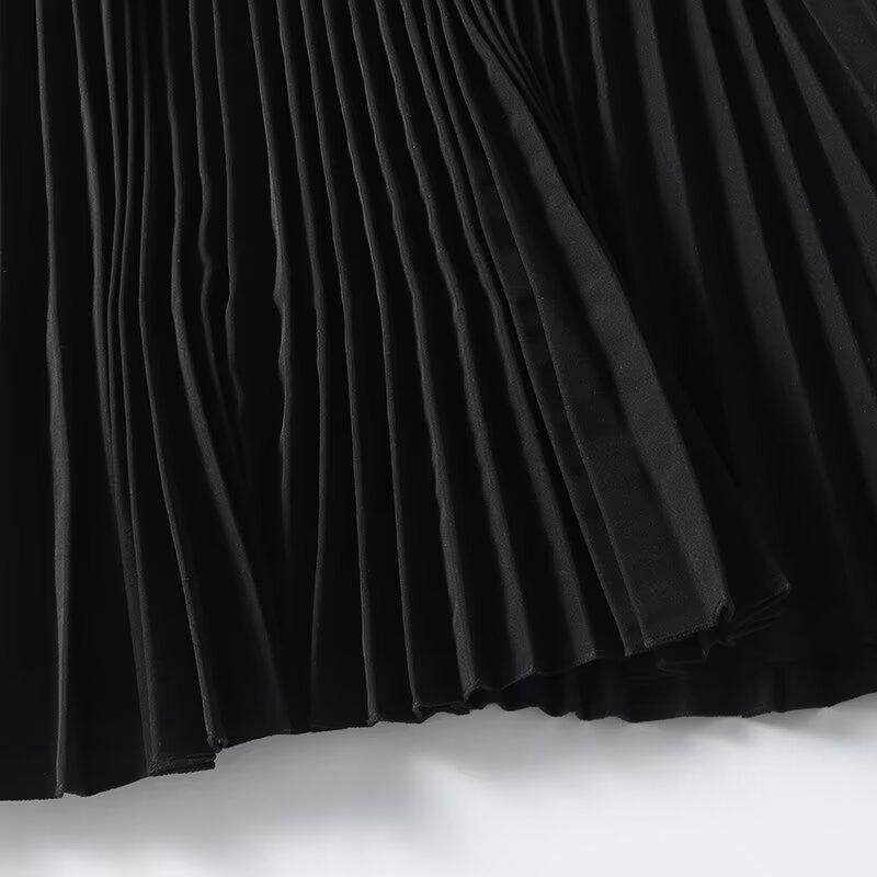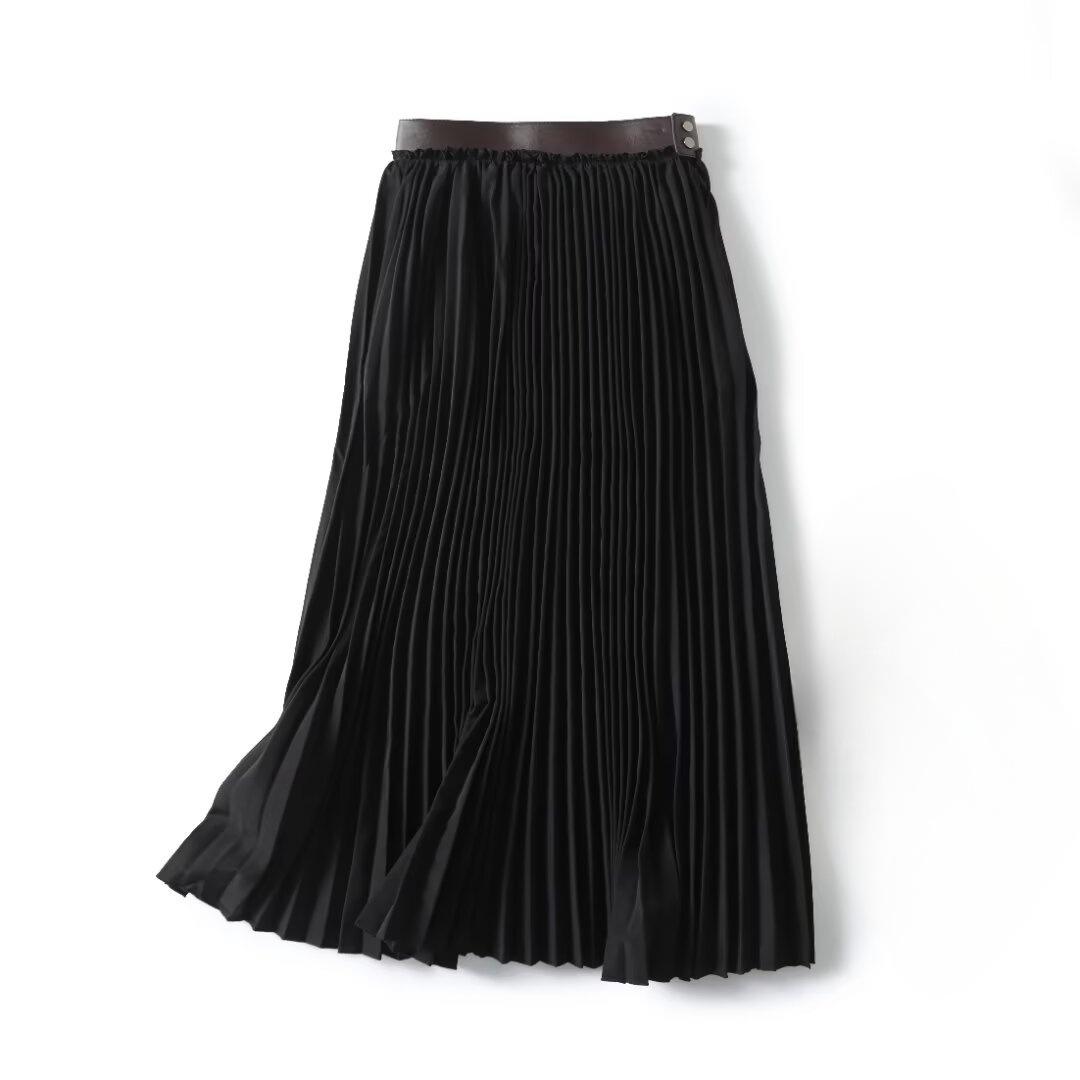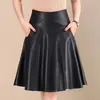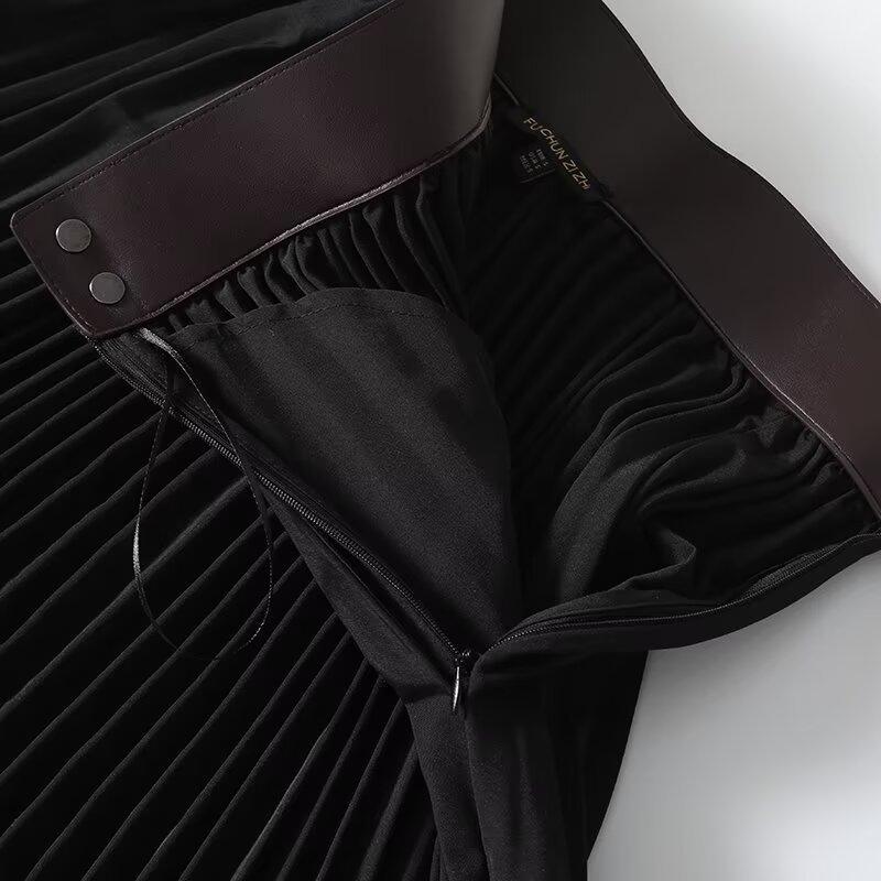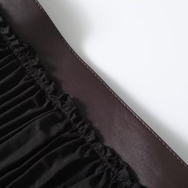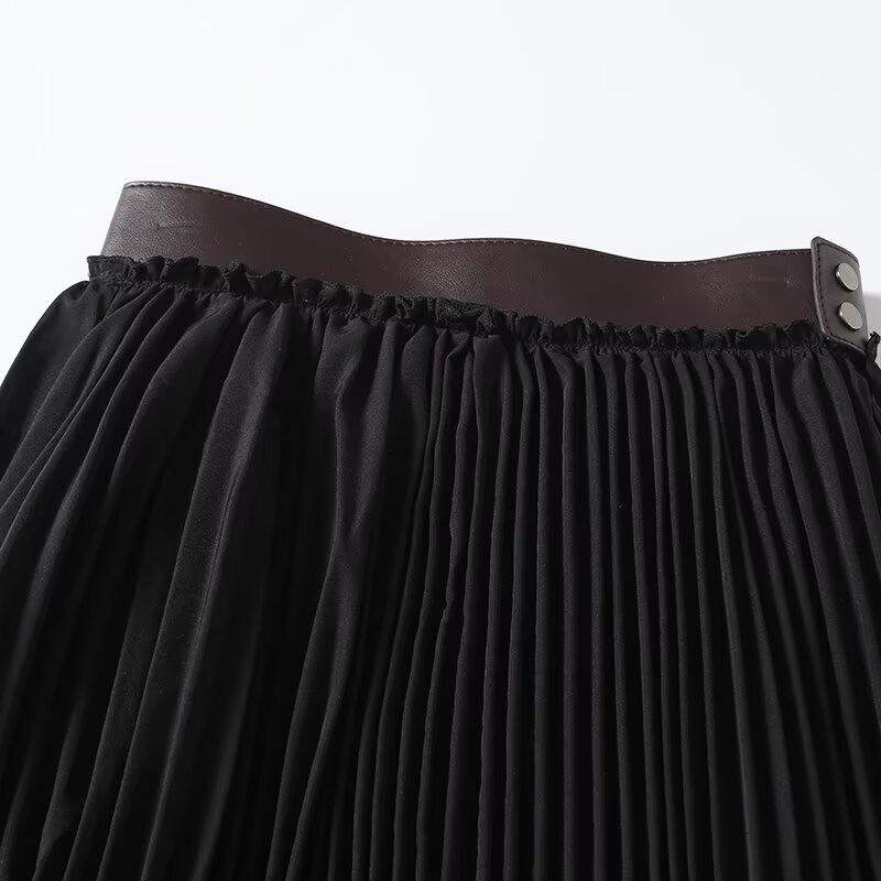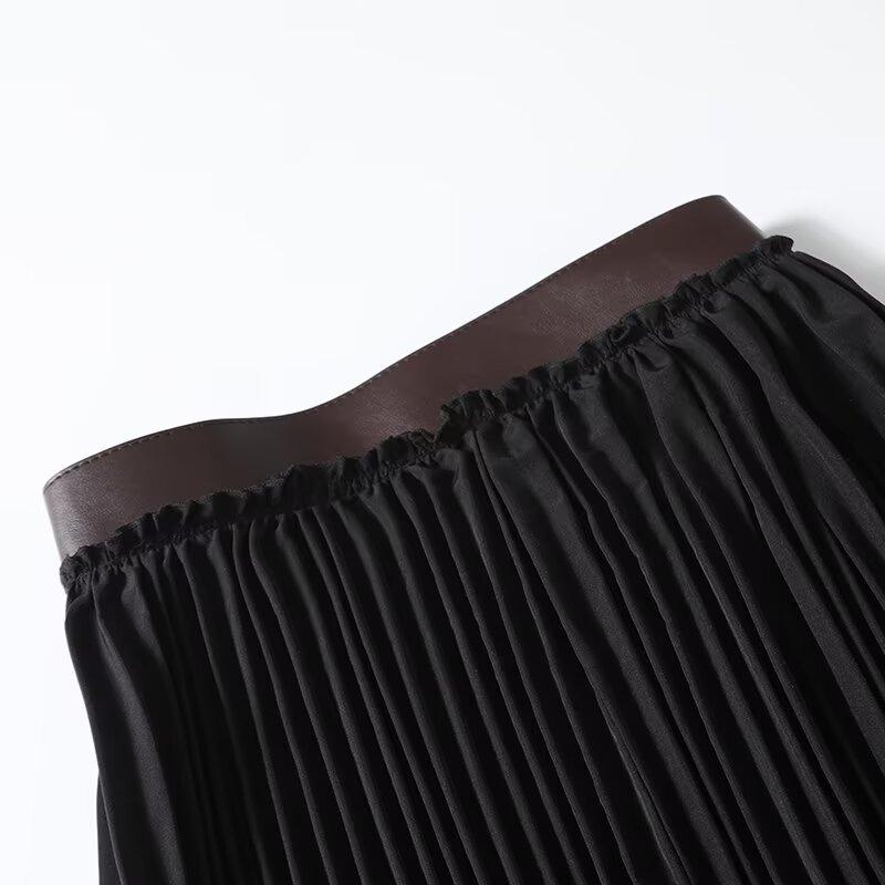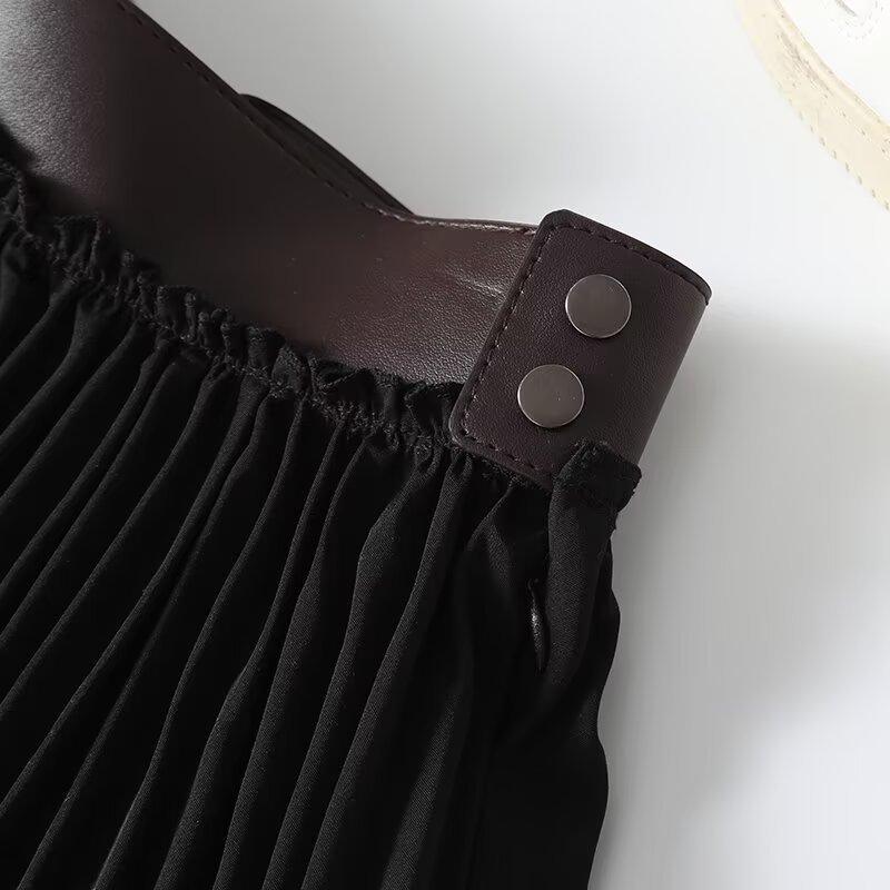 Ropa de mujer europea y americana transfronteriza 2025 primavera nuevo diseño de temperamento cintura cuero costuras plisado falda de cintura alta