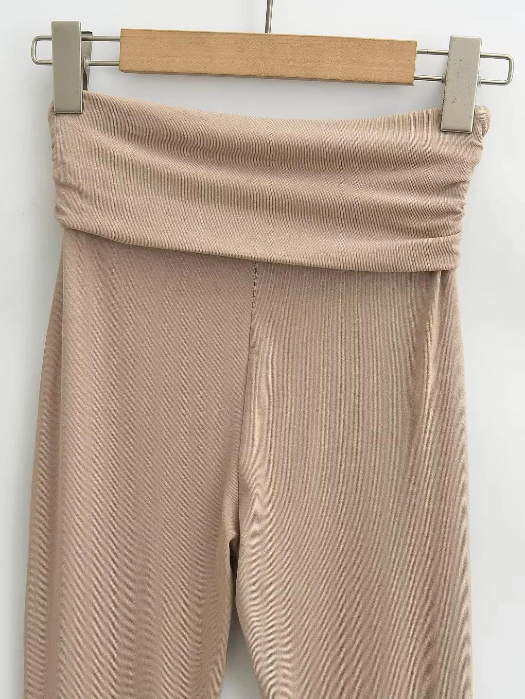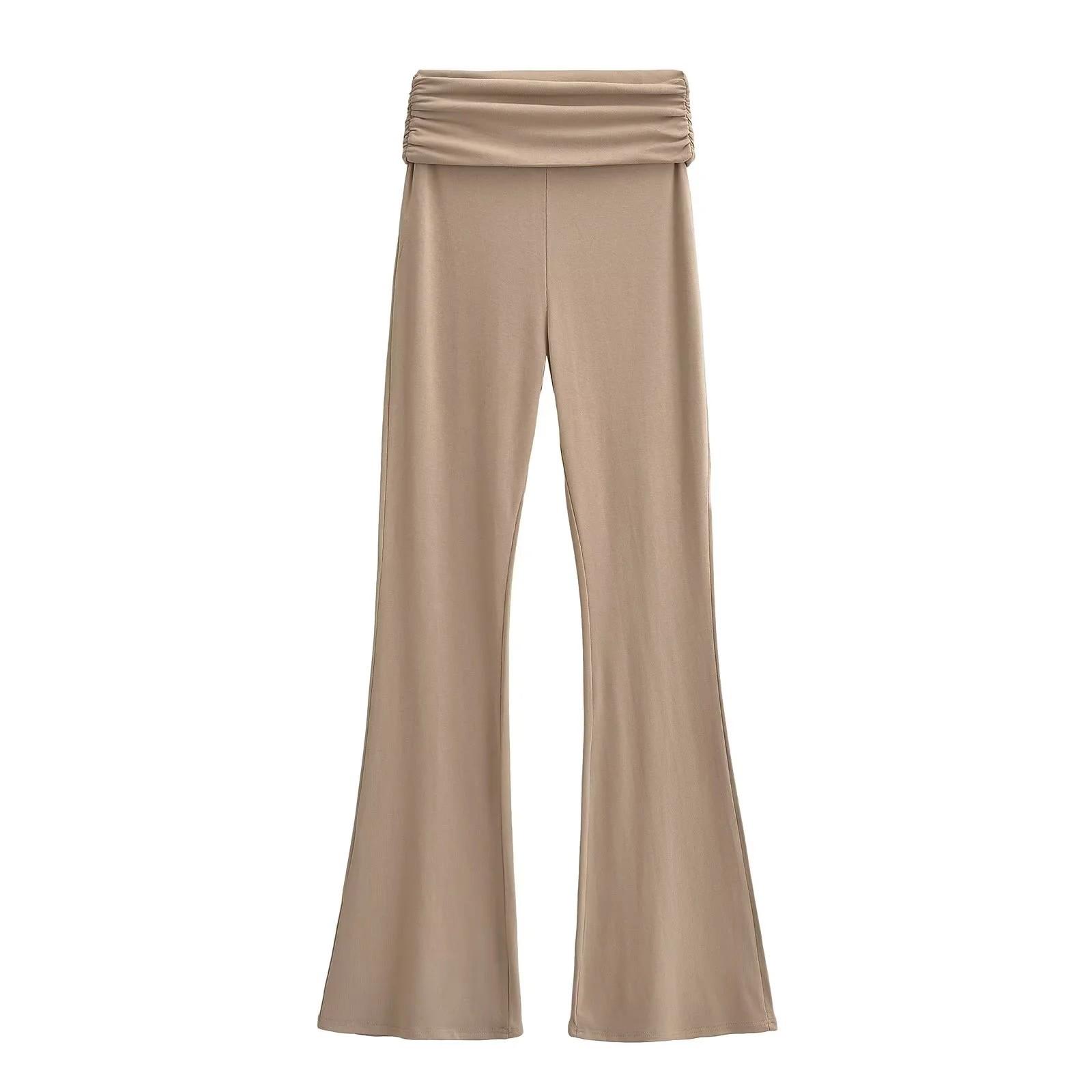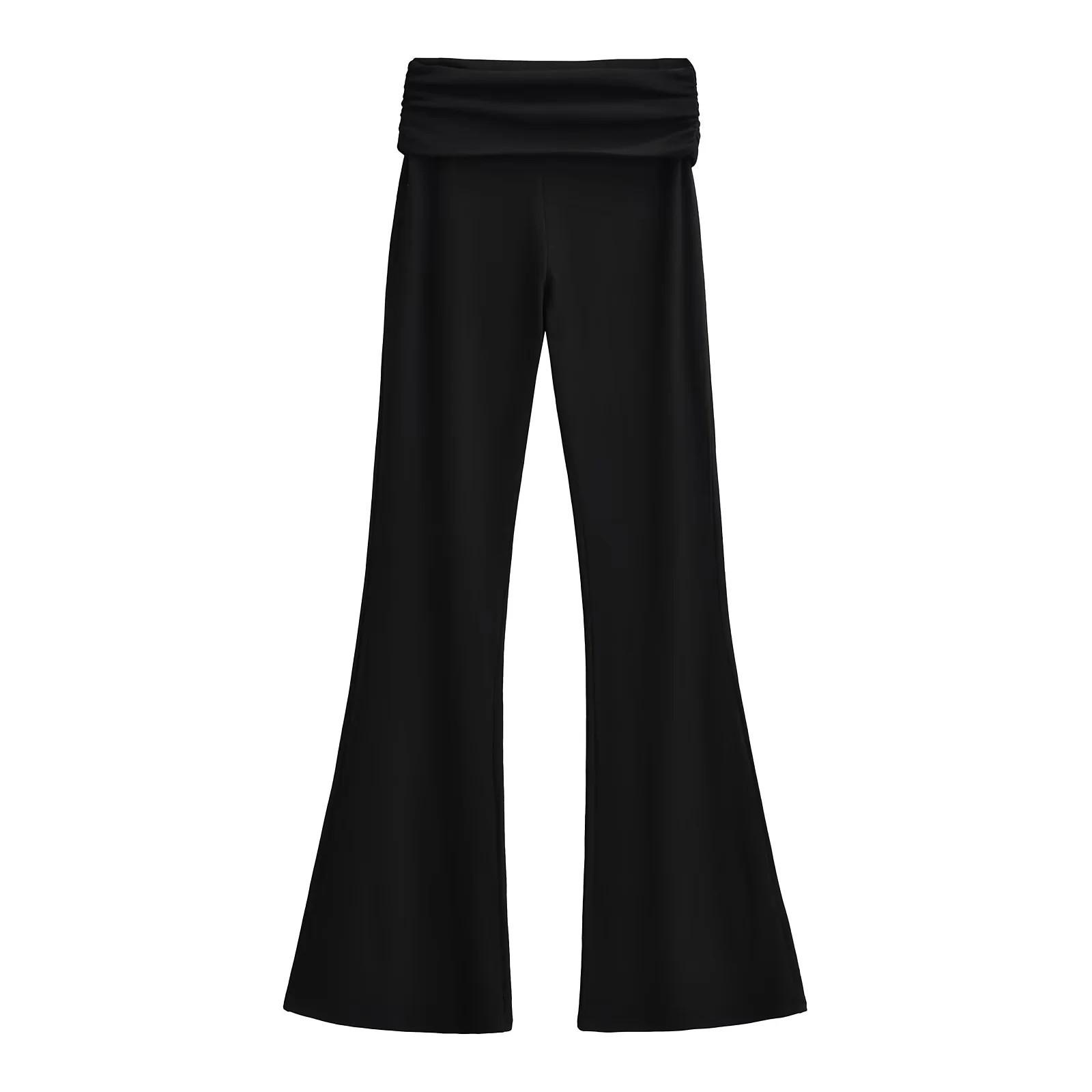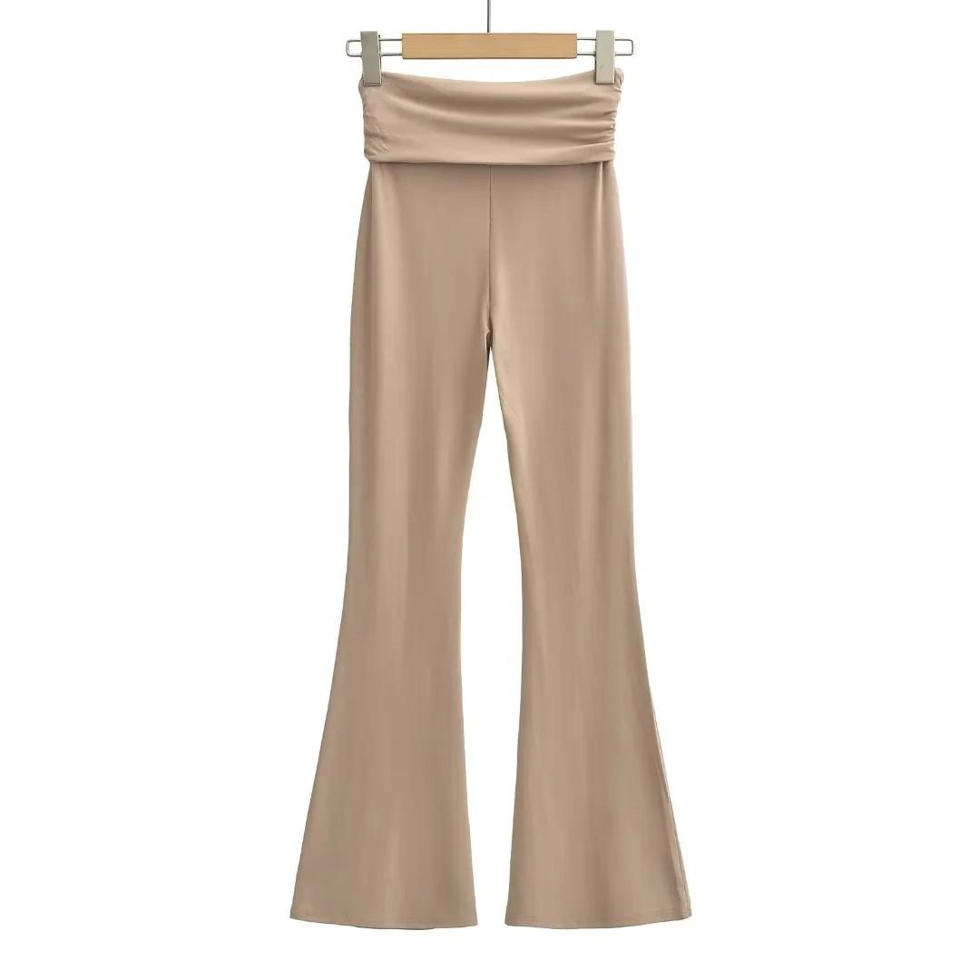 Pantalones de Yoga Microacampanados con Cintura con Dobladillo Plisado Nuevo Diseño Elástico Ajustado Sentido del Diseño Pantalones Ajustados Elásticos para Mujer