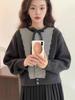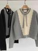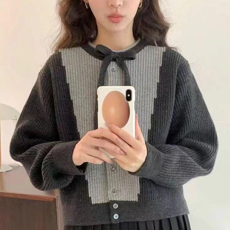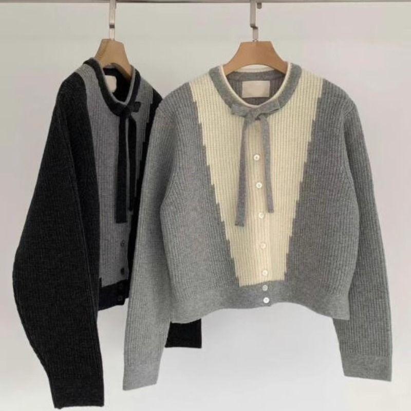 Suéter tipo cárdigan de punto gris suave y ceroso, sexy, estilo coreano, diseño de otoño e invierno, top con lazo dulce y delicado.