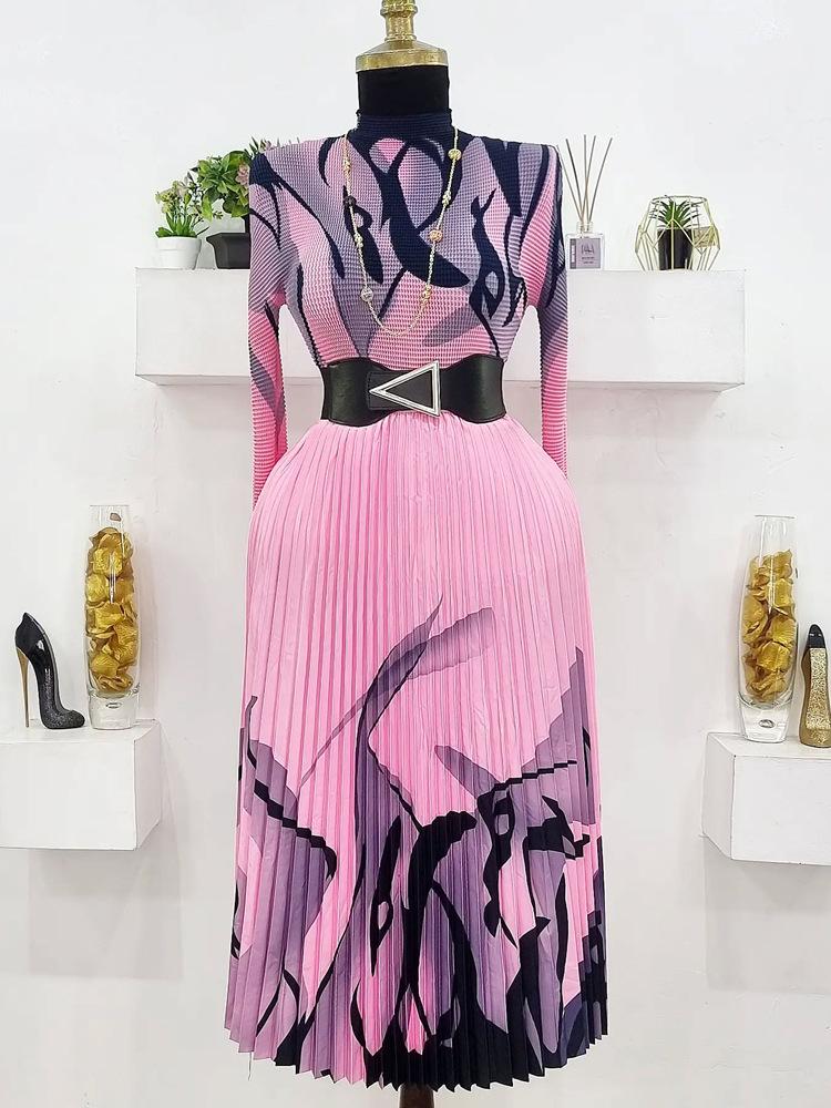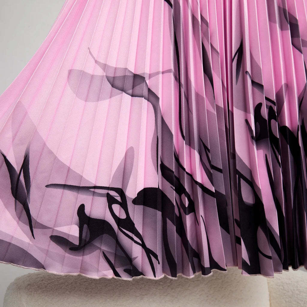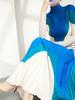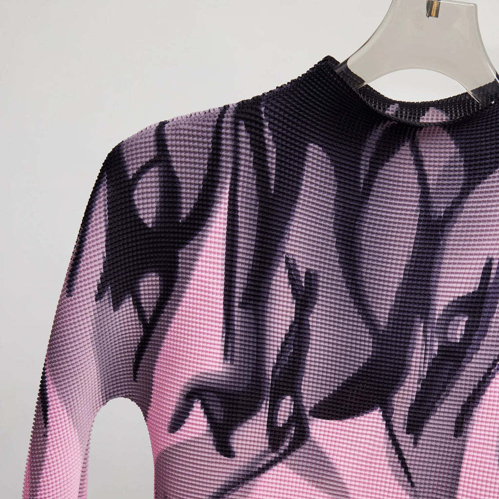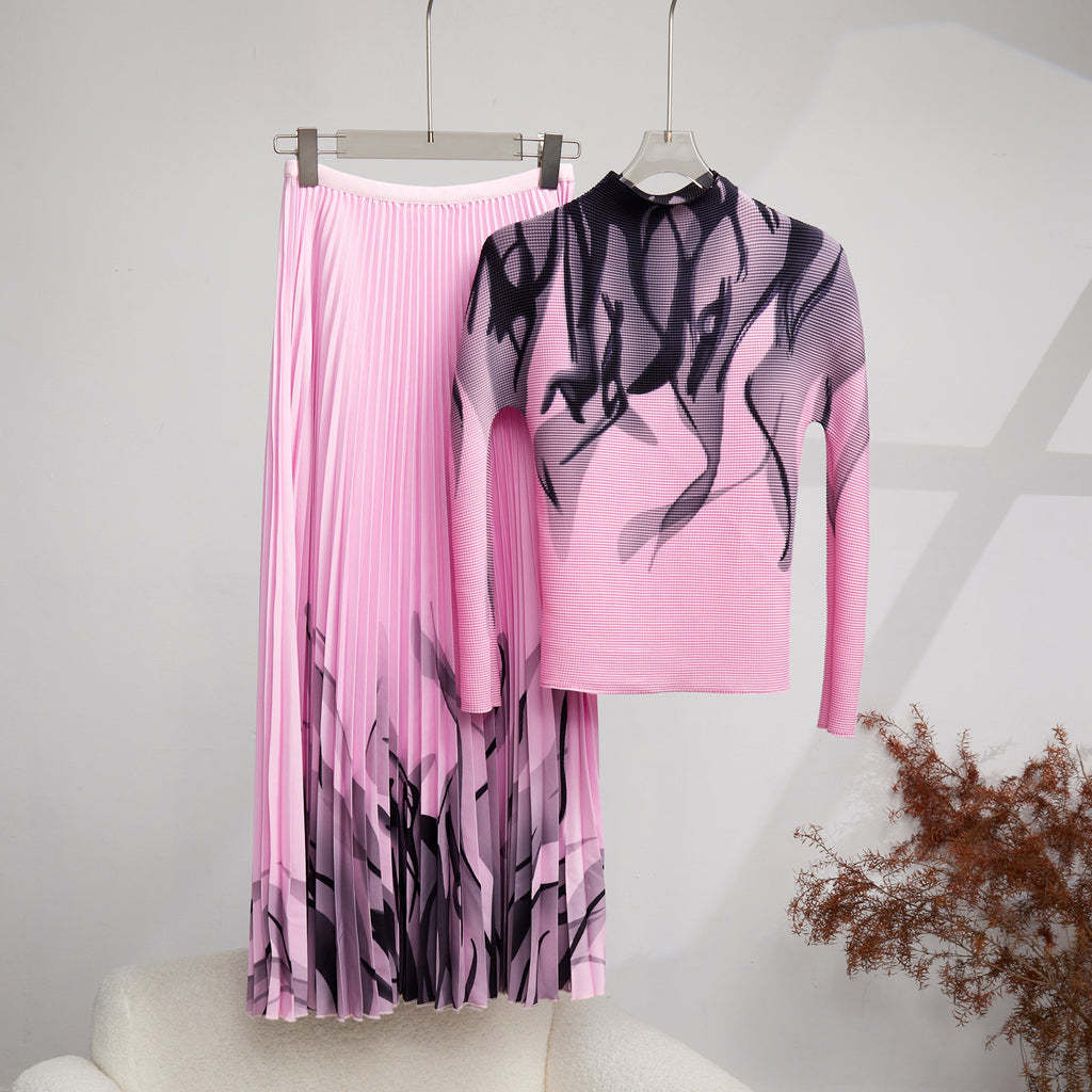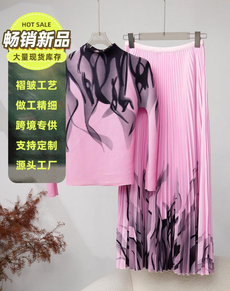 Traje adelgazante de dos piezas con top plisado Miyake y falda plisada con estampado de maíz, para mujer, talla grande, transfronterizo europeo y americano