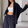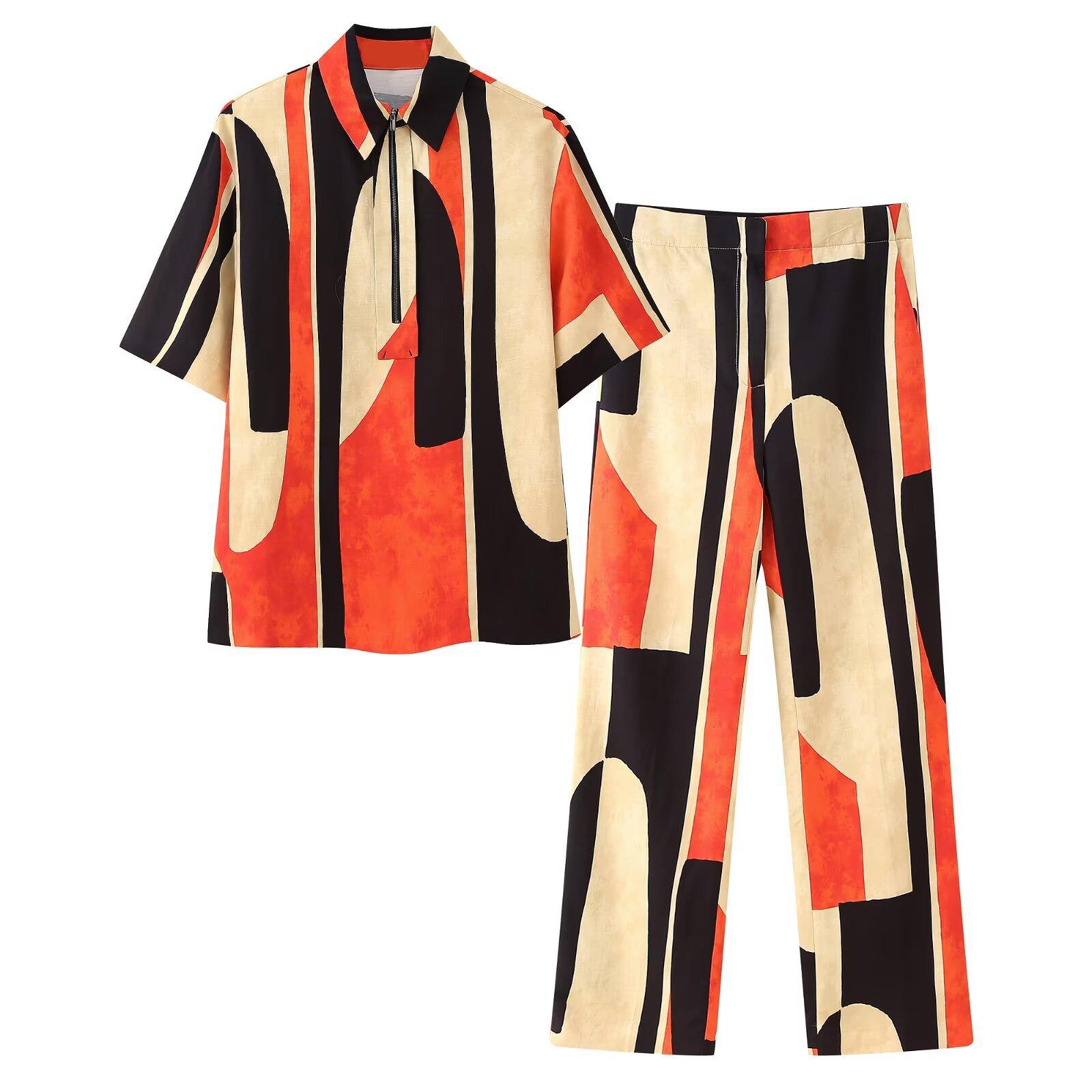 Ropa Europea y Americana Transfronteriza 2025 Primavera Nueva Moda Elegante Casual Camisa de Manga Corta Traje de Pantalones de Cintura Alta