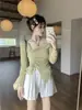 Camiseta de manga larga con cuello en V y cintura alta, ajustada y adelgazante, estilo Spice Girl, con costuras de encaje sexys.