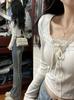 Camiseta de manga larga con cordones de otoño, diseño de Spice Girls, corte entallado, adelgazante, sexy, estilo Pure Desire, top de moda de nicho para mujer.