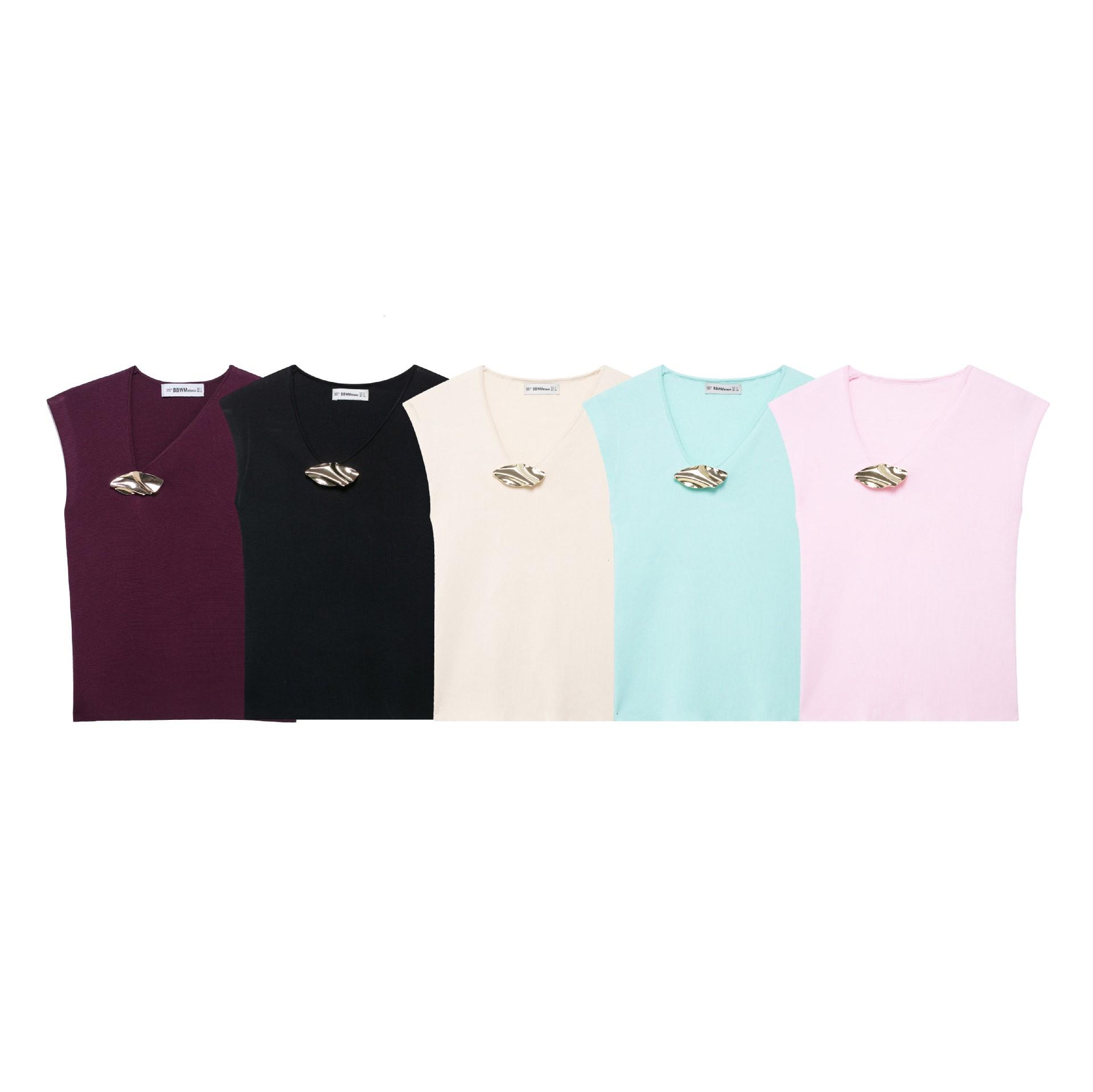 Ropa de mujer europea y americana de comercio exterior transfronterizo de Amazon, primavera 2025, nuevo estilo europeo y americano, diseño de hebilla de metal de punto.