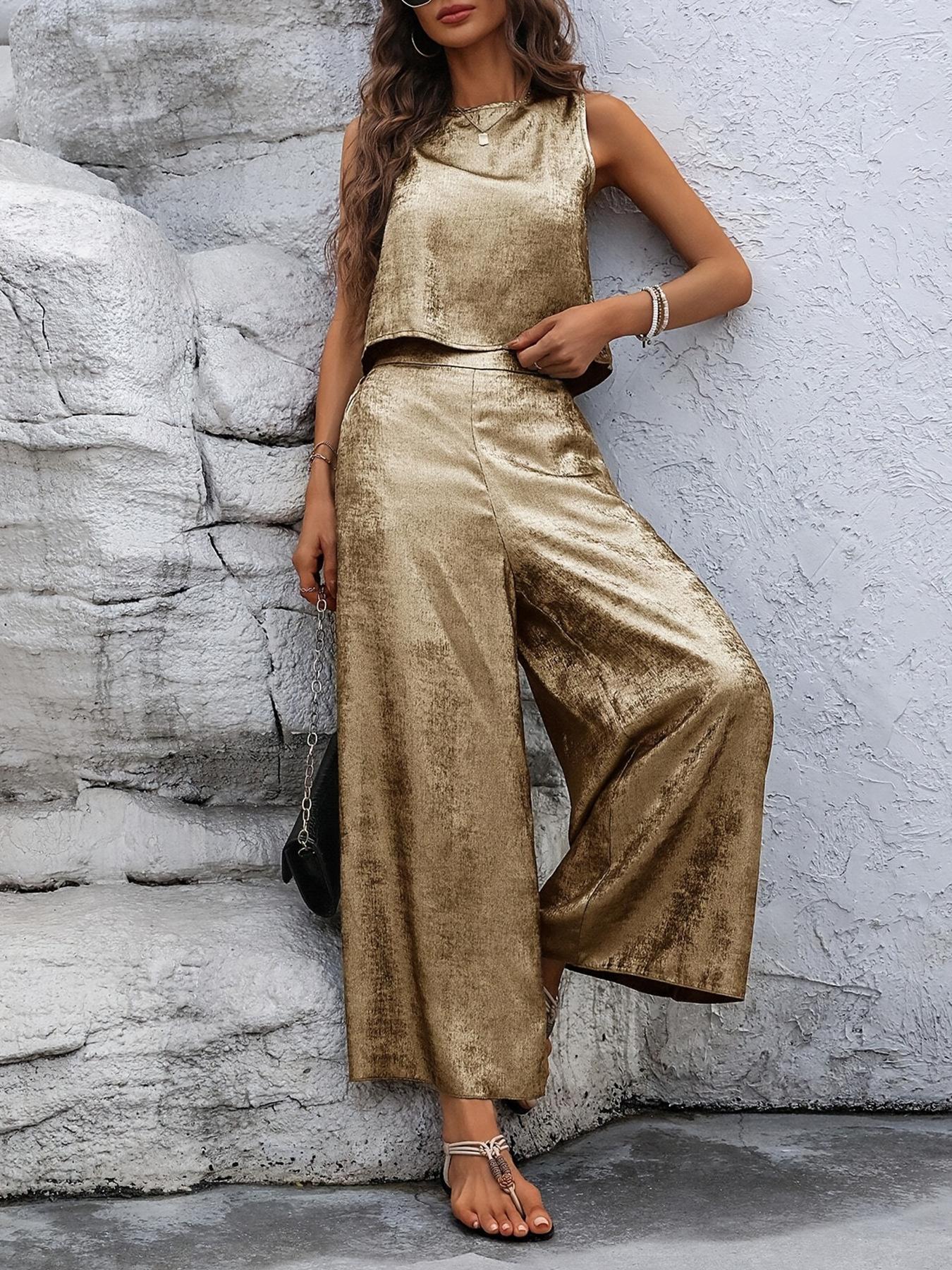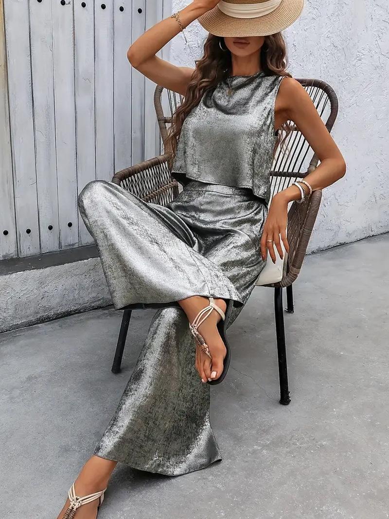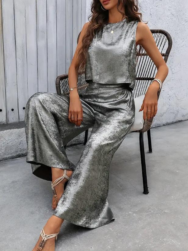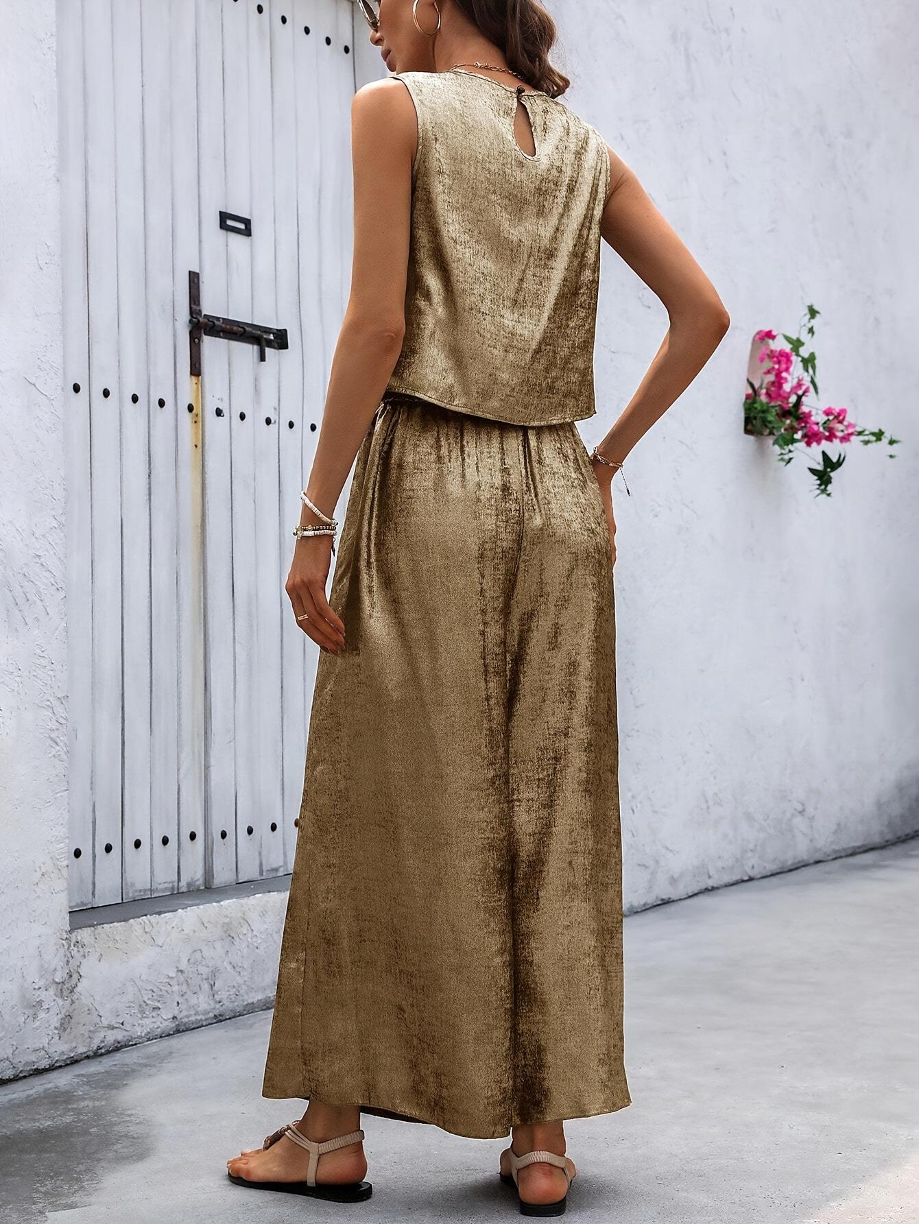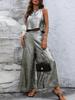 Ropa de mujer transfronteriza europea y americana Amazon Moda para mujer Casual Color sólido Top sin mangas Pantalón de manga corta Traje de moda