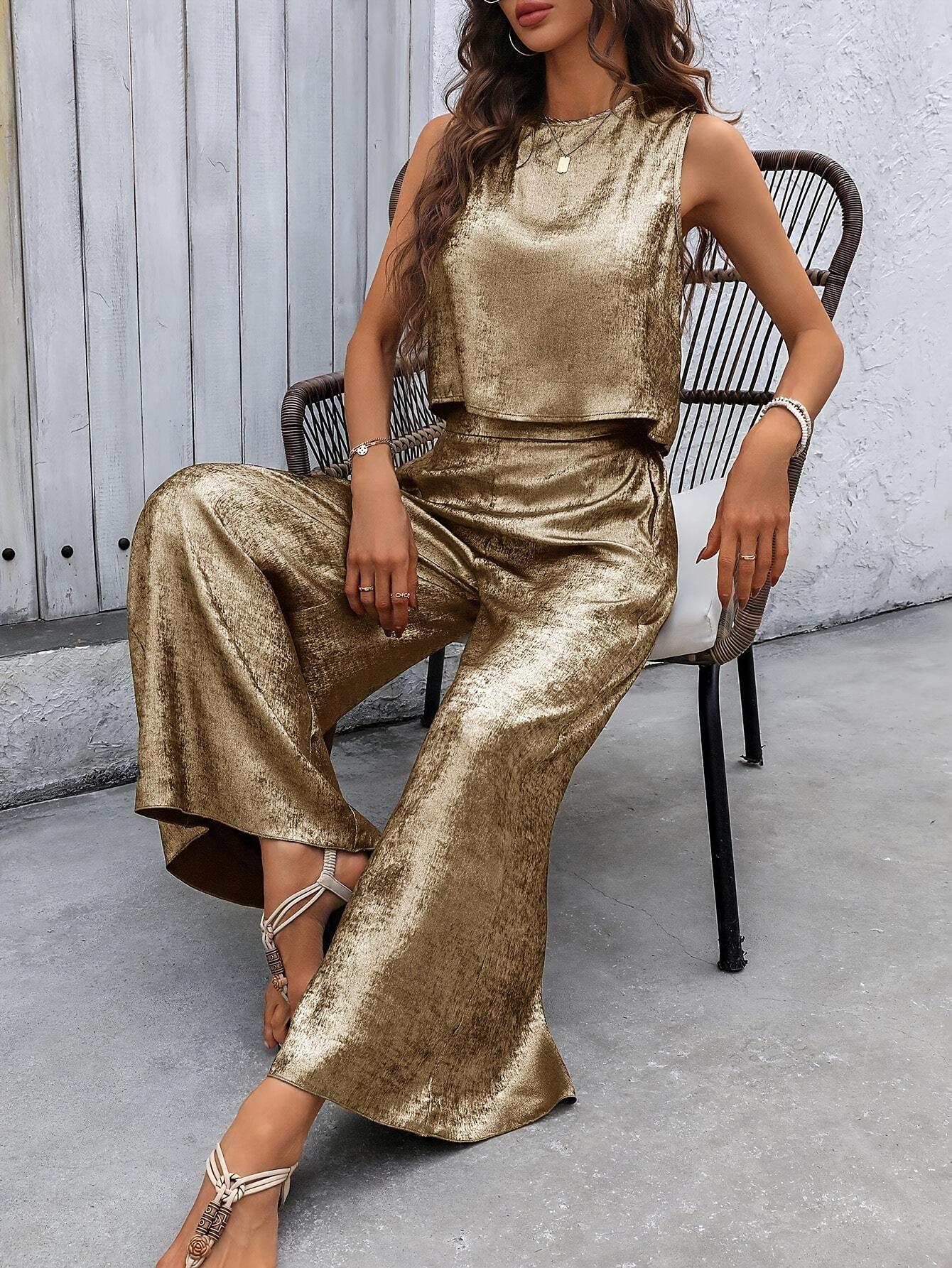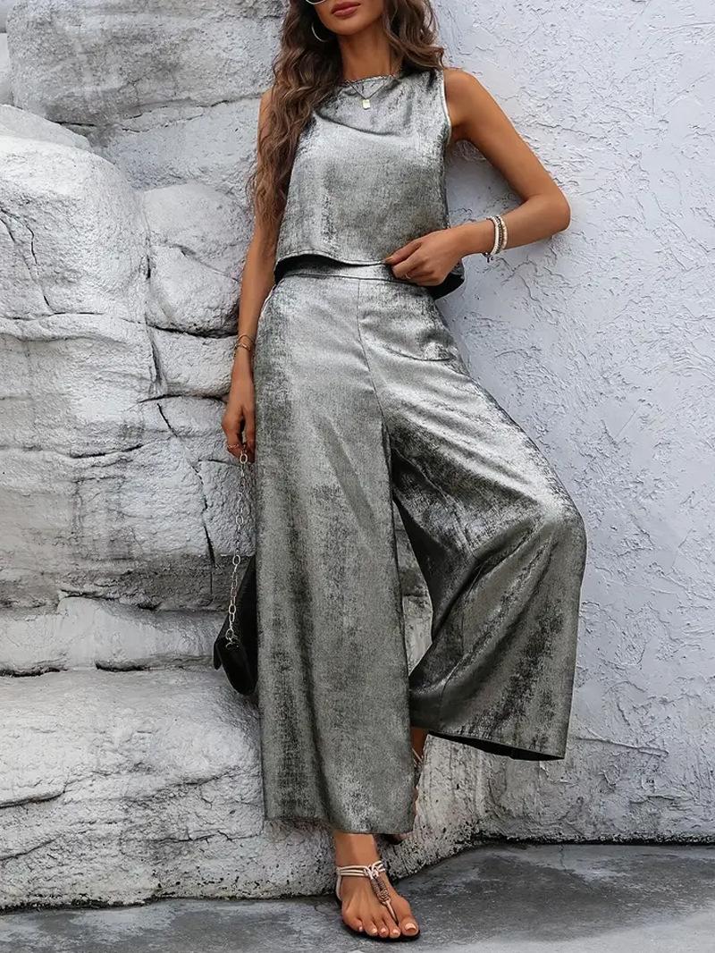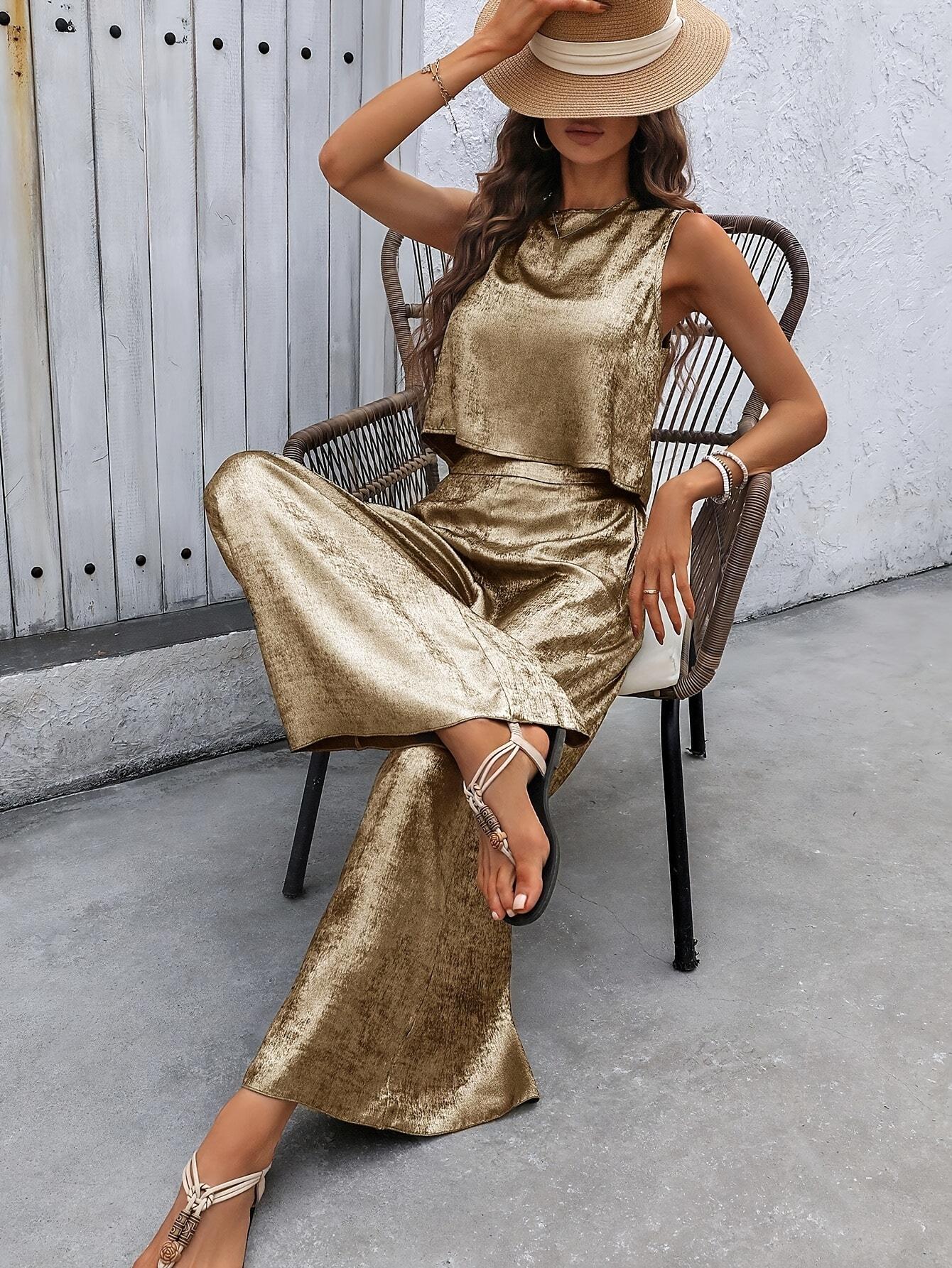 Ropa de mujer transfronteriza europea y americana Amazon Moda para mujer Casual Color sólido Top sin mangas Pantalón de manga corta Traje de moda