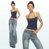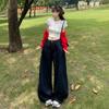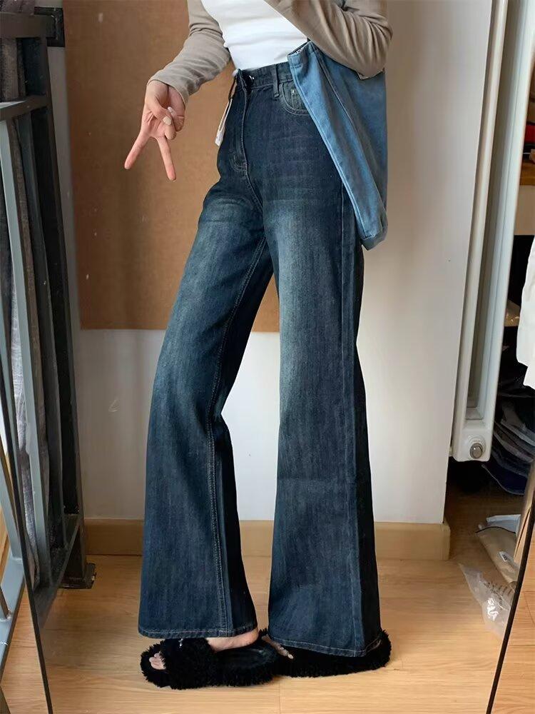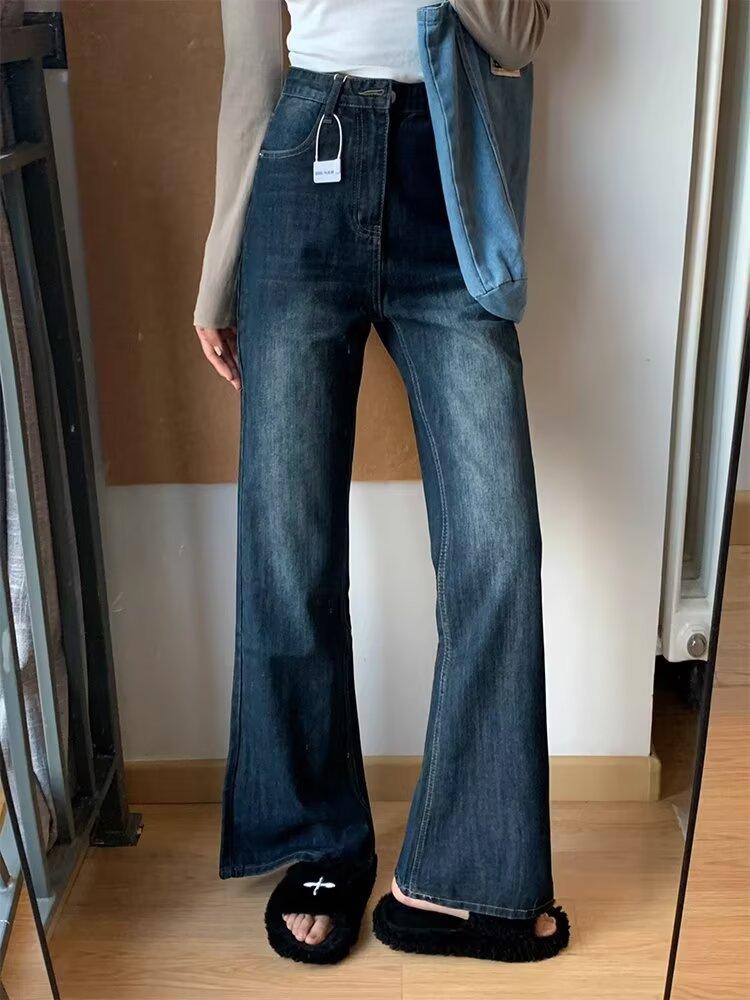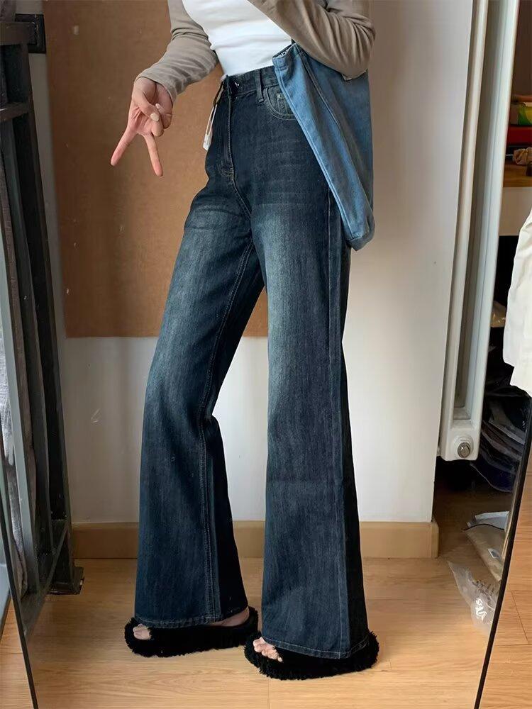 FUIV Jeans Azules Rotos de Pierna Ancha para Mujer Verano Delgados de Cintura Alta Talla Extra Adelgazantes Chica Gordita Forma de Pera Pantalones Rectos