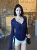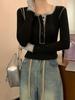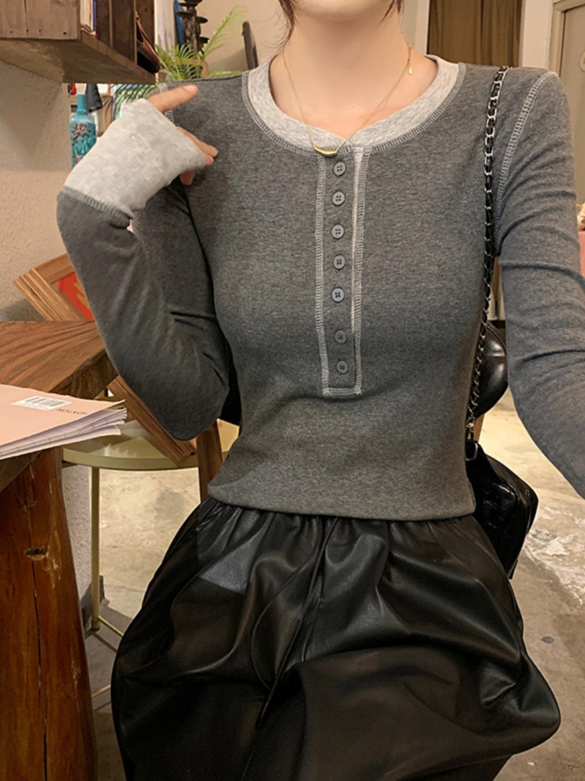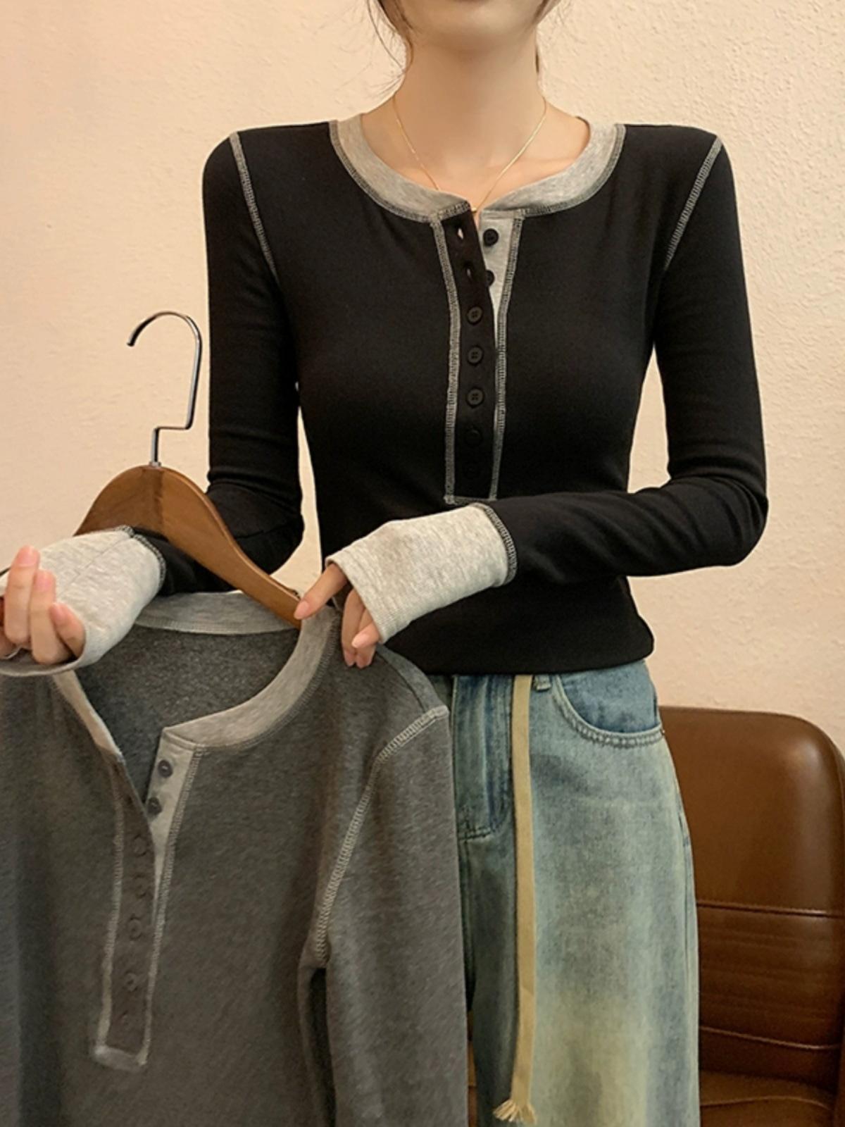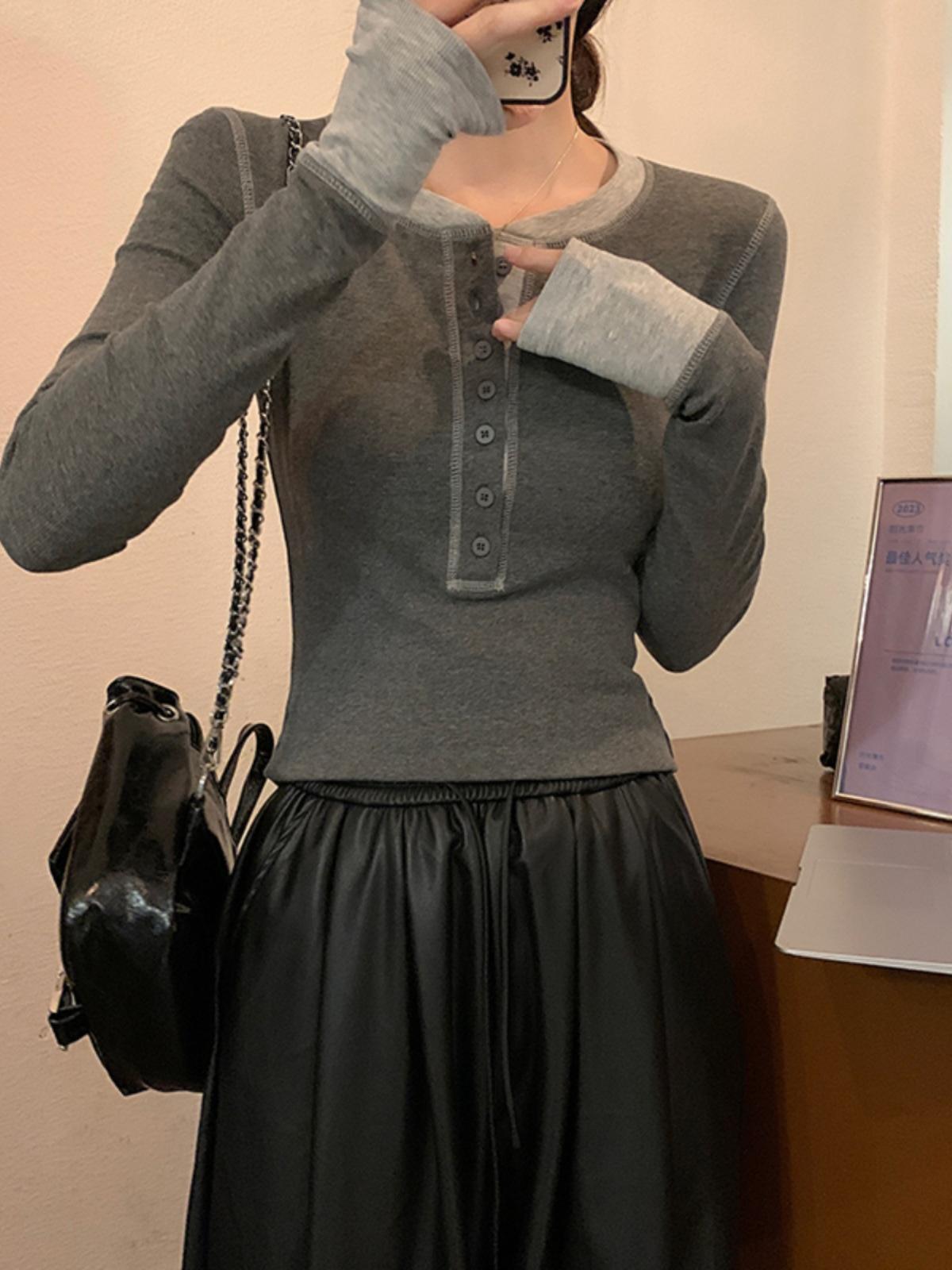 Camiseta de manga larga pura de otoño 2024, fina, ajustada, adelgazante, cuello redondo, estilo Spice Girls, top sexy de nicho único.