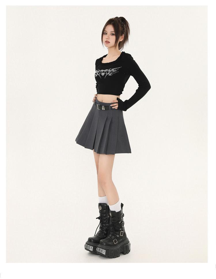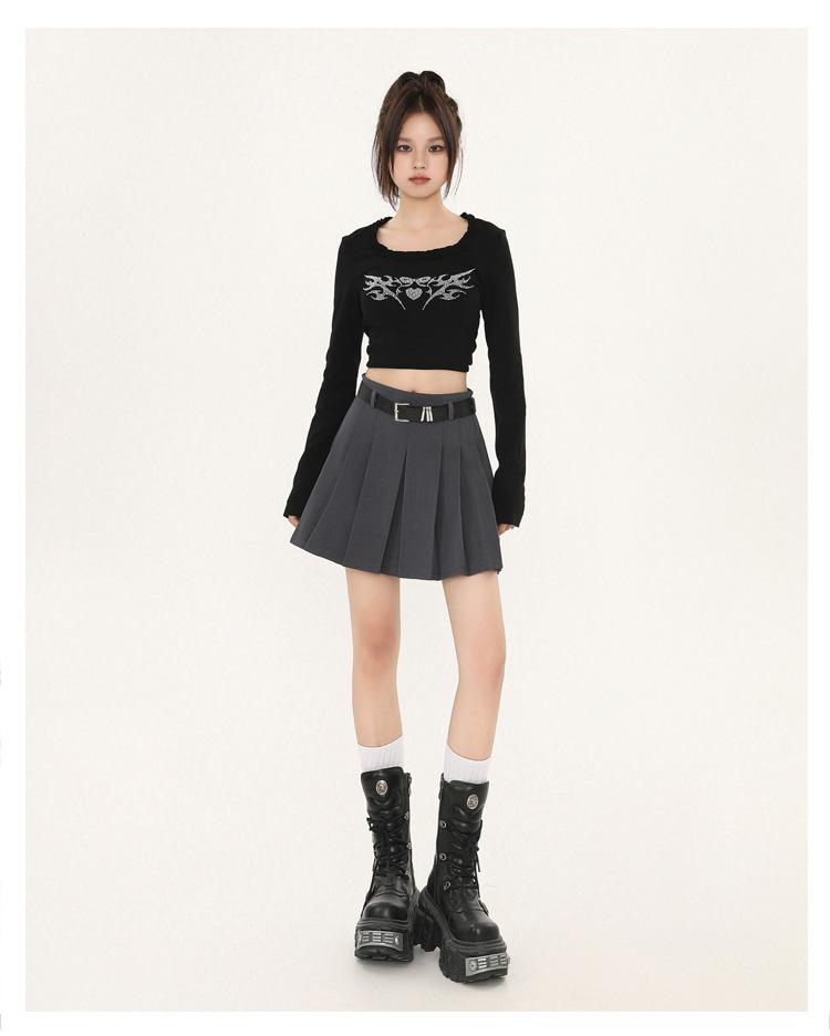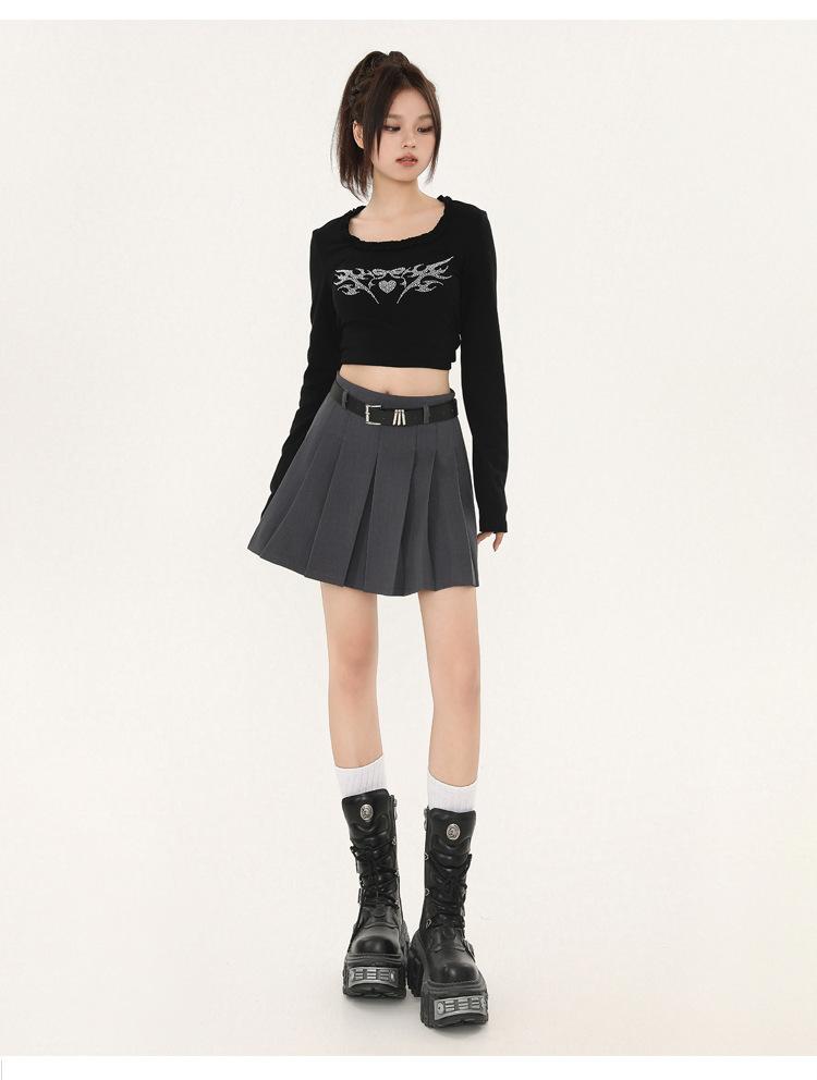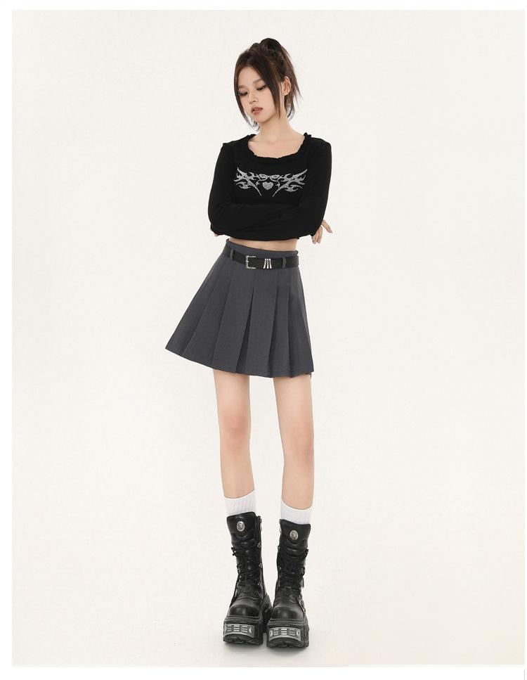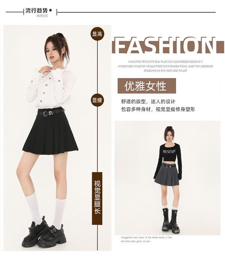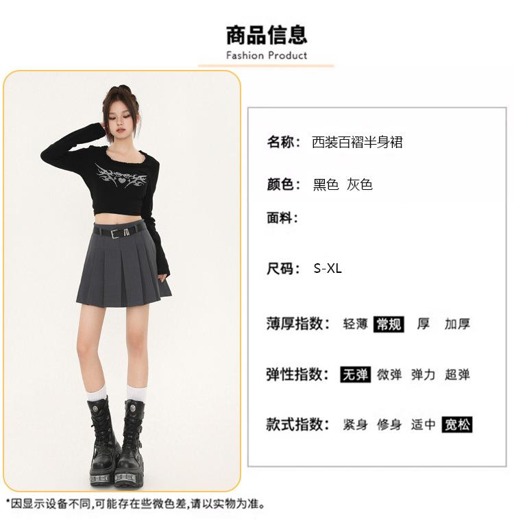 Falda plisada gris para mujer, primavera 2025, estilo coreano, estilo universitario, cintura alta, informal, corte A