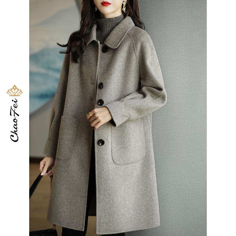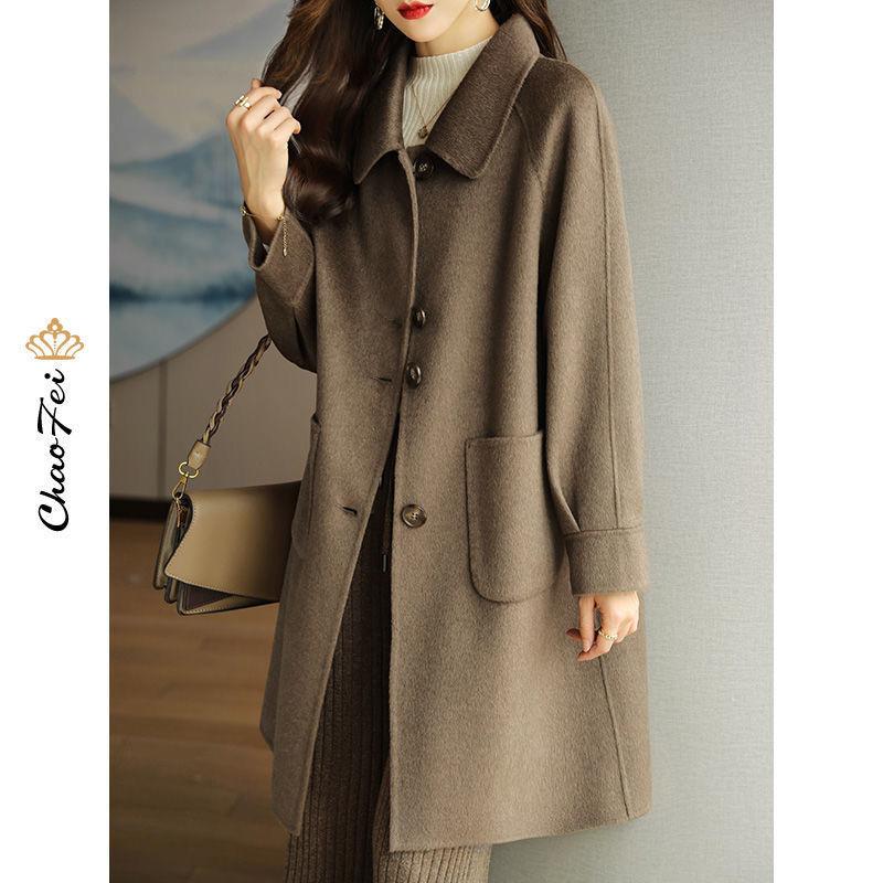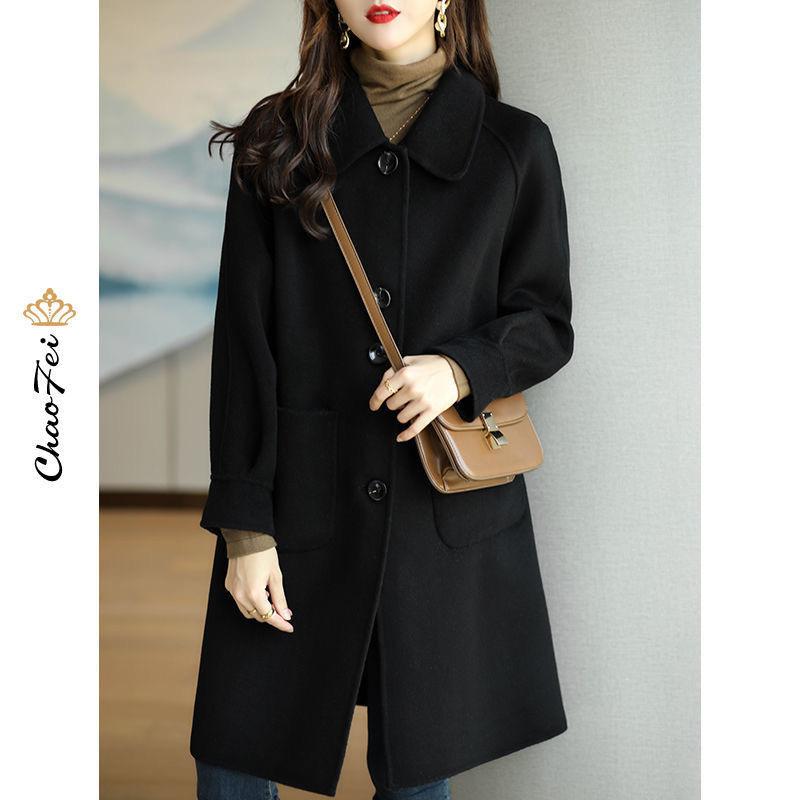 Abrigo de Lana para Mujer 2022 Otoño e Invierno Nuevo Estilo Pequeño Engrosado Estilo Coreano Delgado Elegante Largo Medio Abrigo de Lana