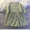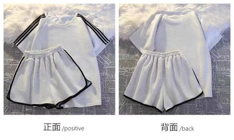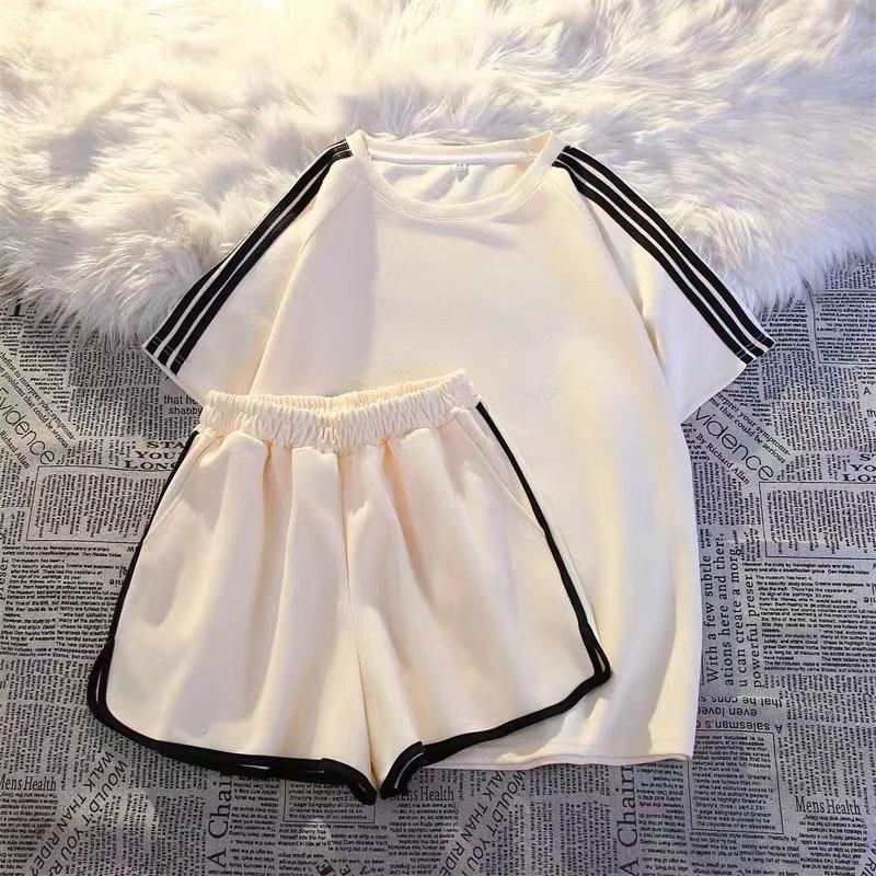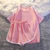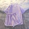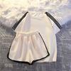 Conjunto de dos piezas de pantalones cortos holgados de estilo coreano con cuello redondo y manga corta para mujer, traje deportivo informal de moda.