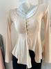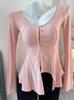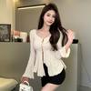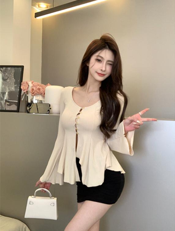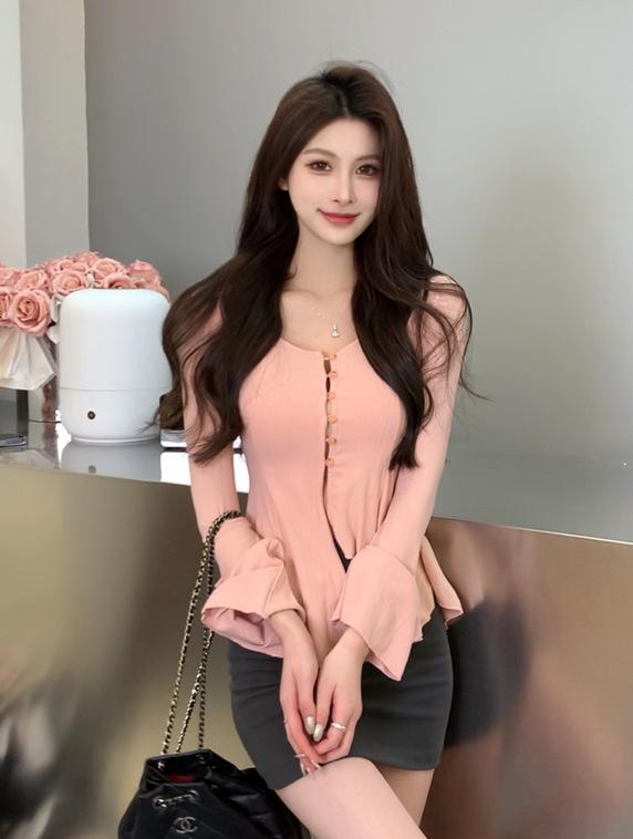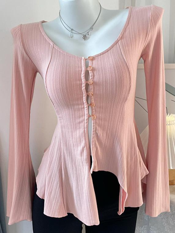 Otoño Spice Girls Sexy Ajustado Adelgazante Cintura Manga Trompeta Nuevo Camisa de Manga Larga Diseño Cárdigan Top Irregular