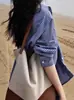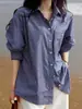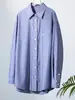 Camisa informal de manga larga a rayas azules y blancas con costuras de botones, elegante, estilo nuevo de primavera y otoño de 2025 para mujer