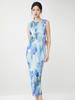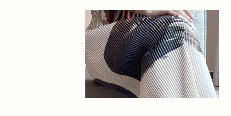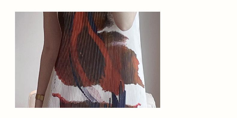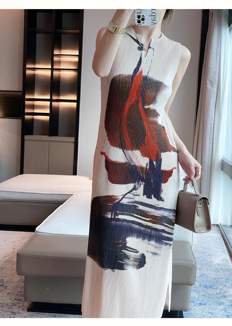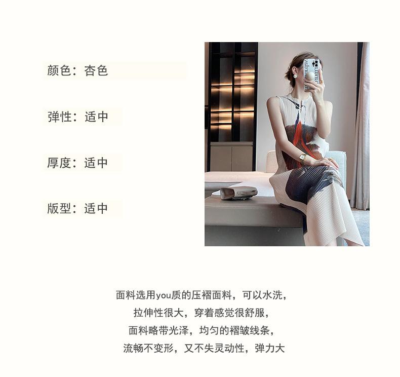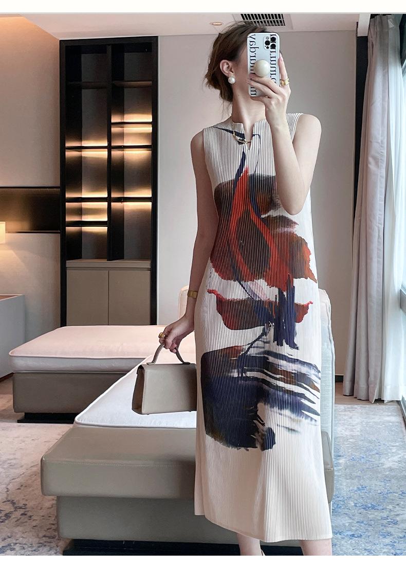 Vestido Miyake plisado sin mangas con estampado de alta gama pintado a mano nuevo de verano 2025, elegante vestido ajustado