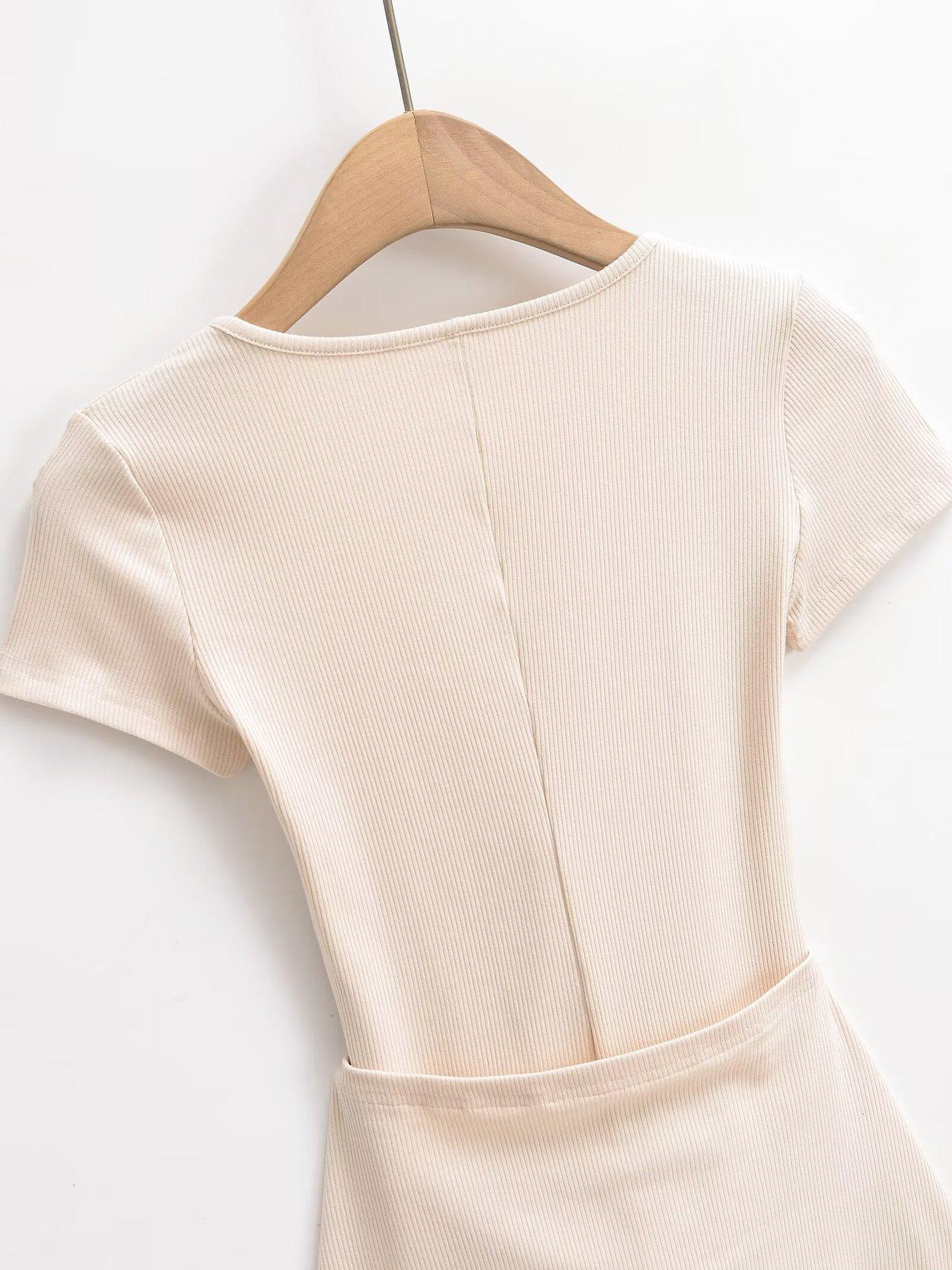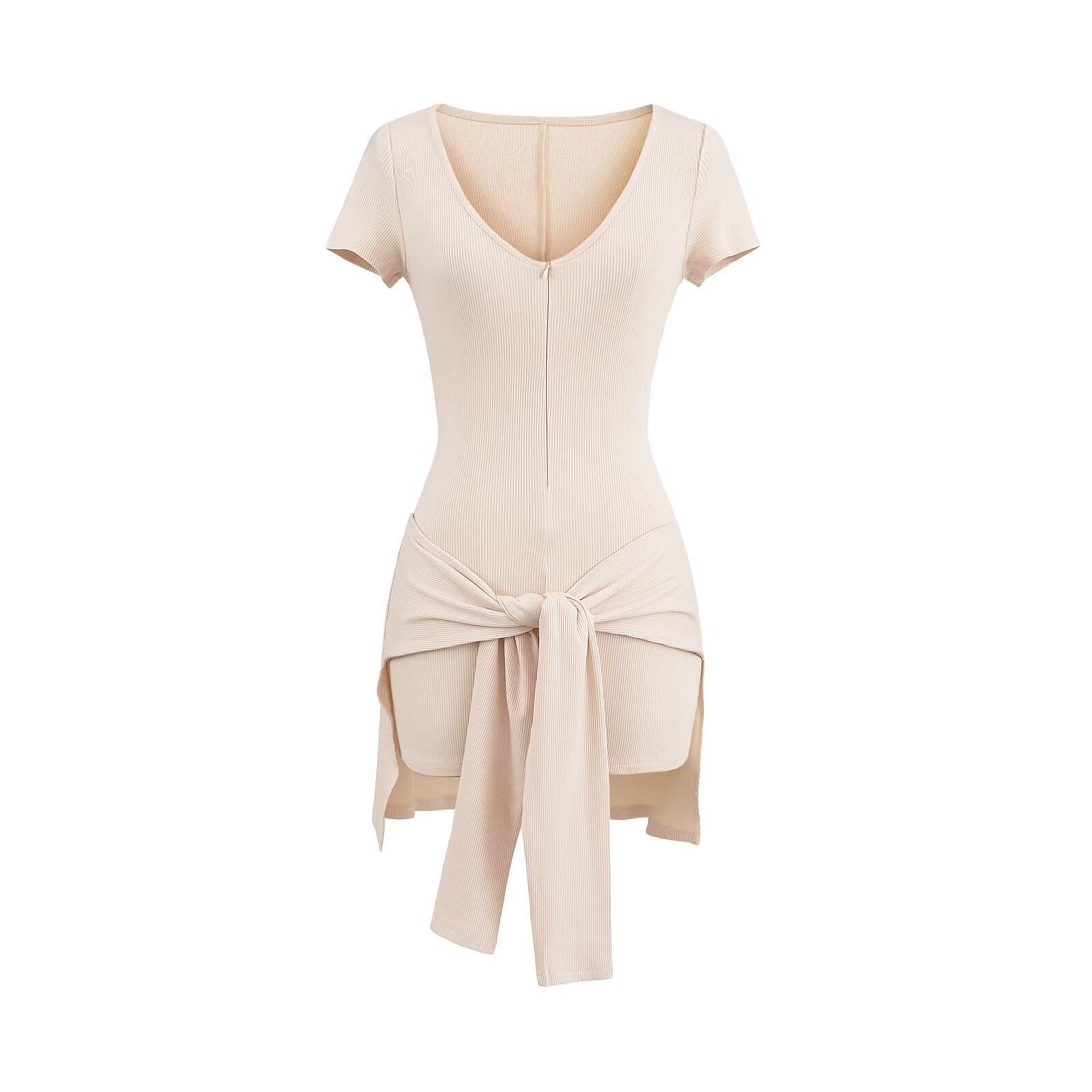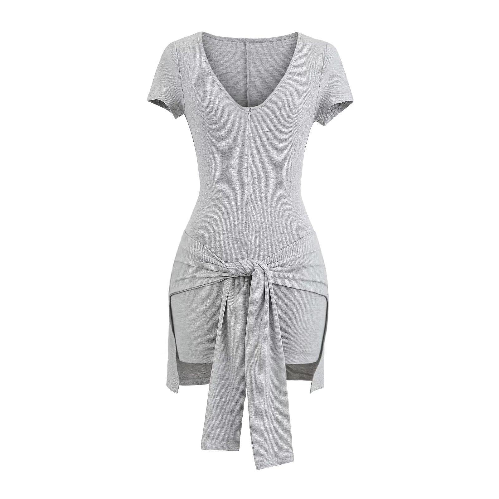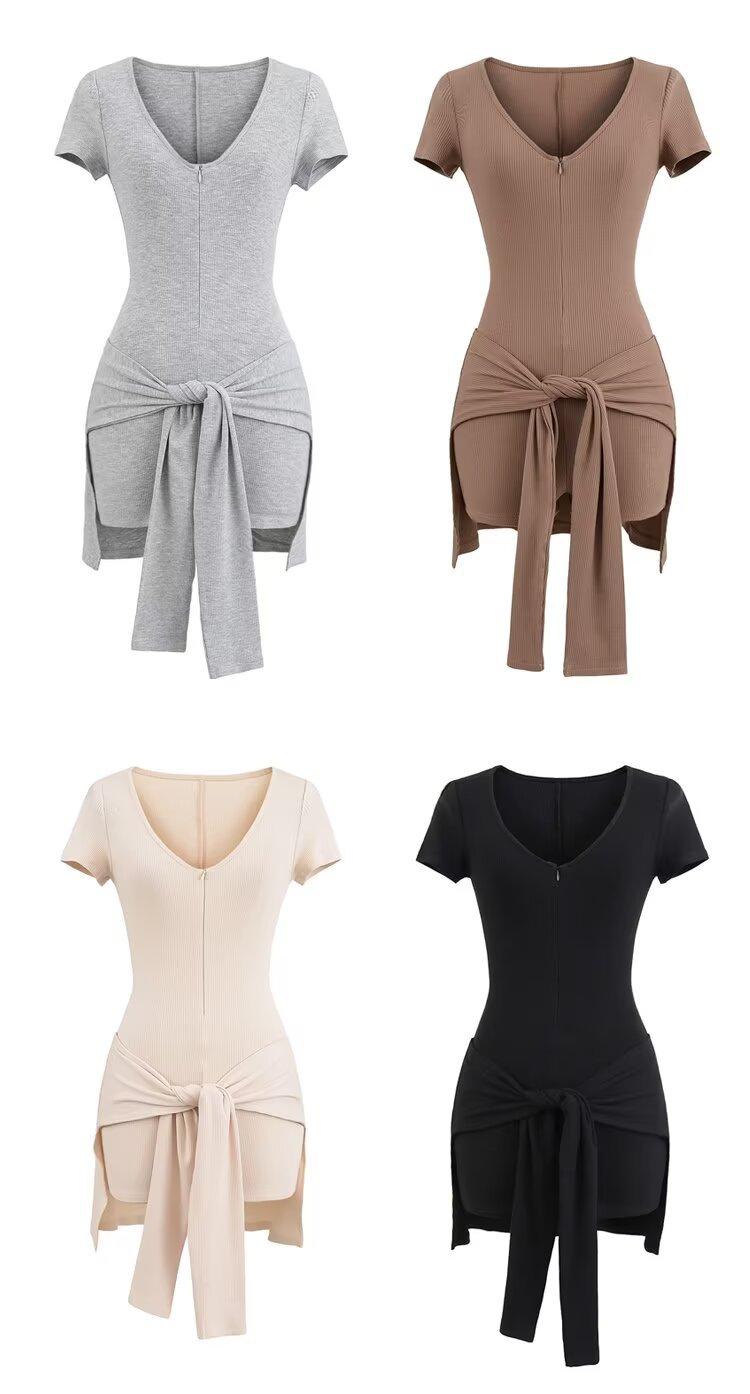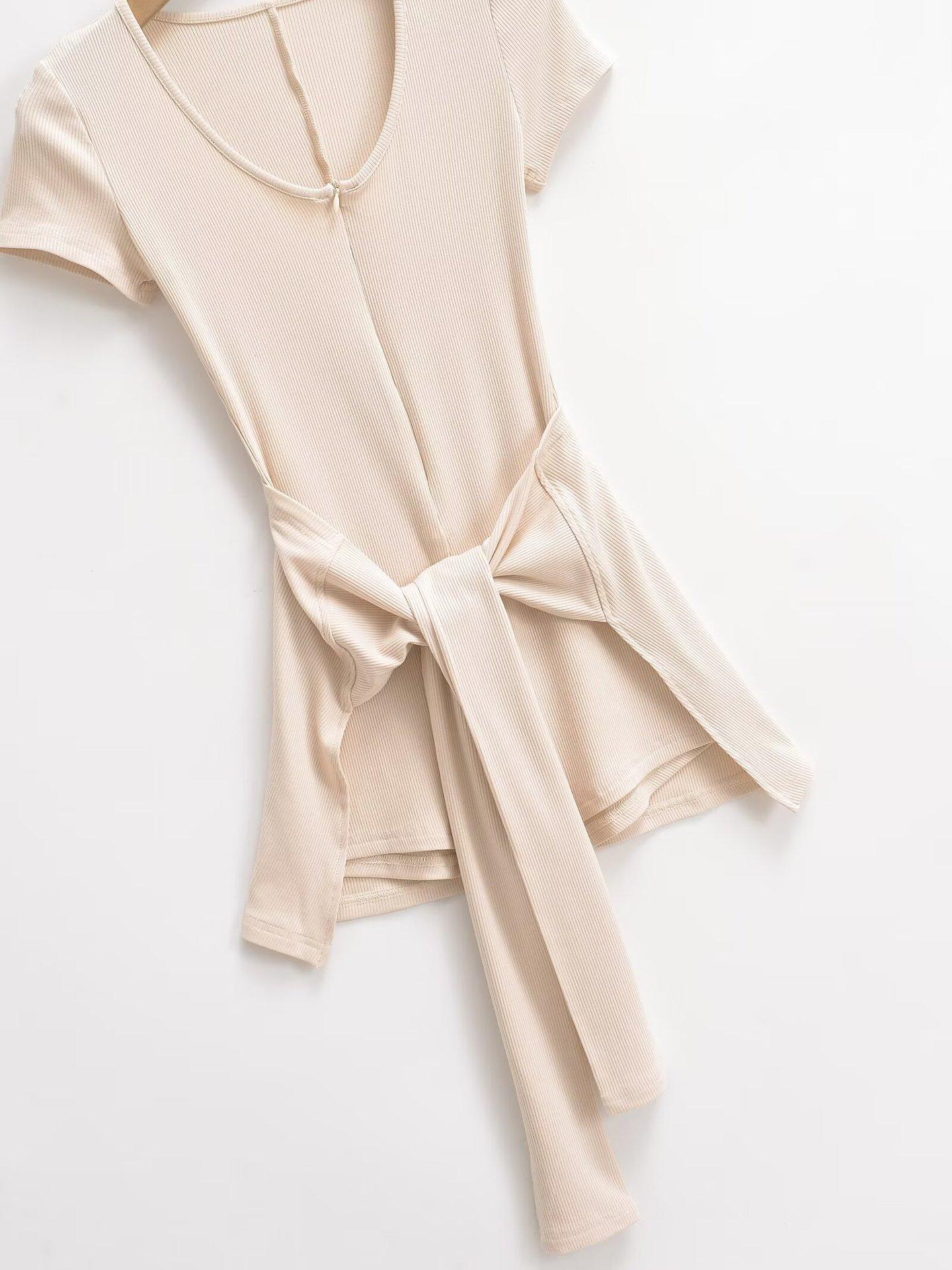 Mono ajustado de manga corta Nicho Nuevo de Primavera 2025 Correa Distintiva Chal Multi-uso Cintura Chal Mono Deportivo
