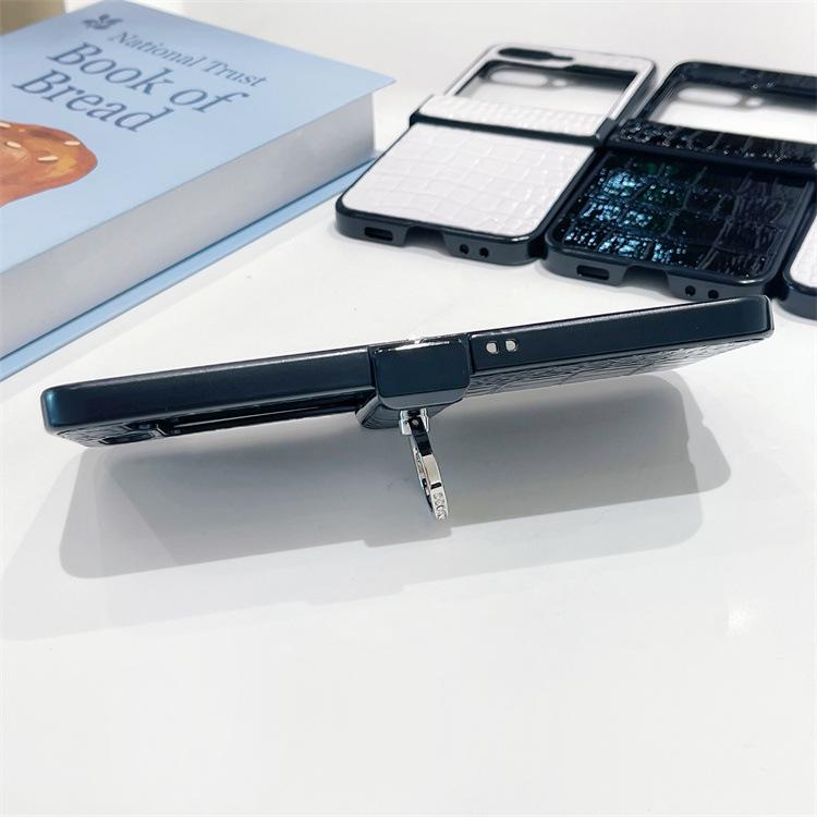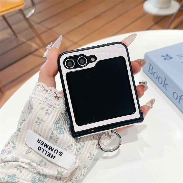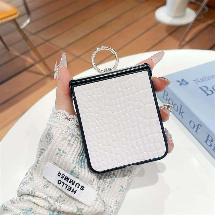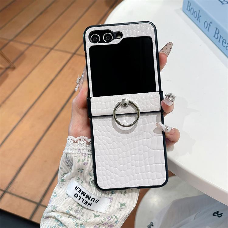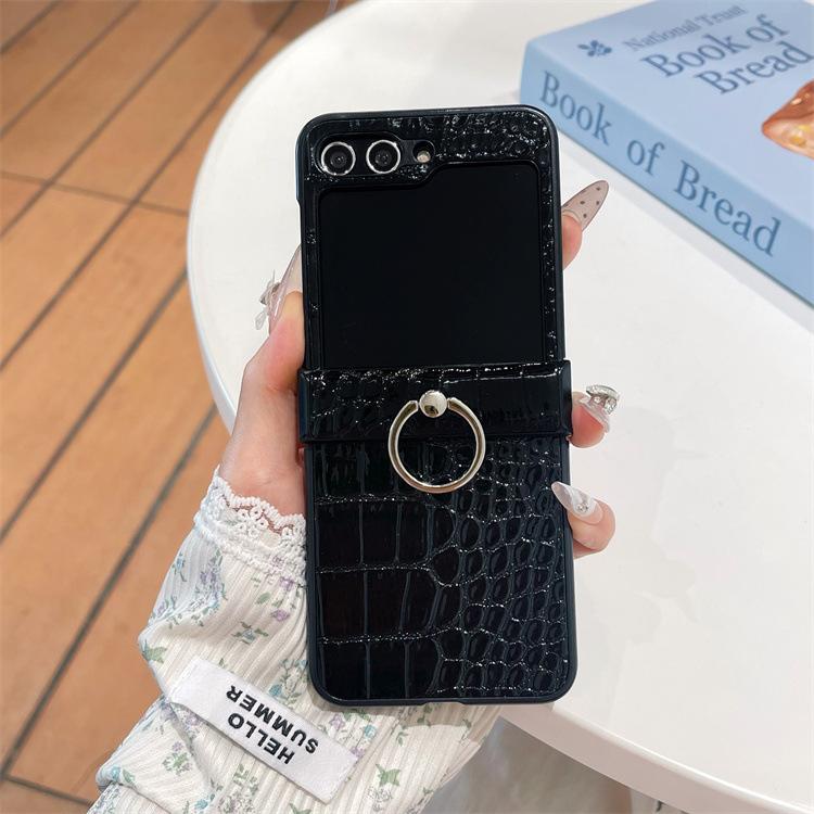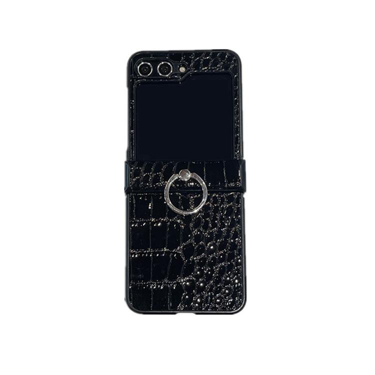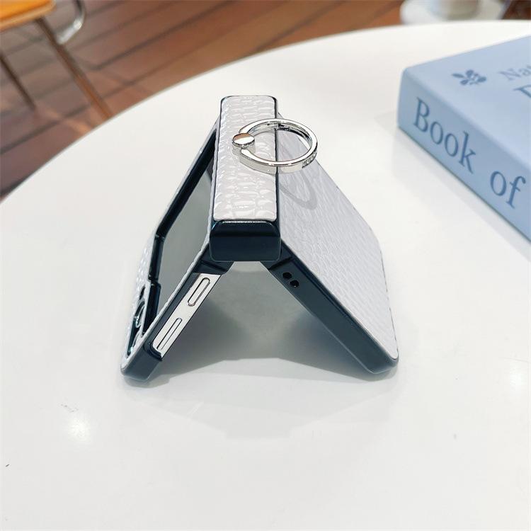 Para Samsung ZFlip6 Soporte de Anillo Hebilla Zflip5 Cuero con Patrón de Cocodrilo Zflip4 Cubierta Trasera Rígida para Pantalla Plegable
