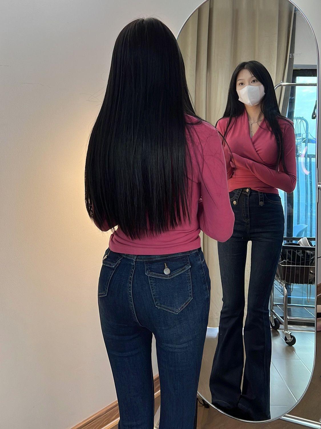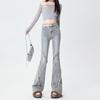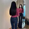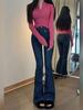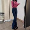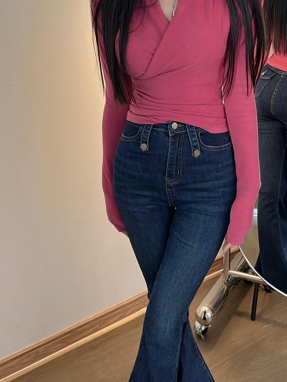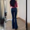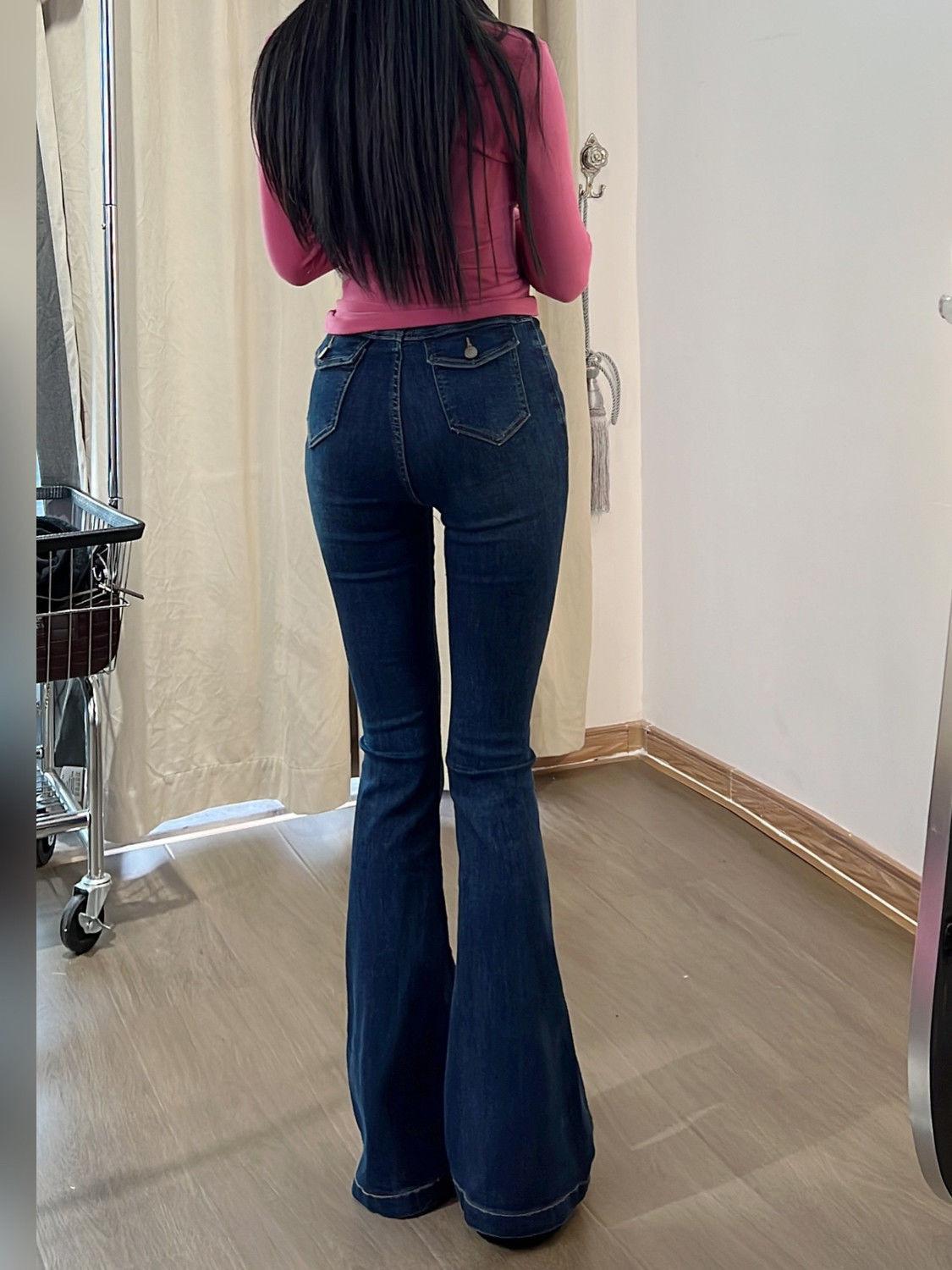 Pantalones vaqueros de microlana elásticos de talle alto y corte ajustado para mujer, nuevos modelos azul oscuro, elegantes y acampanados.