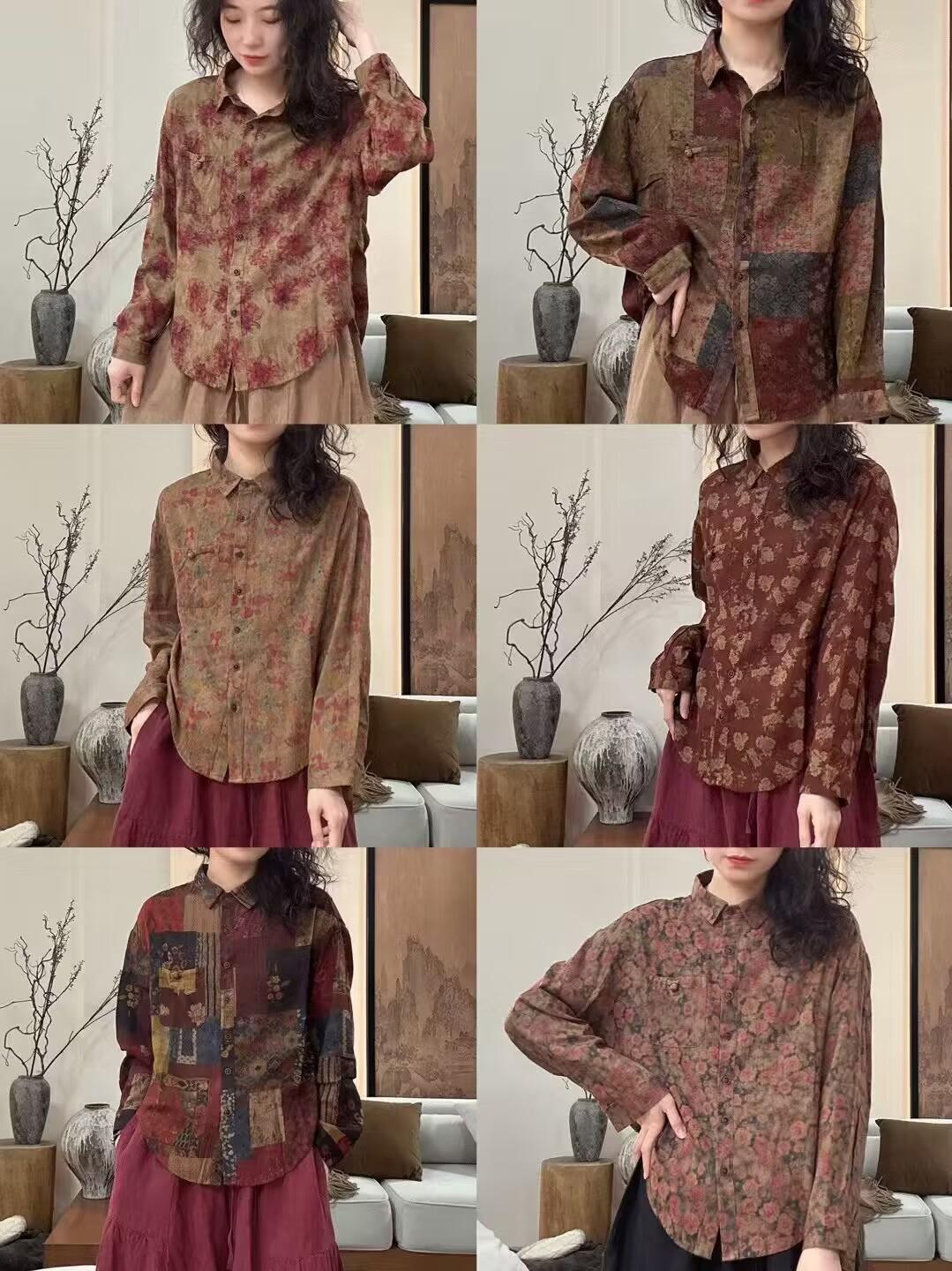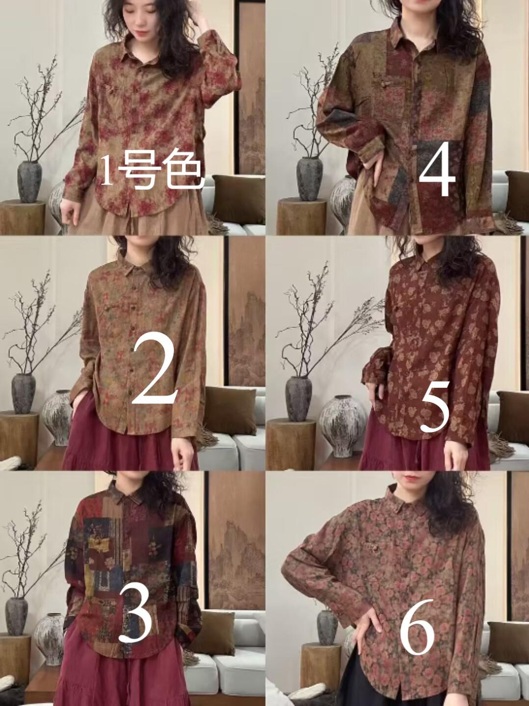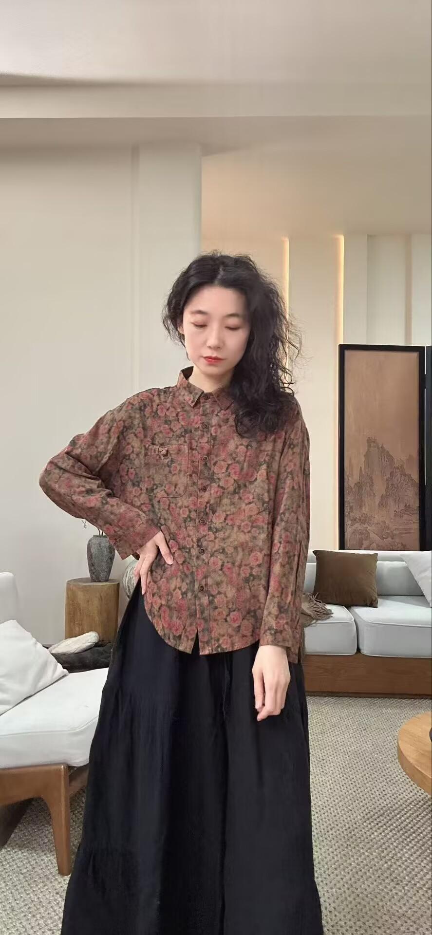 Camisa estampada para mujer, primavera y verano 2025, estilo retro literario, color frito, holgada, versión grande, combina con todo, informal, tipo cárdigan.