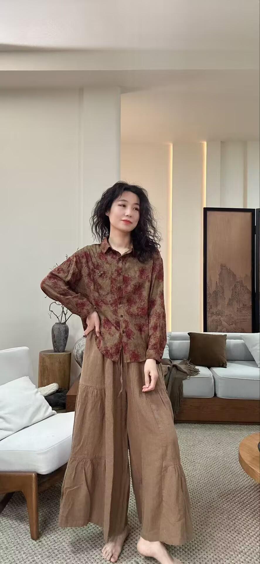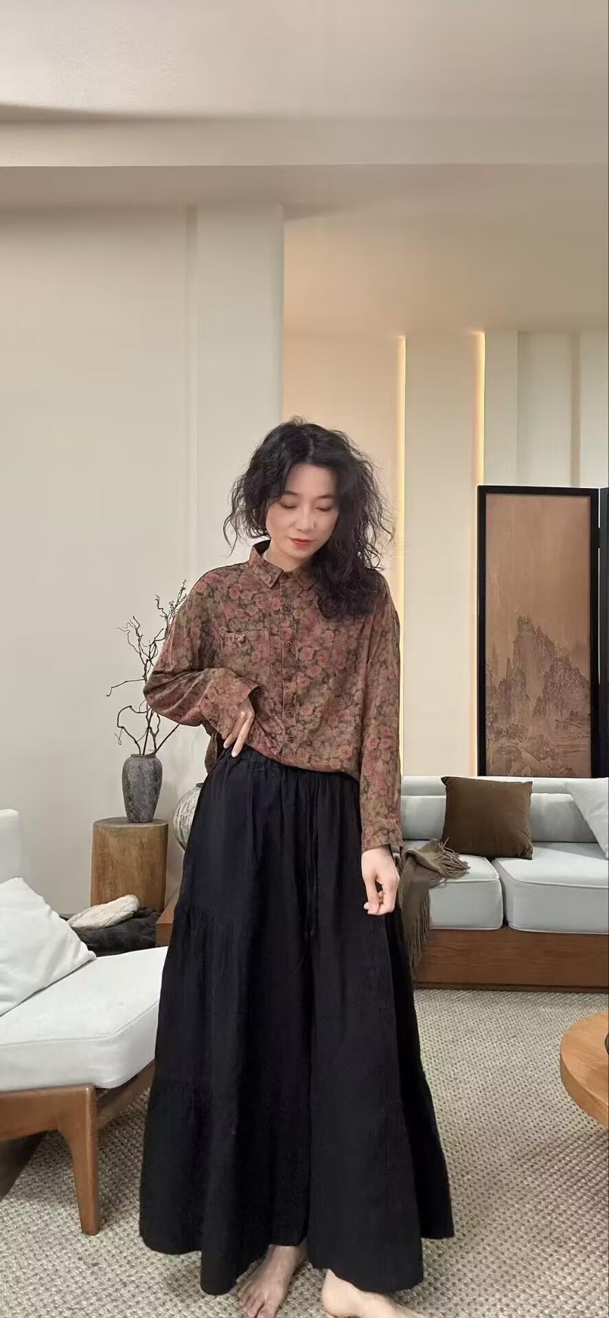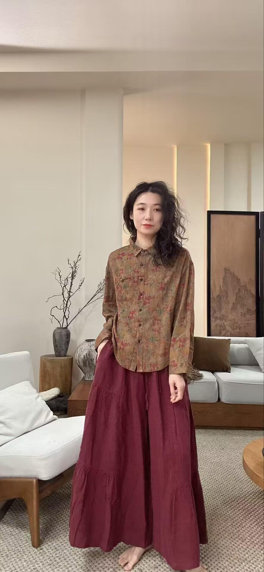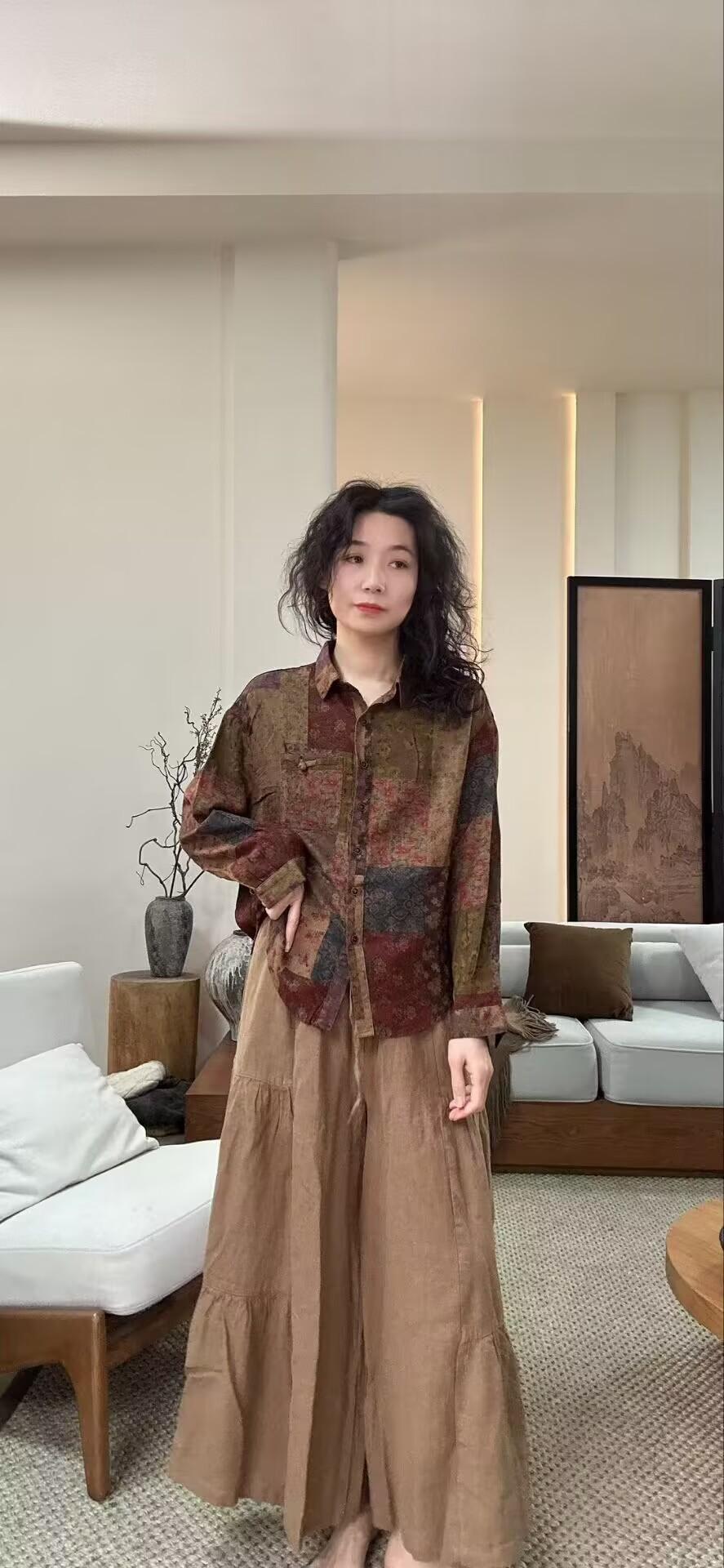 Camisa estampada para mujer, primavera y verano 2025, estilo retro literario, color frito, holgada, versión grande, combina con todo, informal, tipo cárdigan.