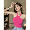 Top sexy ajustado para chica sexy, adelgazante, hermoso, con cuello colgante en la espalda, pequeño chaleco, corto sin mangas, combina con todo, estilo pequeño.