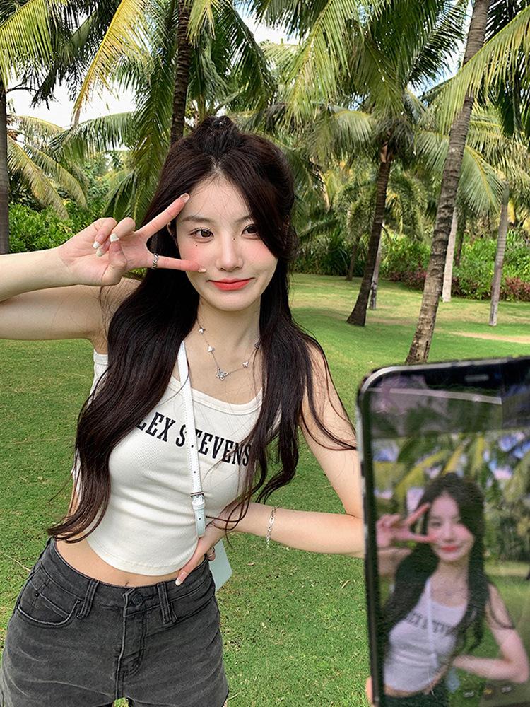 Camisola Blanca de Encaje con Cuello Halter para Mujer Top Exterior sin Mangas para Mujer Top Tubo Interior para Mujer Estilo Slim de Alta Gama