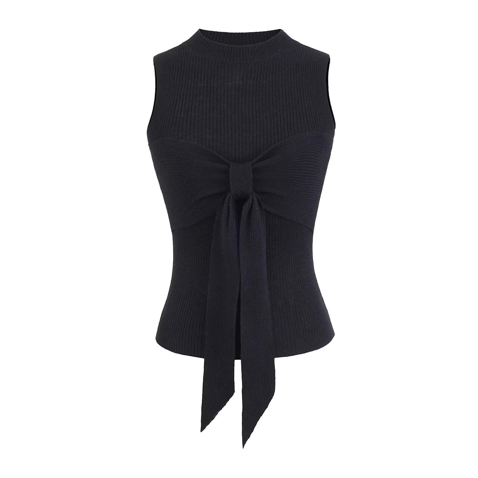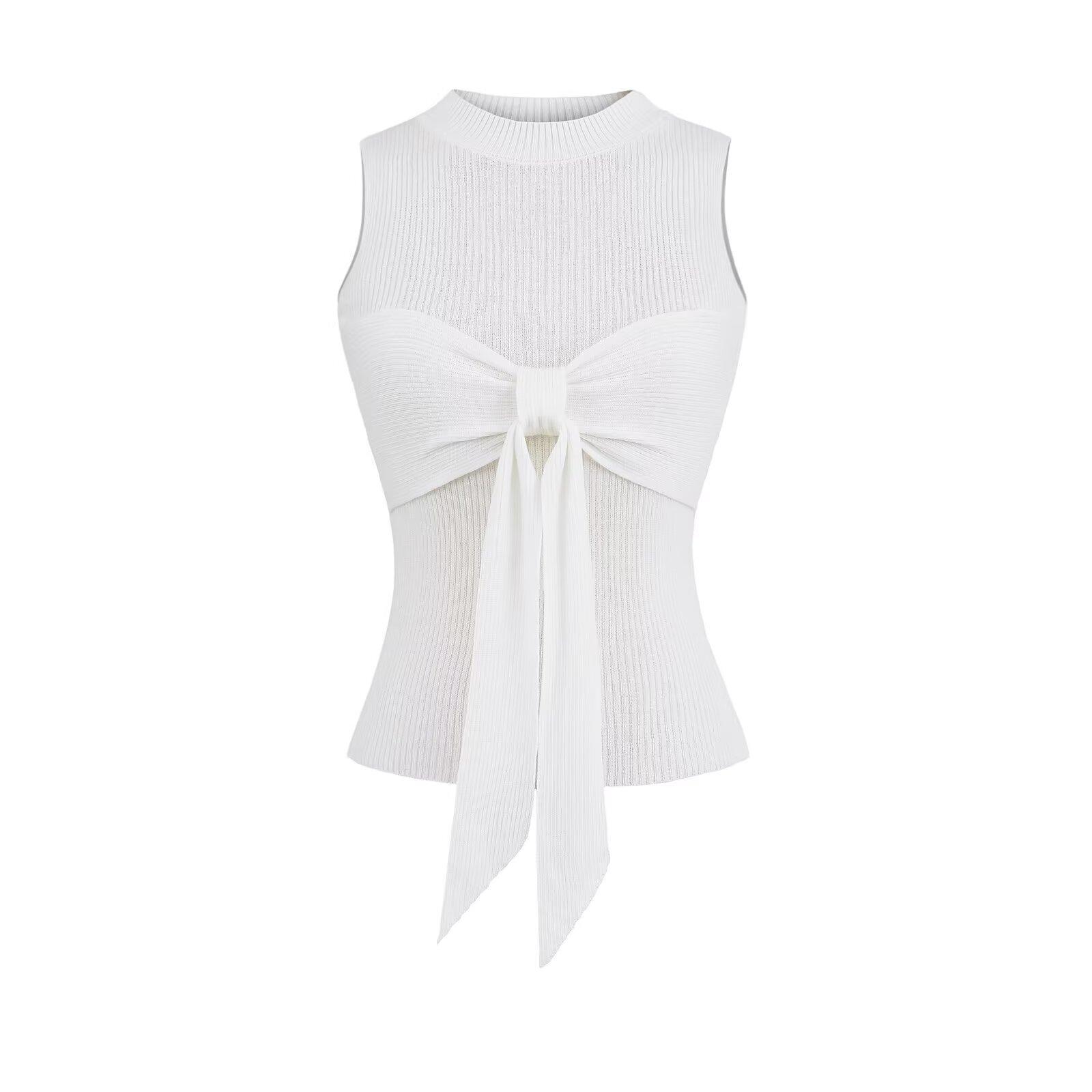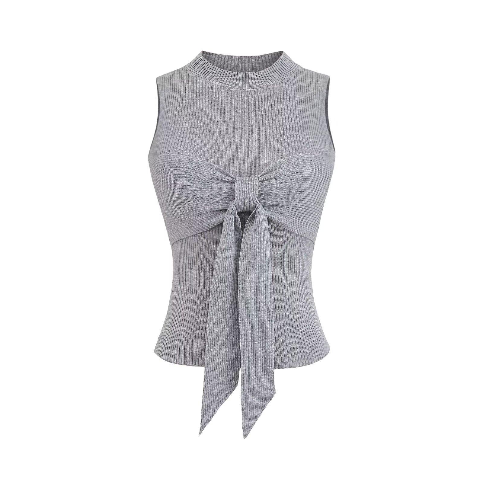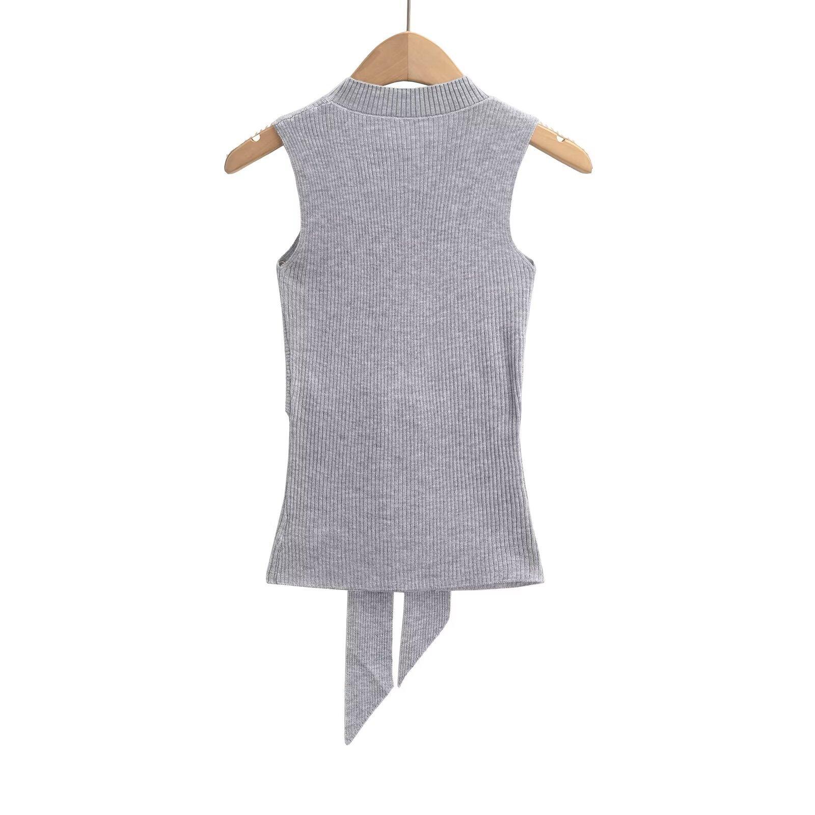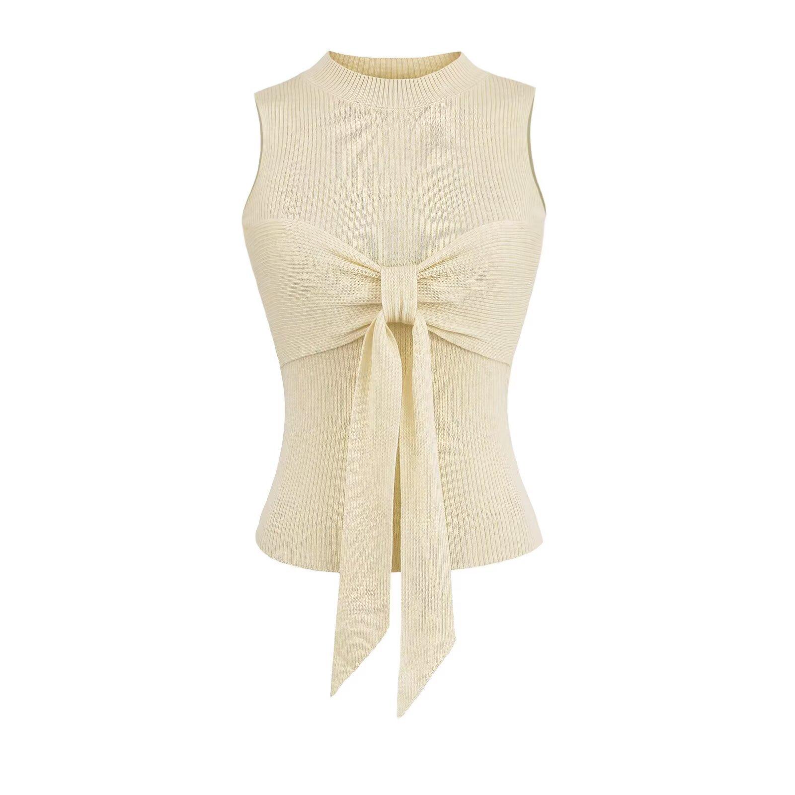 Venta al por mayor de ropa de mujer transfronteriza, estilo deseo puro, chaleco de punto con lazo, ropa interior y exterior para mujer, top sin mangas para chicas hot de primavera y verano