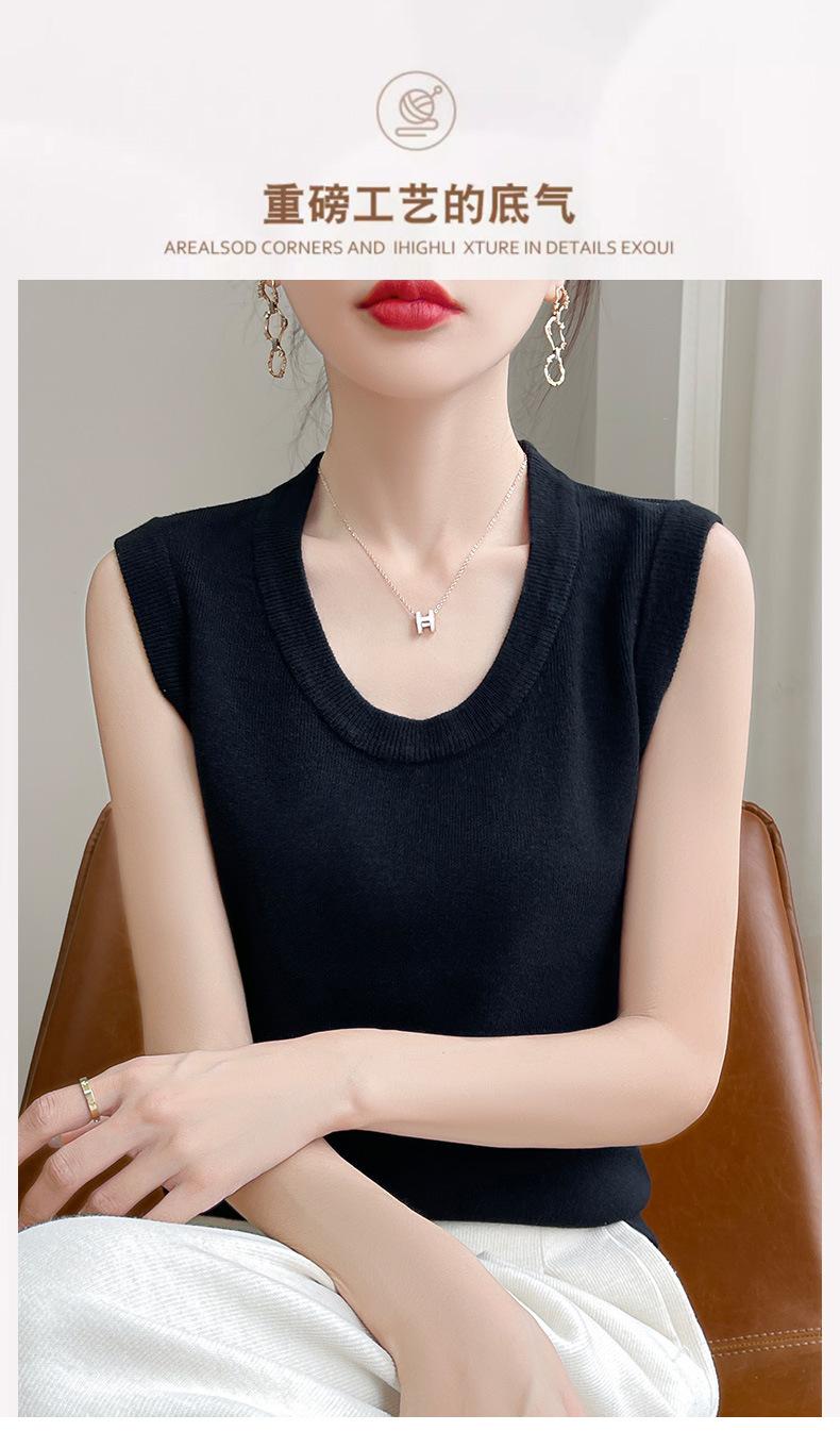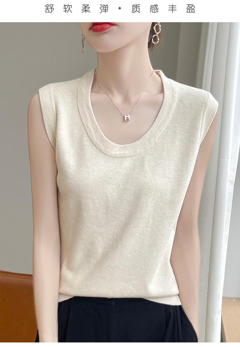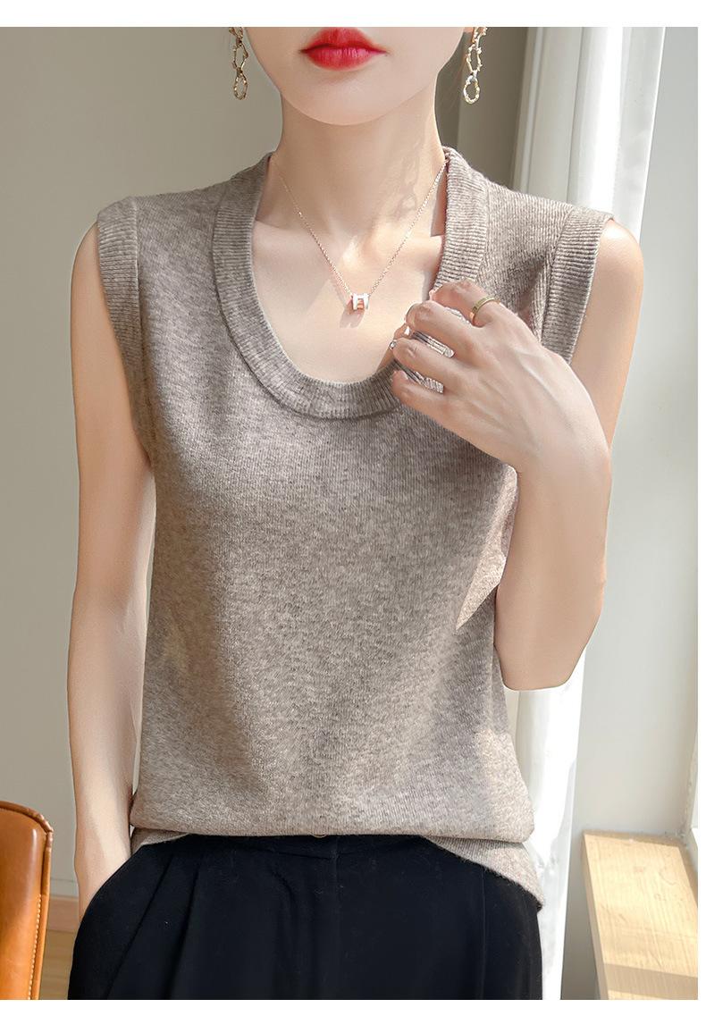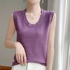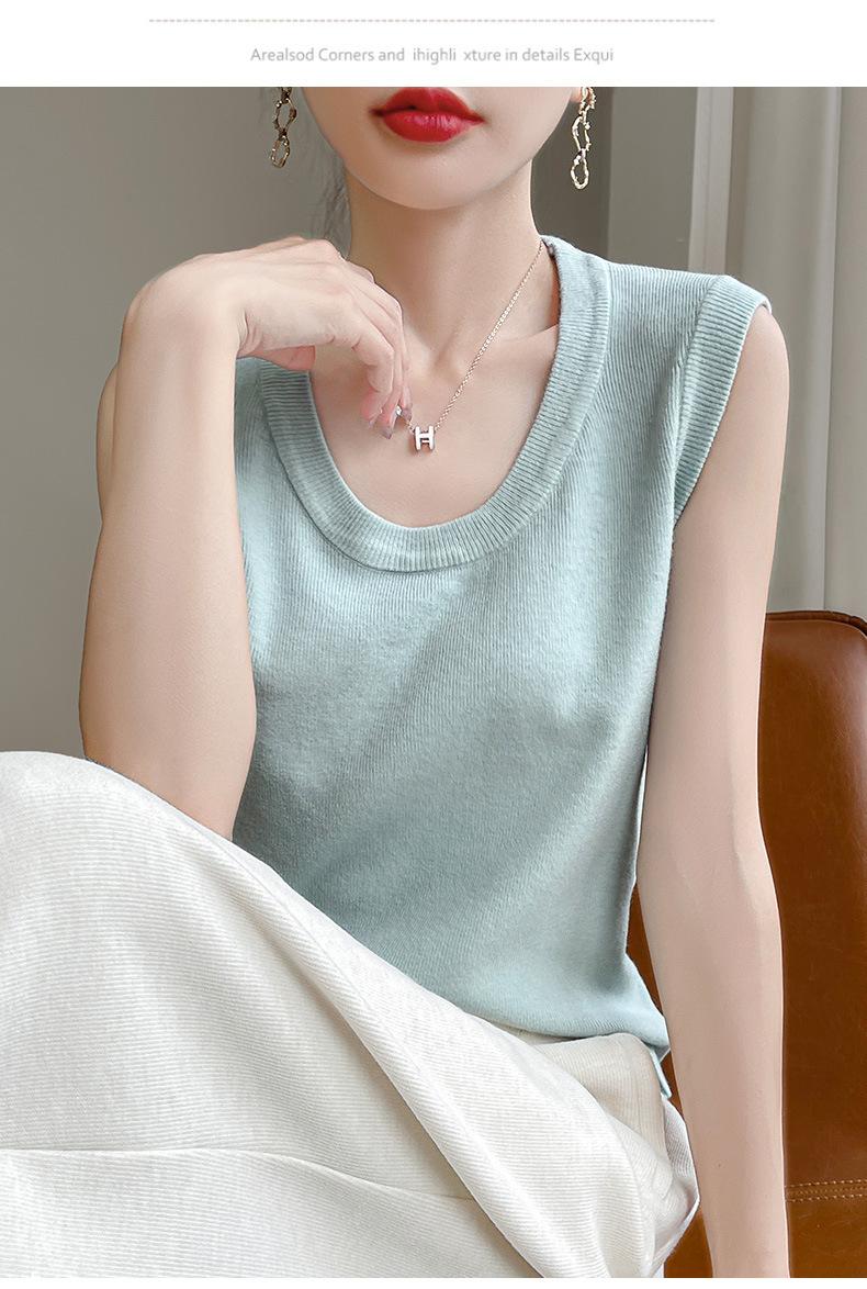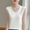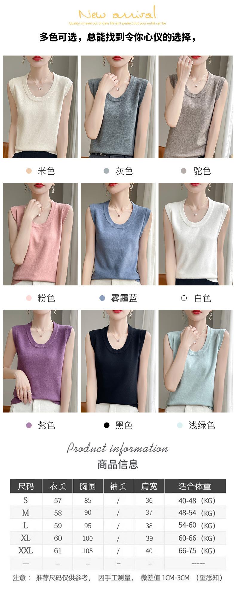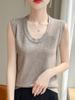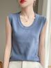 Chaleco de Punto Mezclado de Verano Estilo Combinable Cuello U para Usar por Dentro o por Fuera Color Sólido Sin Mangas Bolso de Hombro Delgado para Mujer