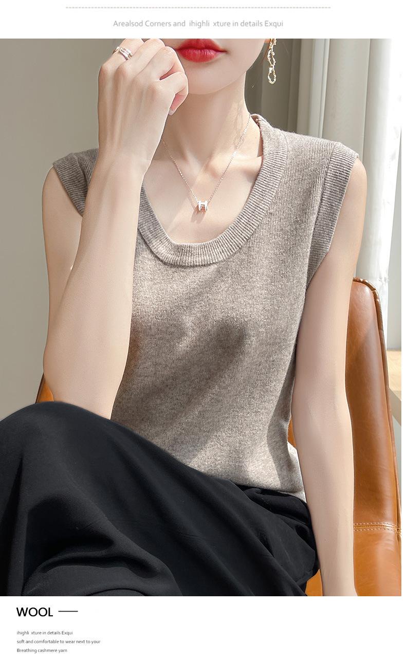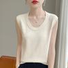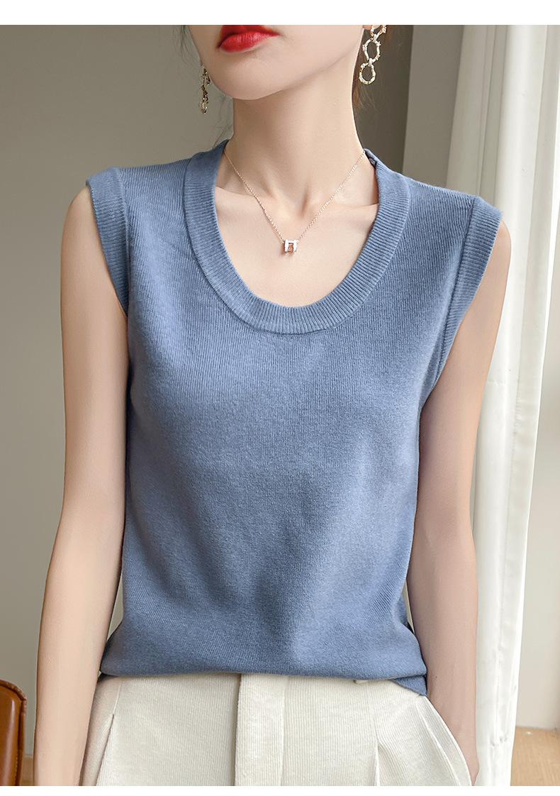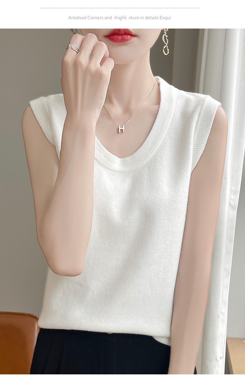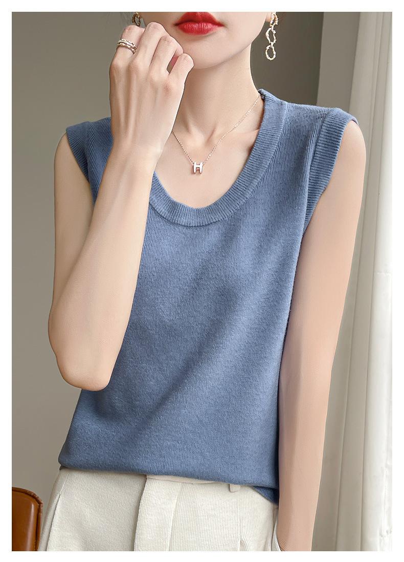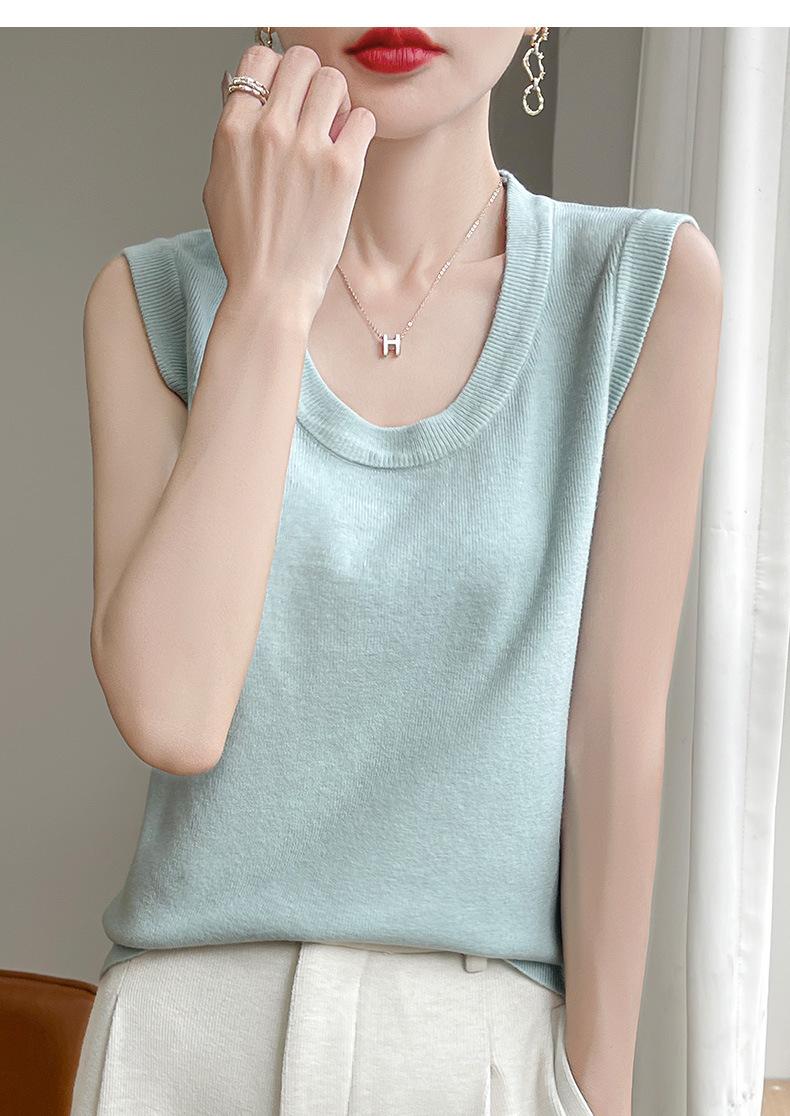 Chaleco de Punto Mezclado de Verano Estilo Combinable Cuello U para Usar por Dentro o por Fuera Color Sólido Sin Mangas Bolso de Hombro Delgado para Mujer