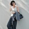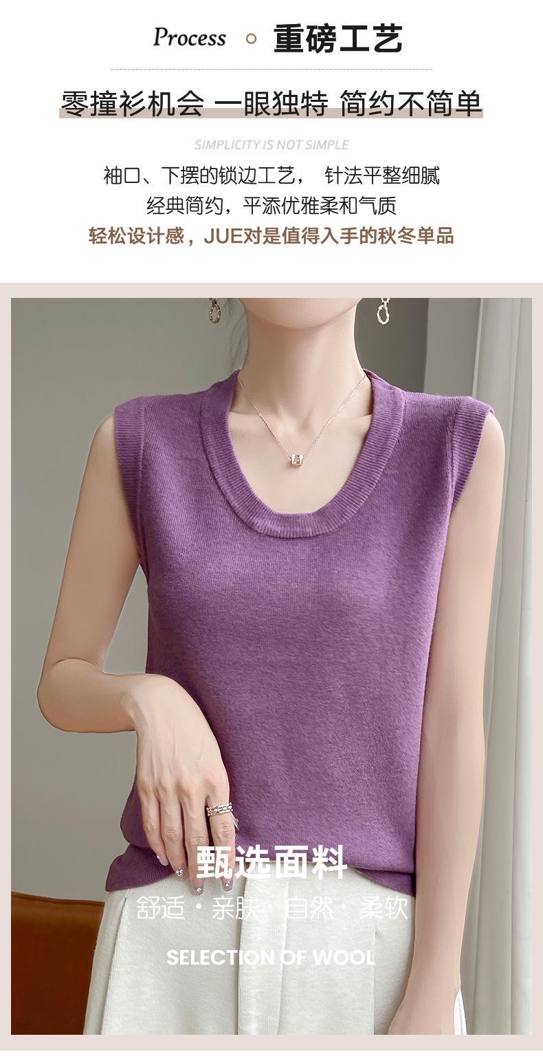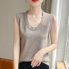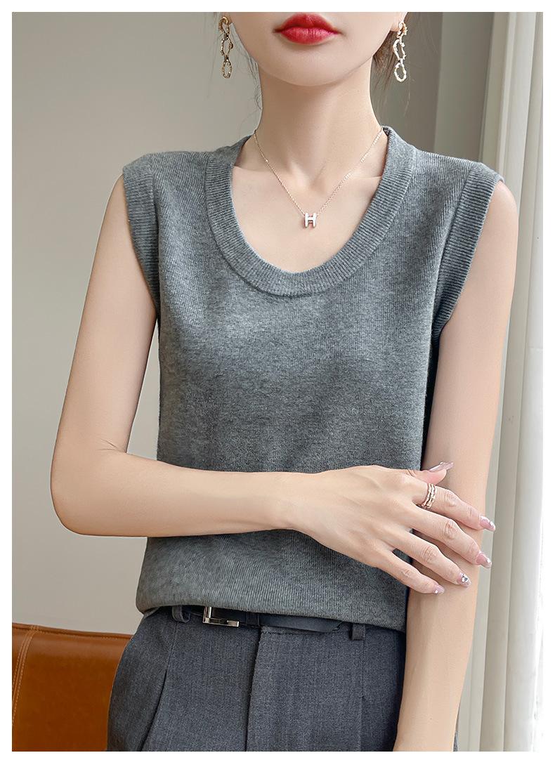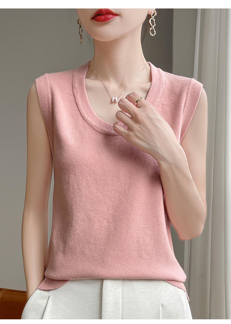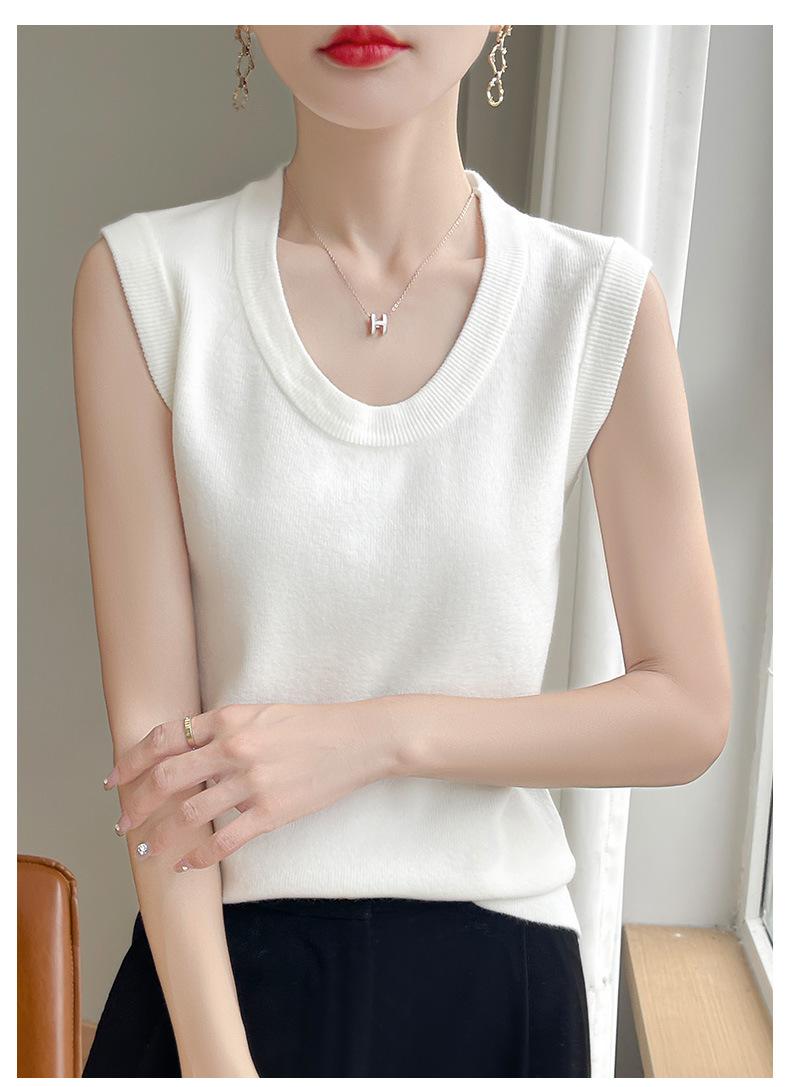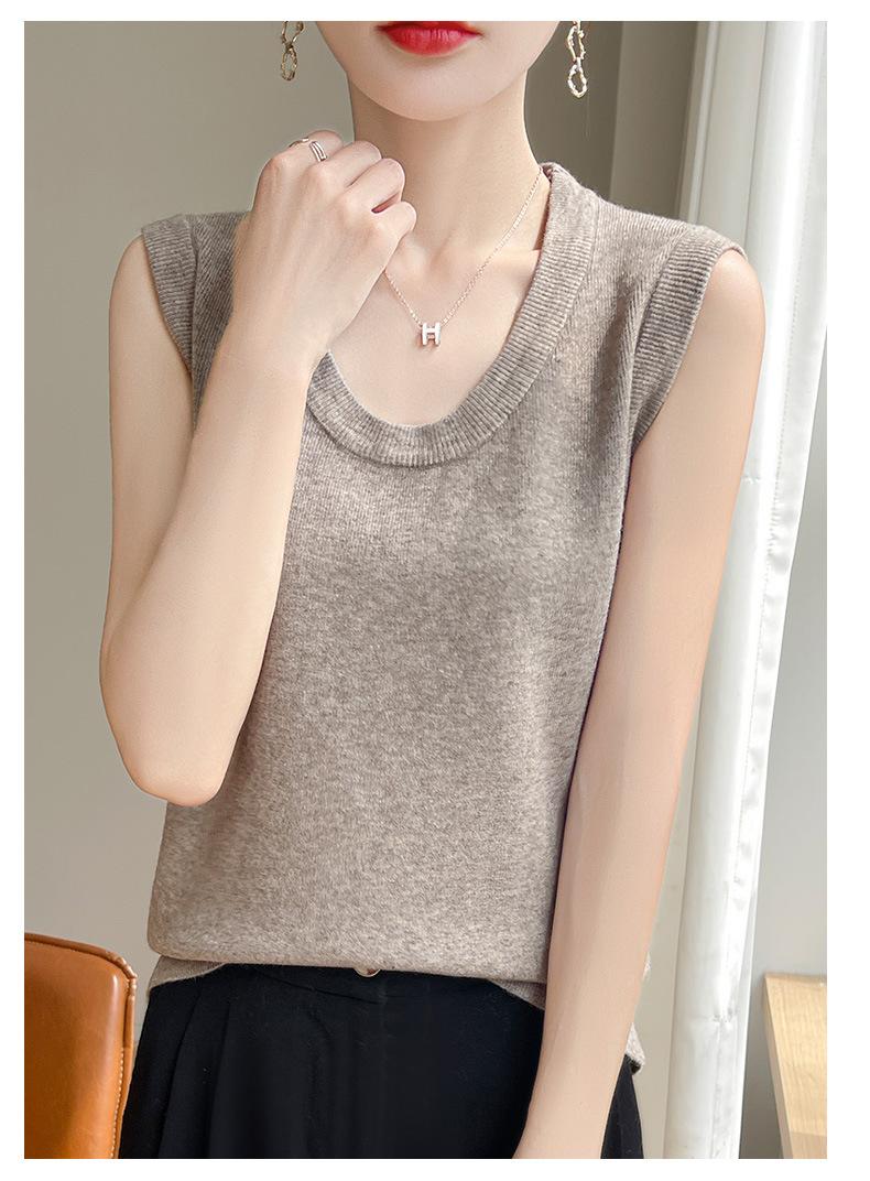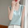 Chaleco de Punto Mezclado de Verano Estilo Combinable Cuello U para Usar por Dentro o por Fuera Color Sólido Sin Mangas Bolso de Hombro Delgado para Mujer