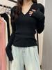 Camiseta de manga larga ajustada estilo americano estilo puro deseo de las Spice Girls, top sexy de cuello en V único que combina con todo.