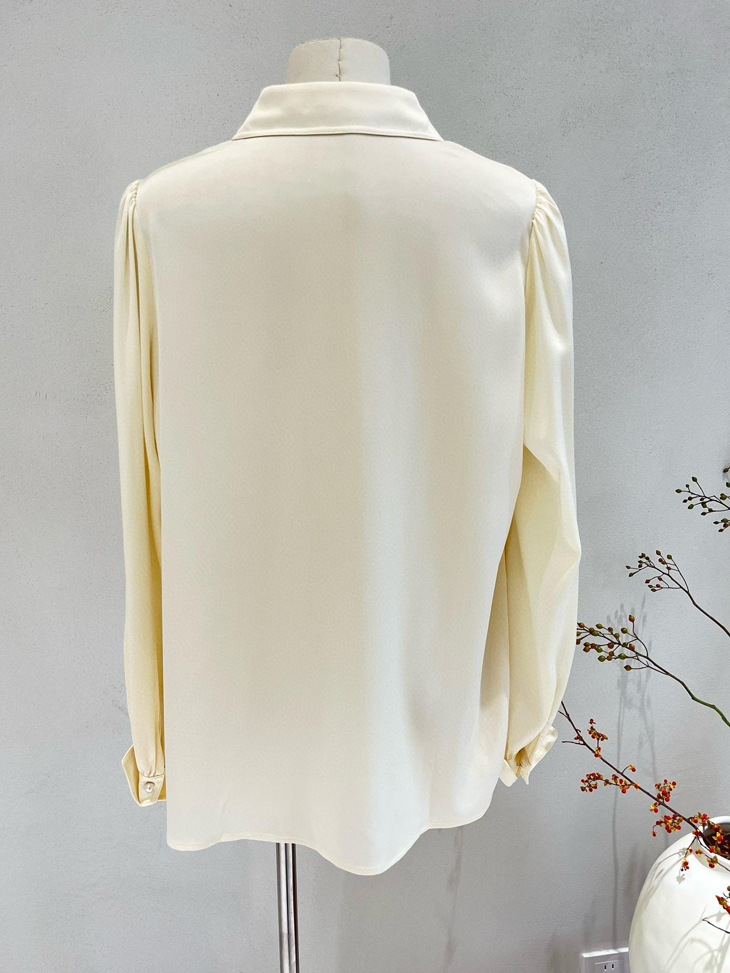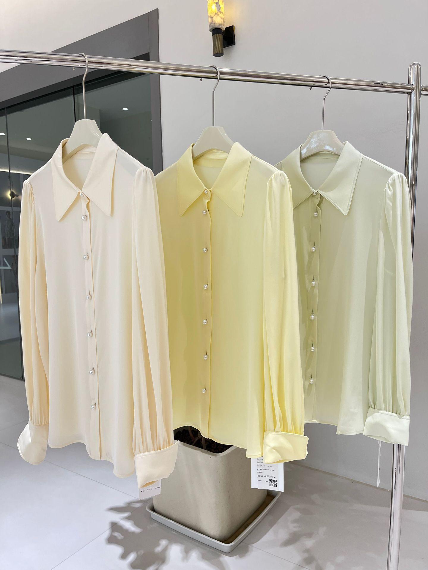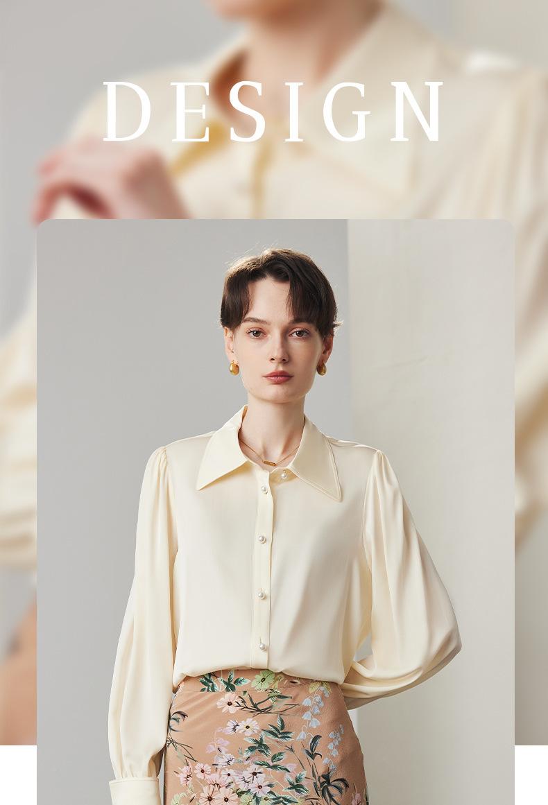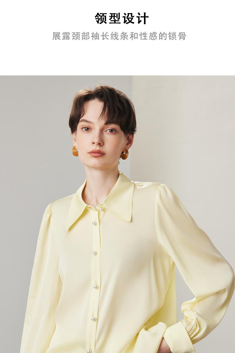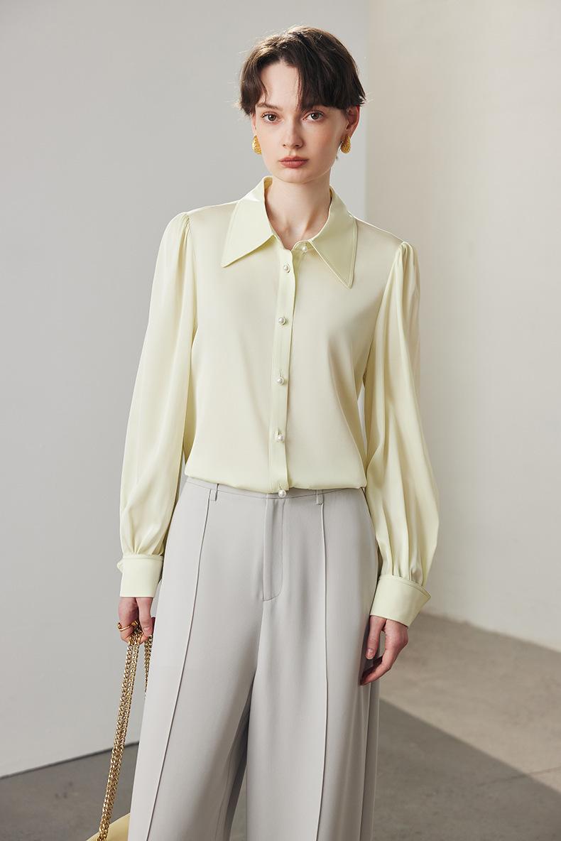 Camisa de seda para mujer, primavera y verano 2025, nueva, color liso, elástica, para uso diario, cuello doble Joe, seda morera.