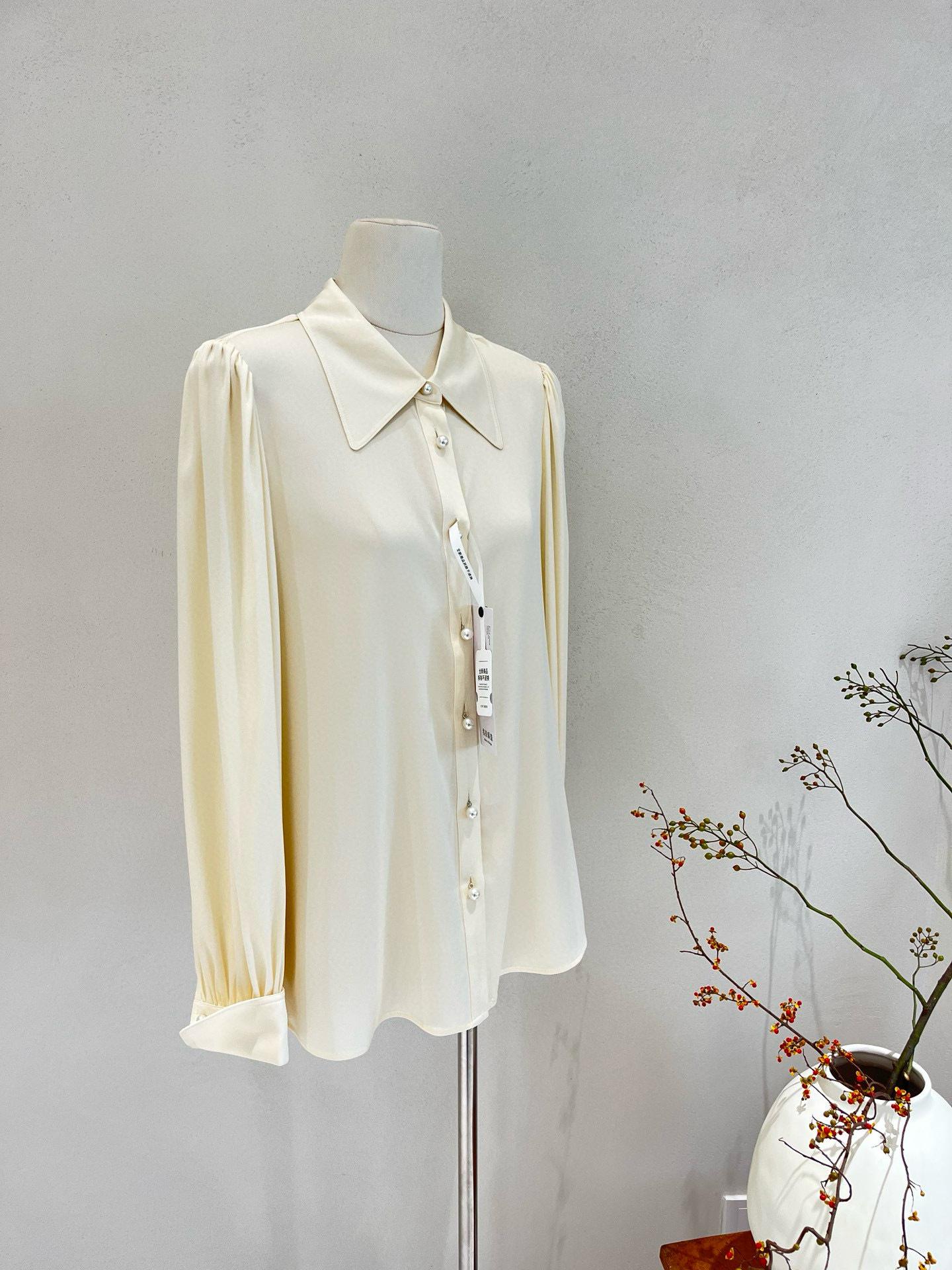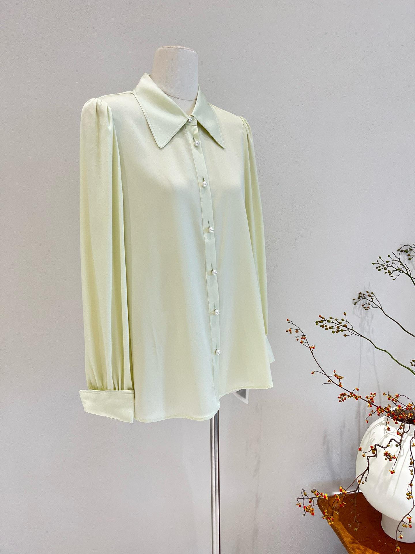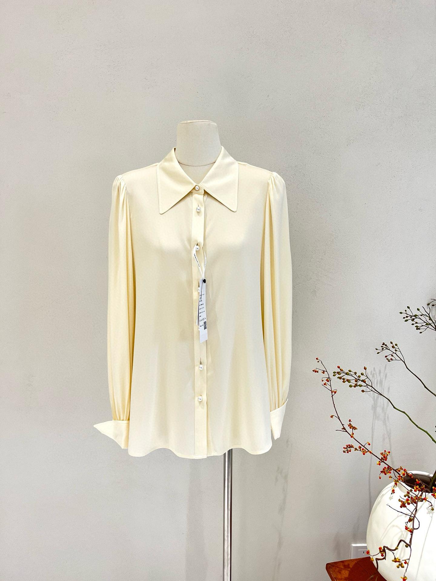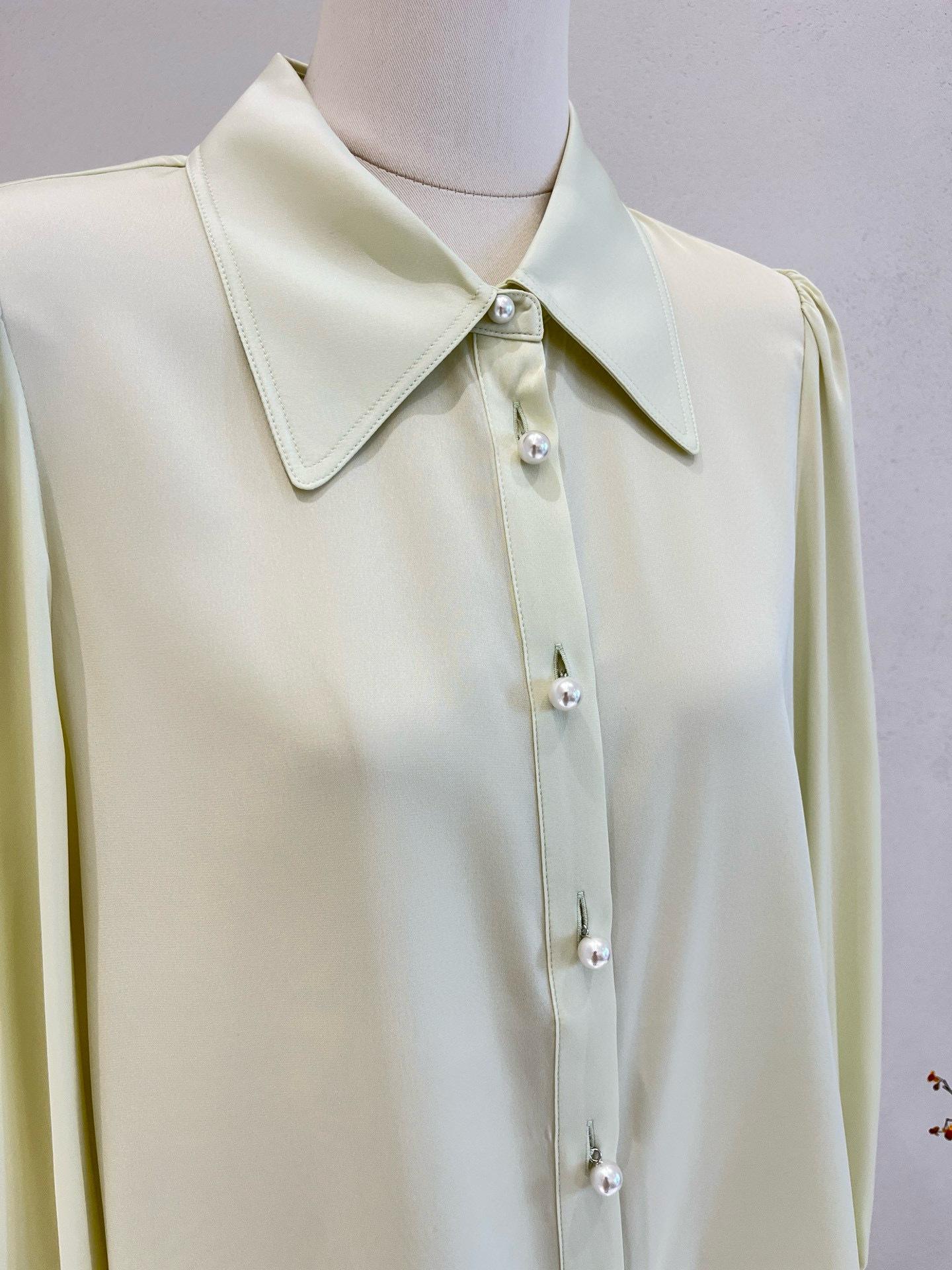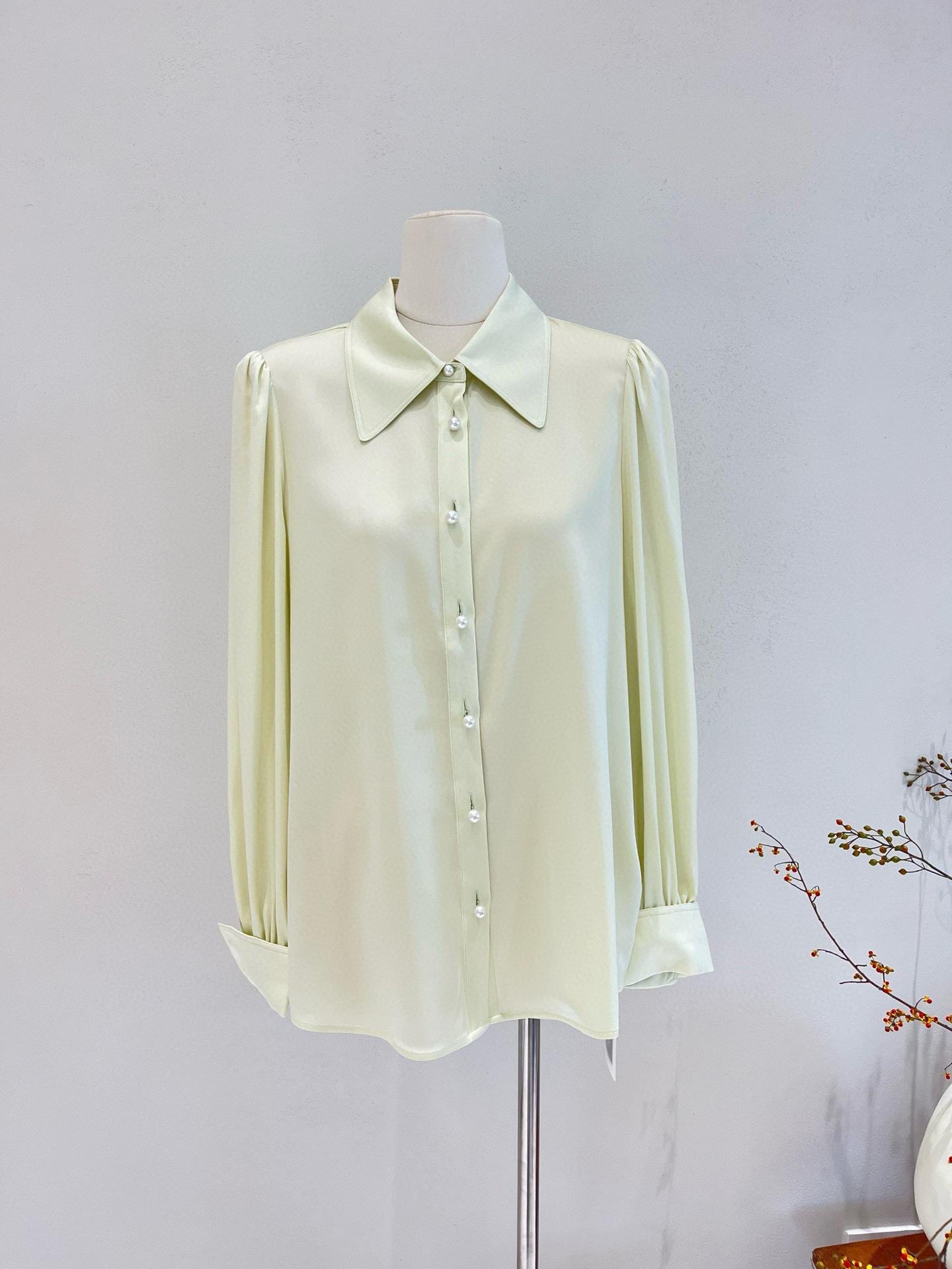 Camisa de seda para mujer, primavera y verano 2025, nueva, color liso, elástica, para uso diario, cuello doble Joe, seda morera.