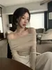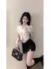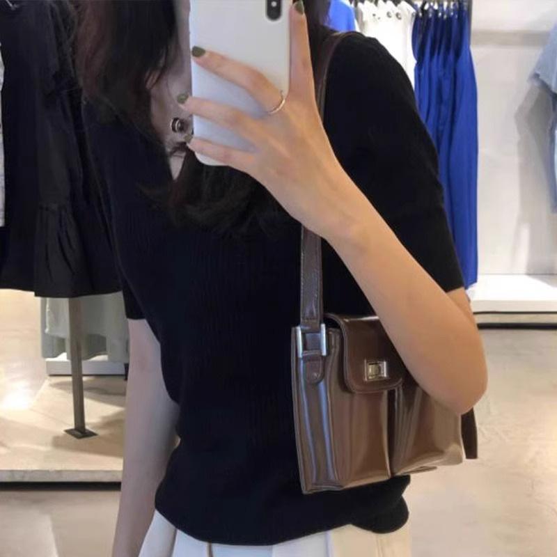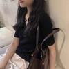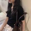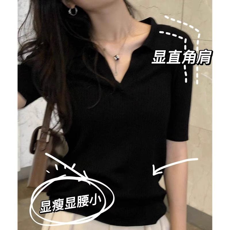 Marca de Moda Hombro Cuello Polo Slim-fit Adelgazante Cintura Alta Camiseta de Algodón Verano Nueva Moda Casual Nicho Ins Top