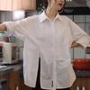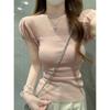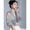 Camisa de gasa elegante de color sólido de manga corta con siete puntos estilo occidental, estilo nuevo de verano de 2025, que reduce la edad, para uso diario, moderna y a la moda.
