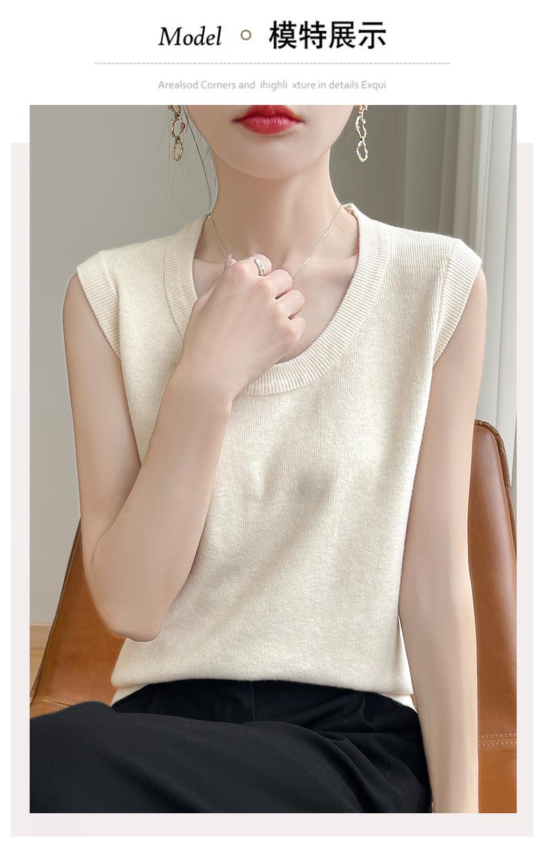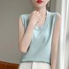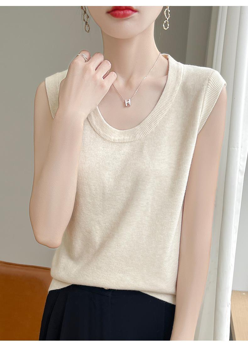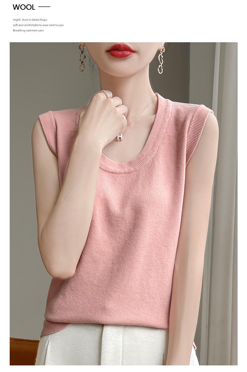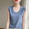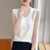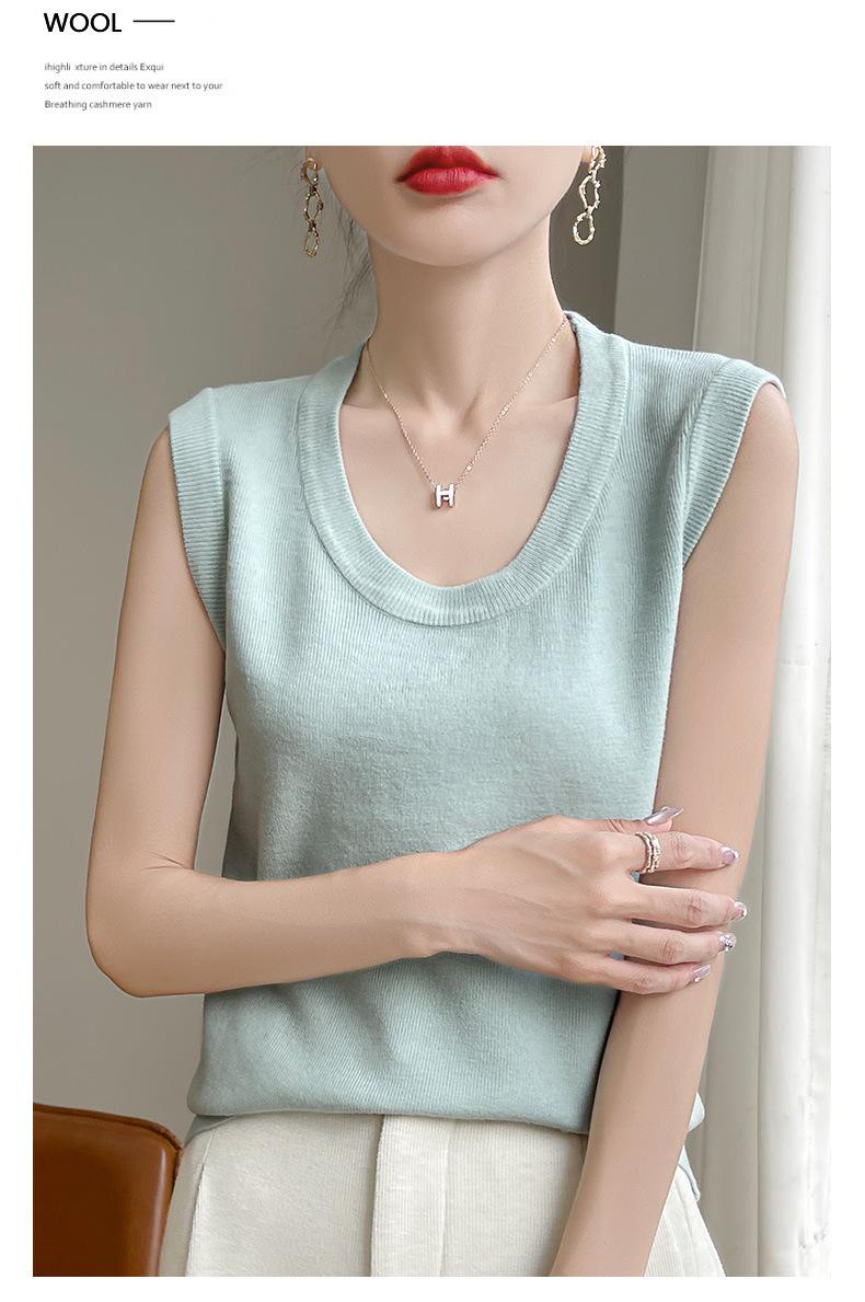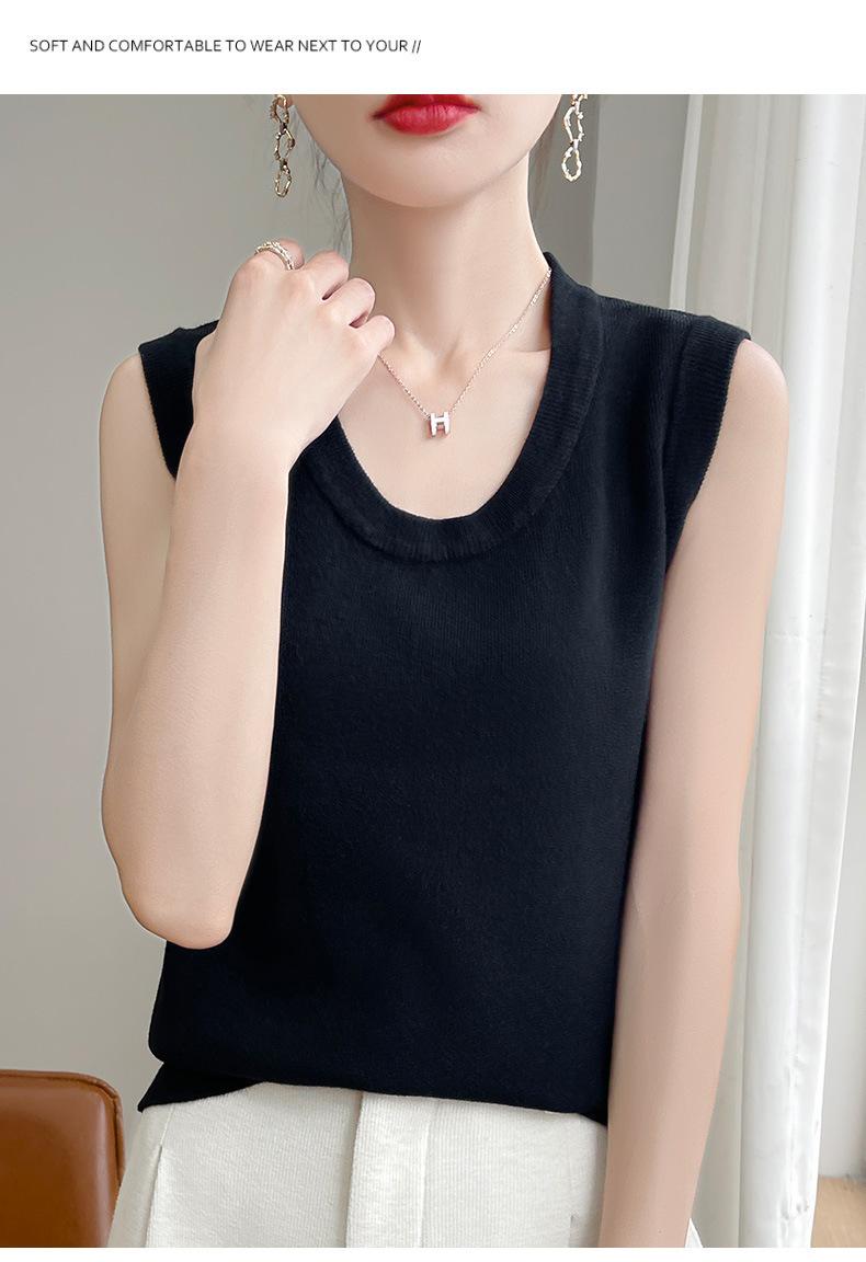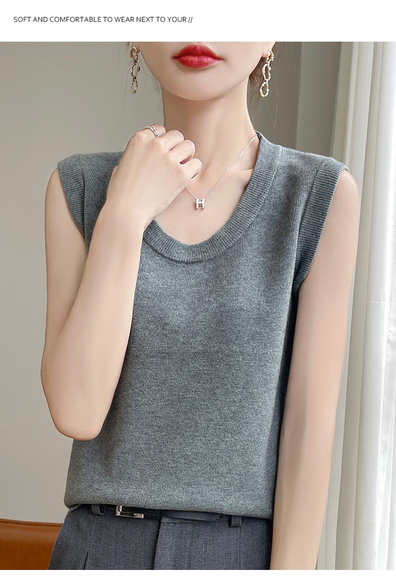 Chaleco de punto sin mangas con cuello en U para mujer, jersey fino, transpirable, clásico, de color sólido, nuevo, para primavera y verano
