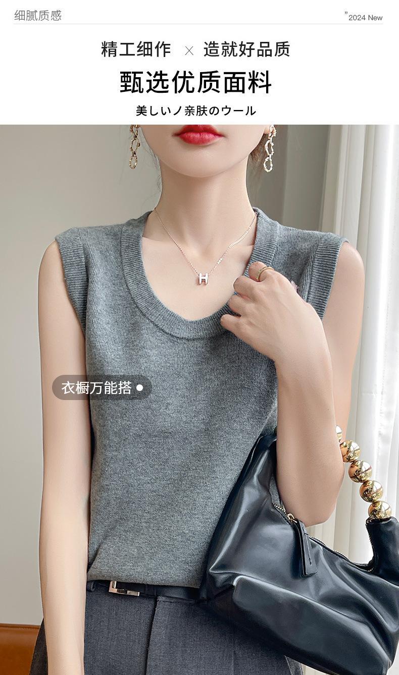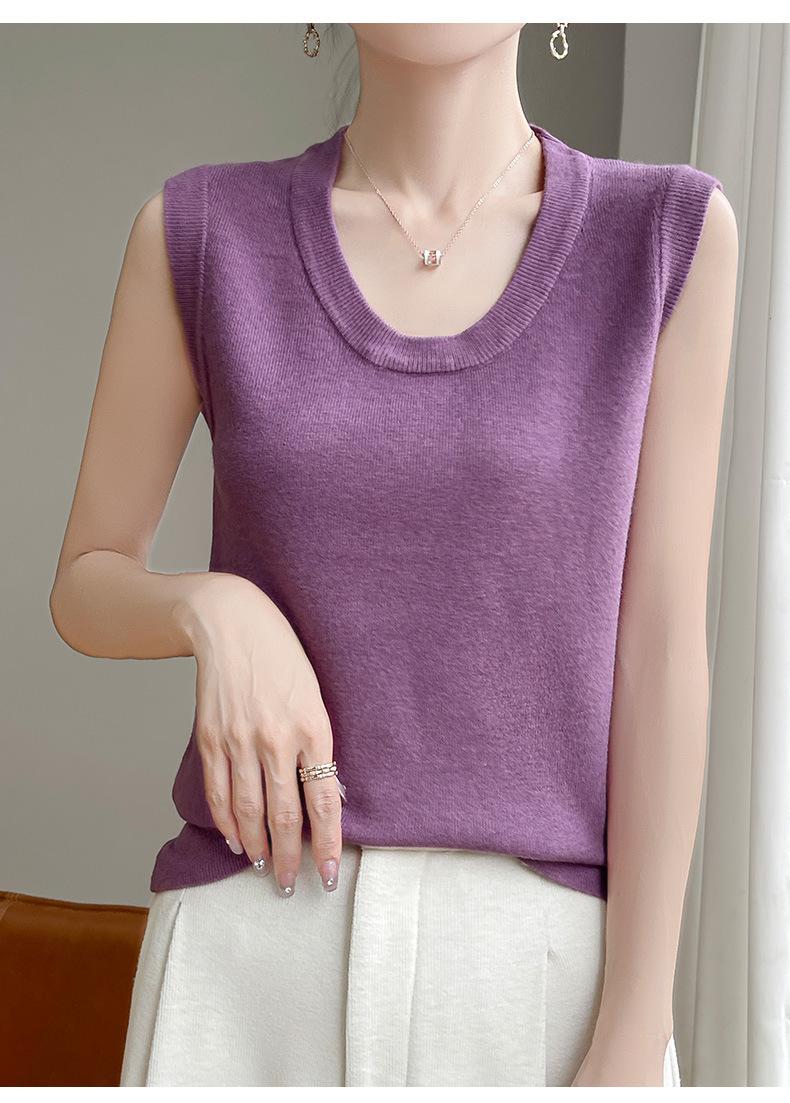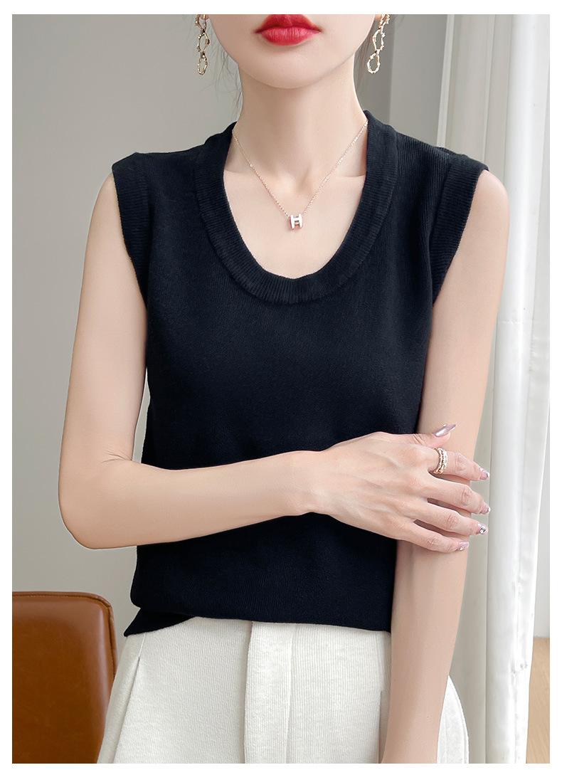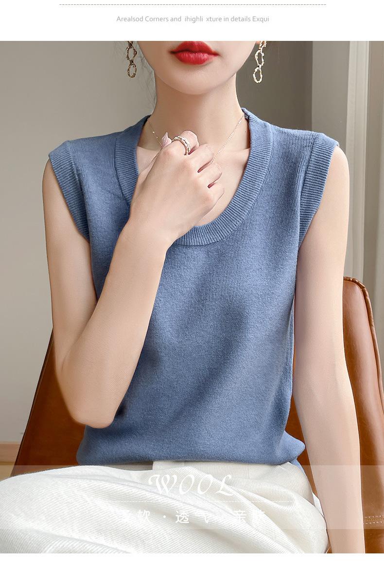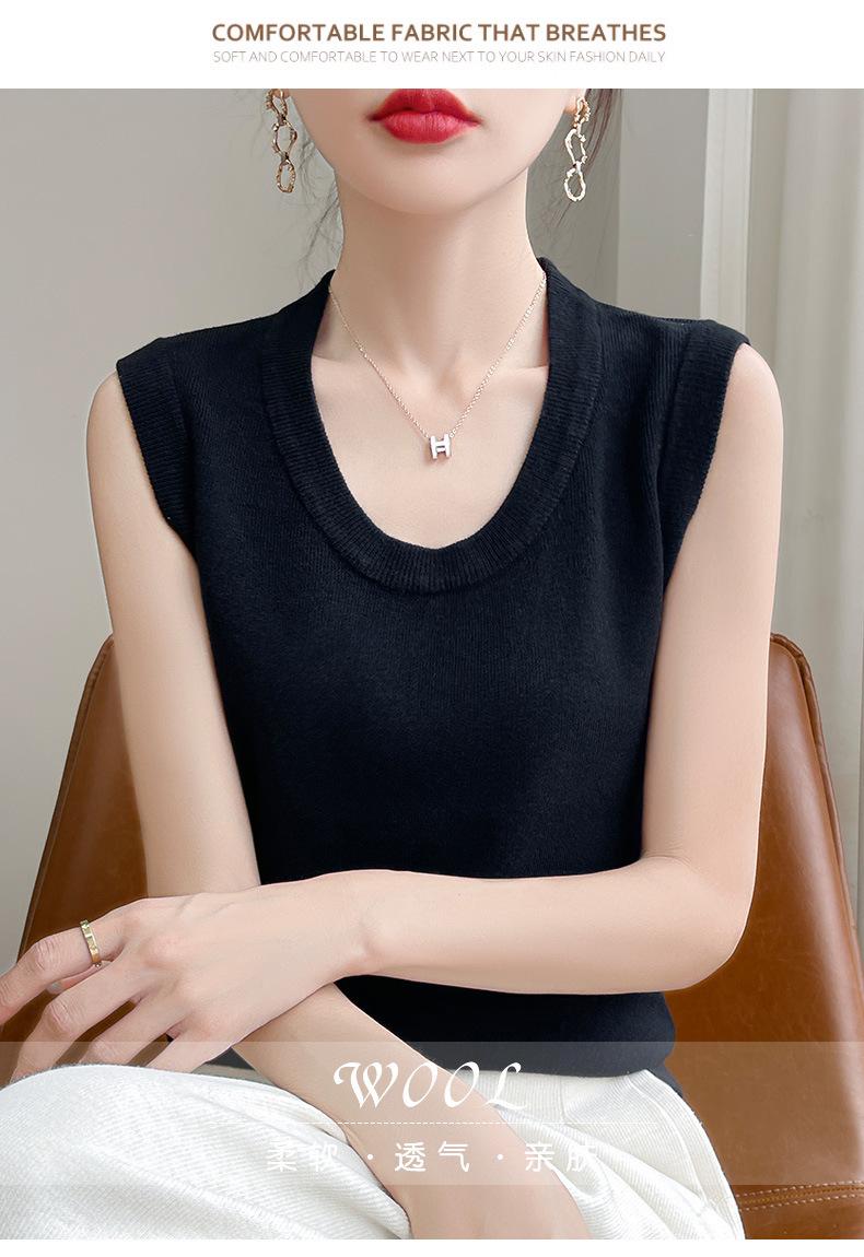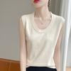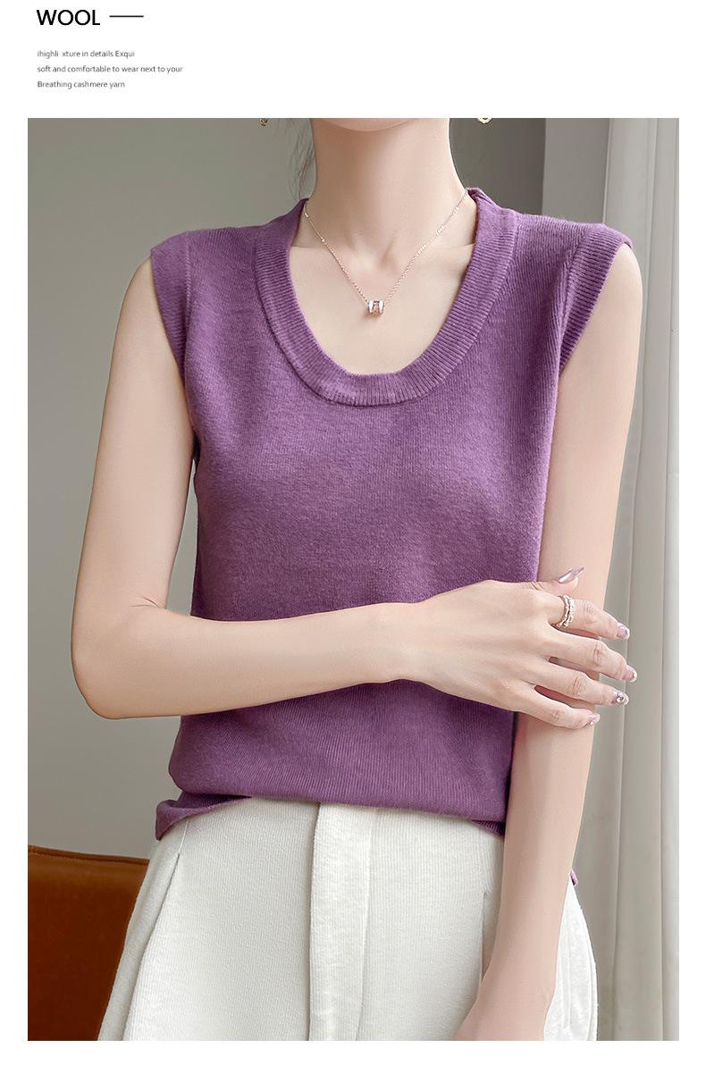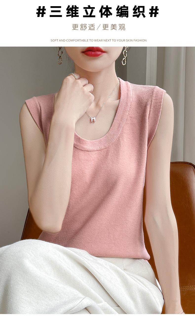 Chaleco de punto sin mangas con cuello en U para mujer, jersey fino, transpirable, clásico, de color sólido, nuevo, para primavera y verano
