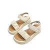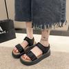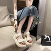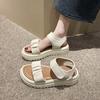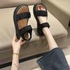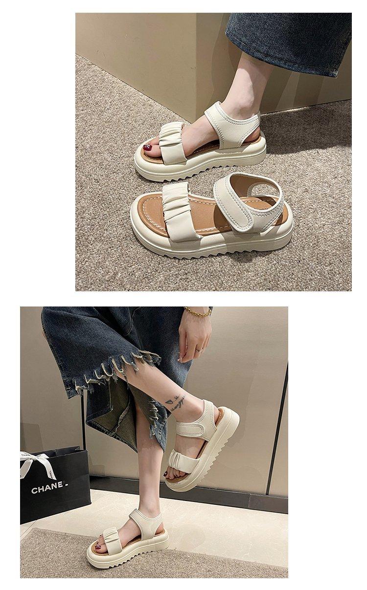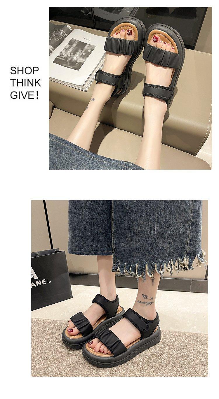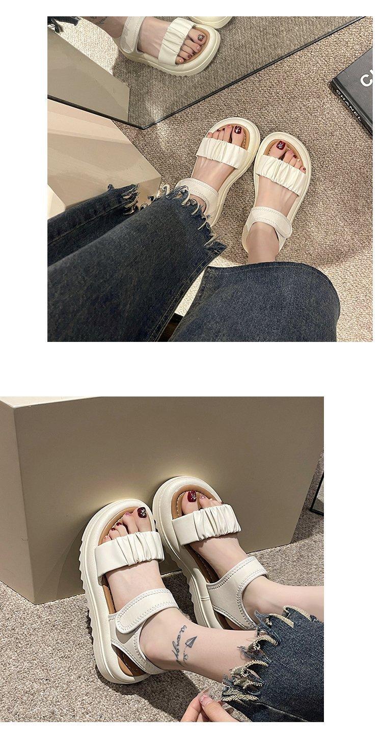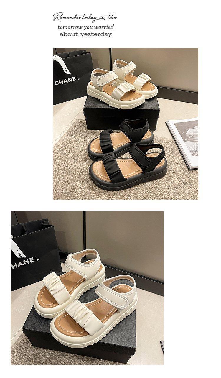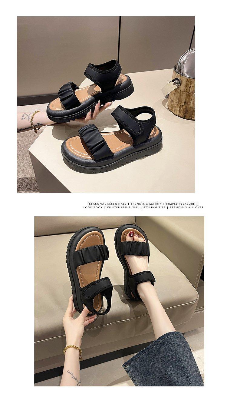 Sandalias de playa de suela gruesa para mujer, estilo nuevo de verano 2023, zapatos de moda, sandalias de velcro plisadas de una sola tira de cuero suave
